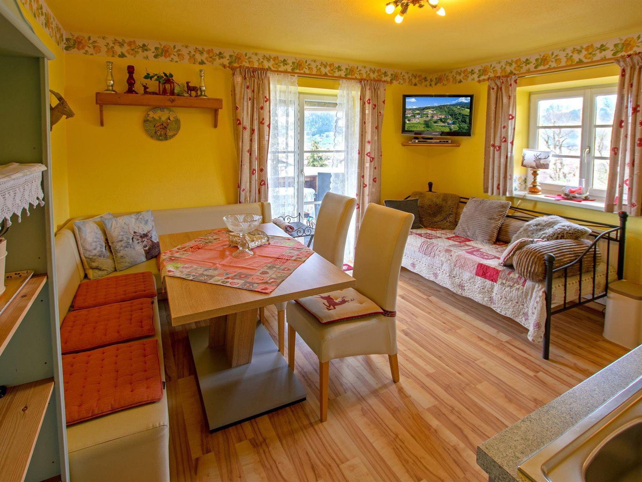 Das sonnige und ruhig gelegene 3-Zimmer-Appartement Kaiserblick 2 im Nebenhaus eignet sich für 2-5 Personen und verfügt über eine gemütliche Wohnküche mit einmaliger Aussicht und zwei Schlafzimmer mit Doppelbetten. Der große dreiseitige Balkon lädt ein, den Wilden Kaiser in der Abendsonne zu bestaunen.