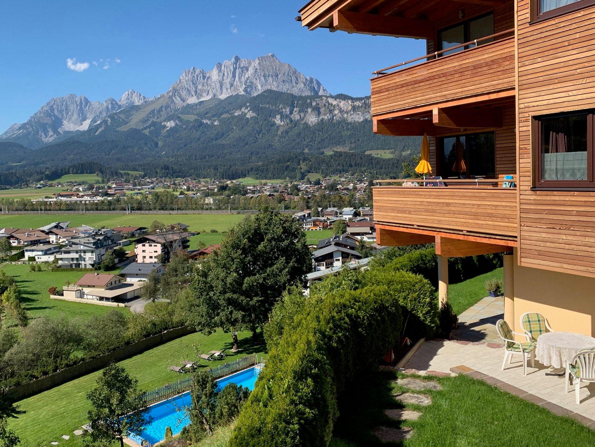 Warmes und helles Holzambiente heißt im 3-Zimmer-Appartement „Tirol“ 2 – 5 Personen willkommen. Die neu renovierte Ferienwohnung verfügt über zwei Schlafzimmer, eine gemütliche Wohnküche mit Ausziehcouch und zwei Balkonen. Ostbalkon mit Blick zum Kitzbüheler Horn und vom zweiten west Balkon ist die Aussicht zum Wilden Kaiser überragend.