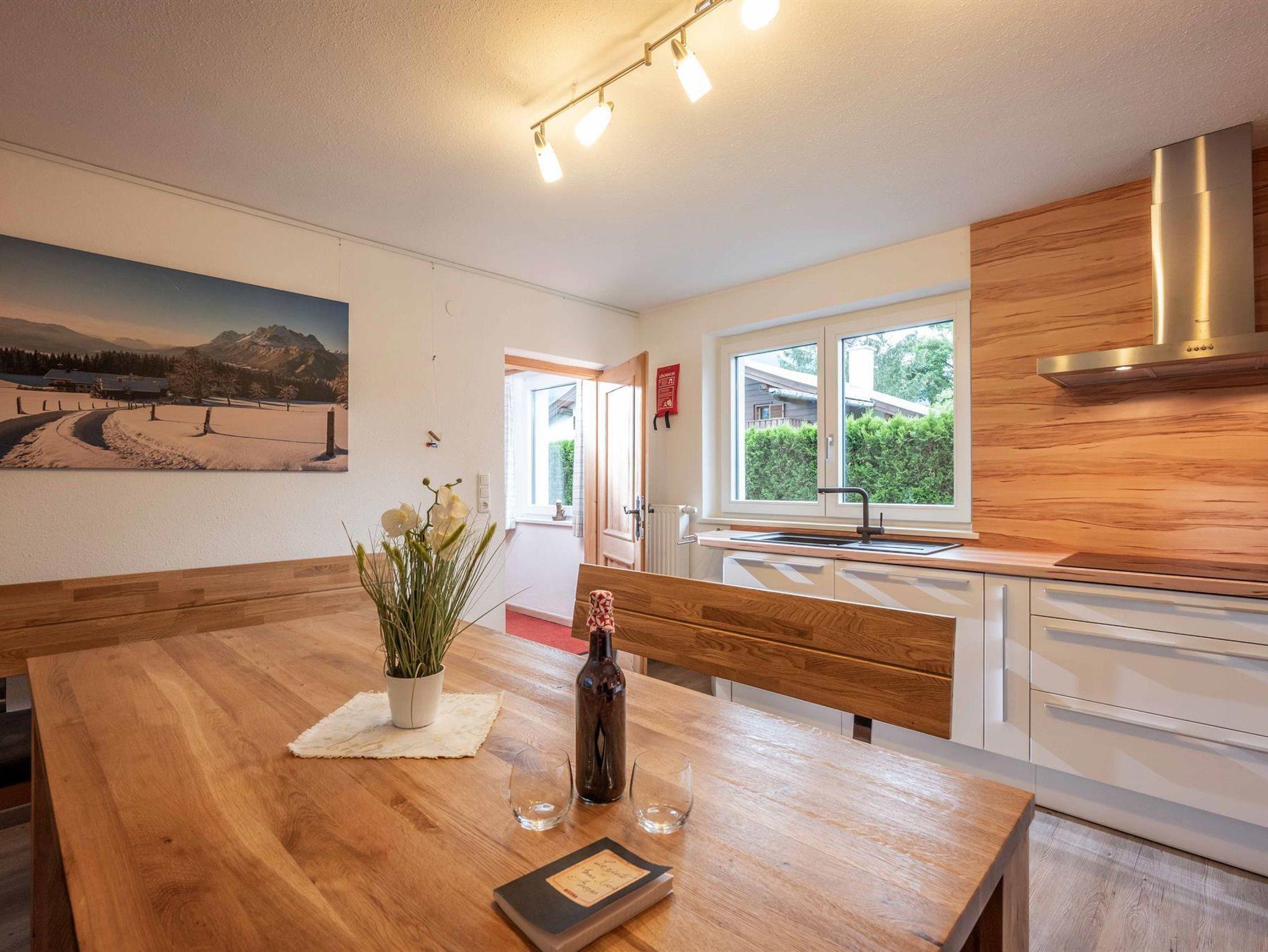 Das Hotel Kaiserfels mit Restaurant und Rockbar sowie einem Sportgeschäft mit Ski und Radverleih sind fußläufig in wenigen Minuten zu erreichen. Das Zentrum von St. Johann ist ca. 1 km entfernt. Im Aussenbereich ist das abspielen lauter Musik nicht erlaubt.