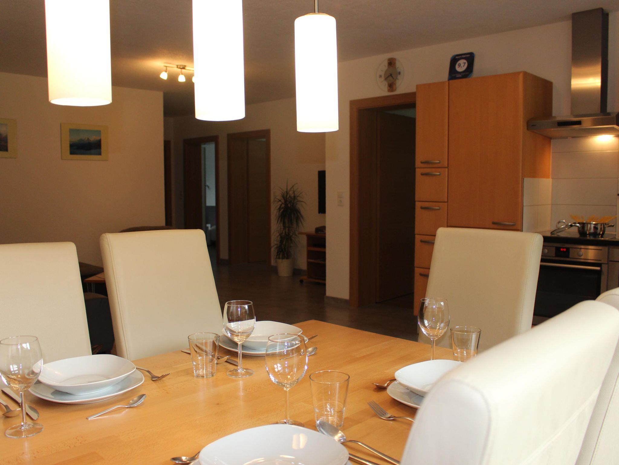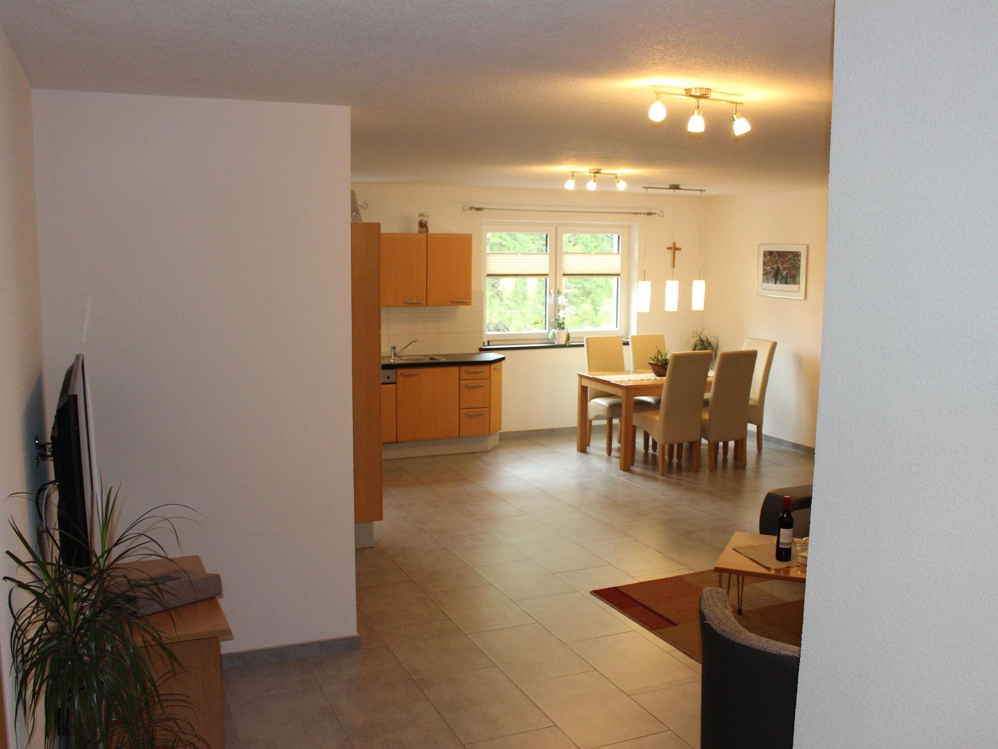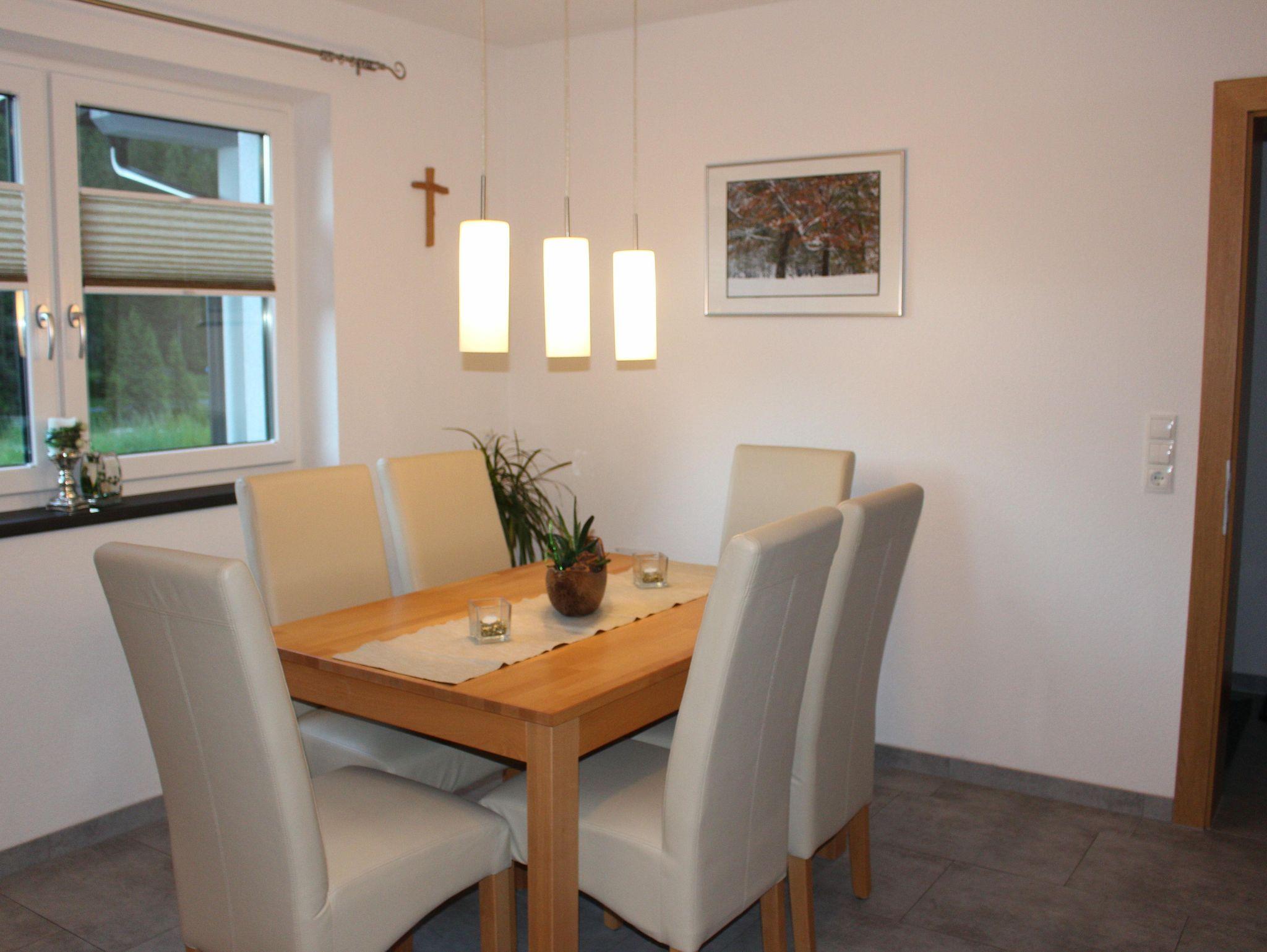 Das Apartment verfügt über 3 Schlafzimmer mit Sat-TV, einer komplett ausgestatteten Küche, Dusche und WC und einer Wohlfühlcouch. Brötchenservice ist auf Wunsch möglich. Die Loipe befindet sich in der Nähe des Hauses, Ski und Wanderbushaltestelle ist ca. 150m entfernt.