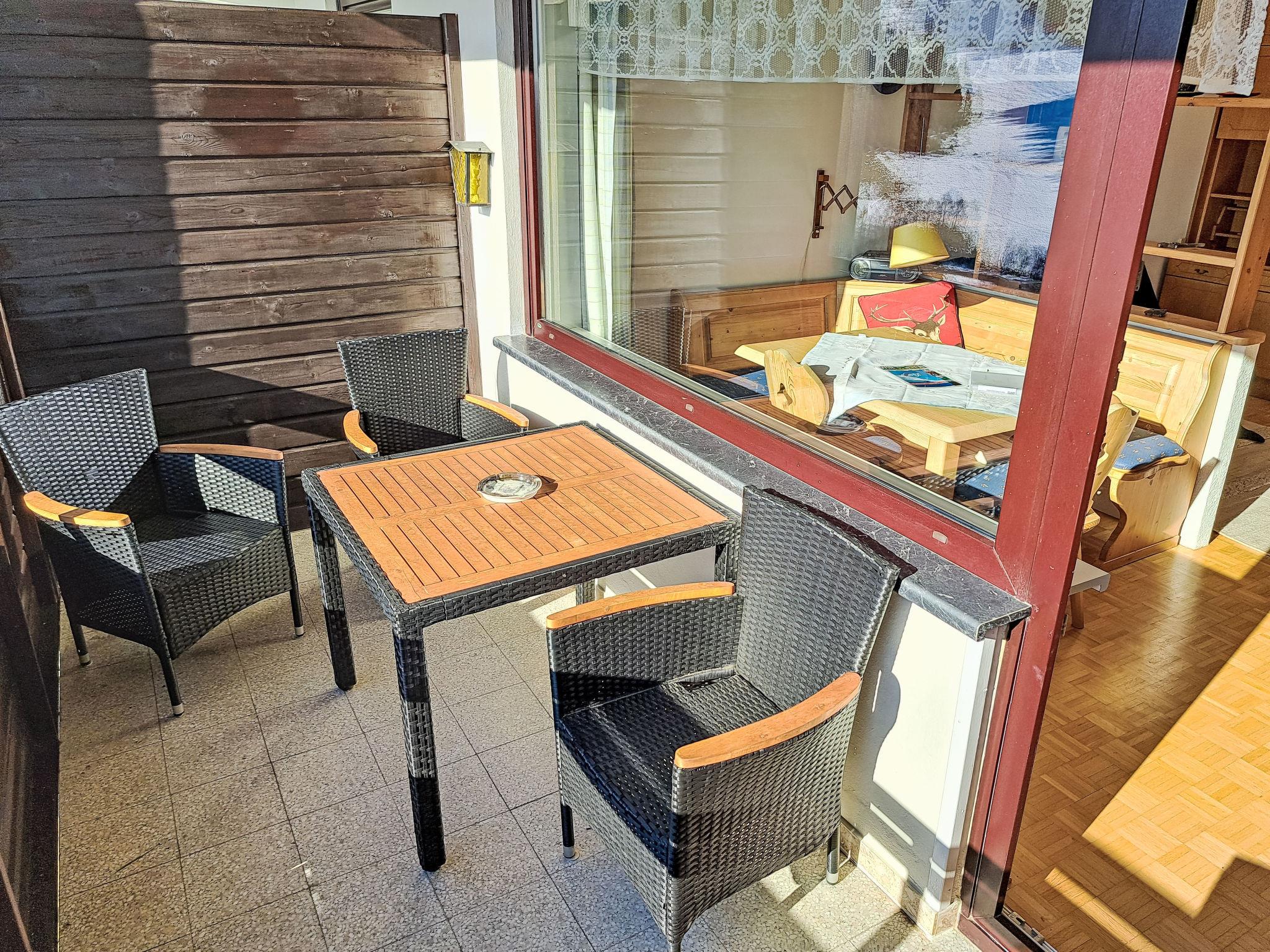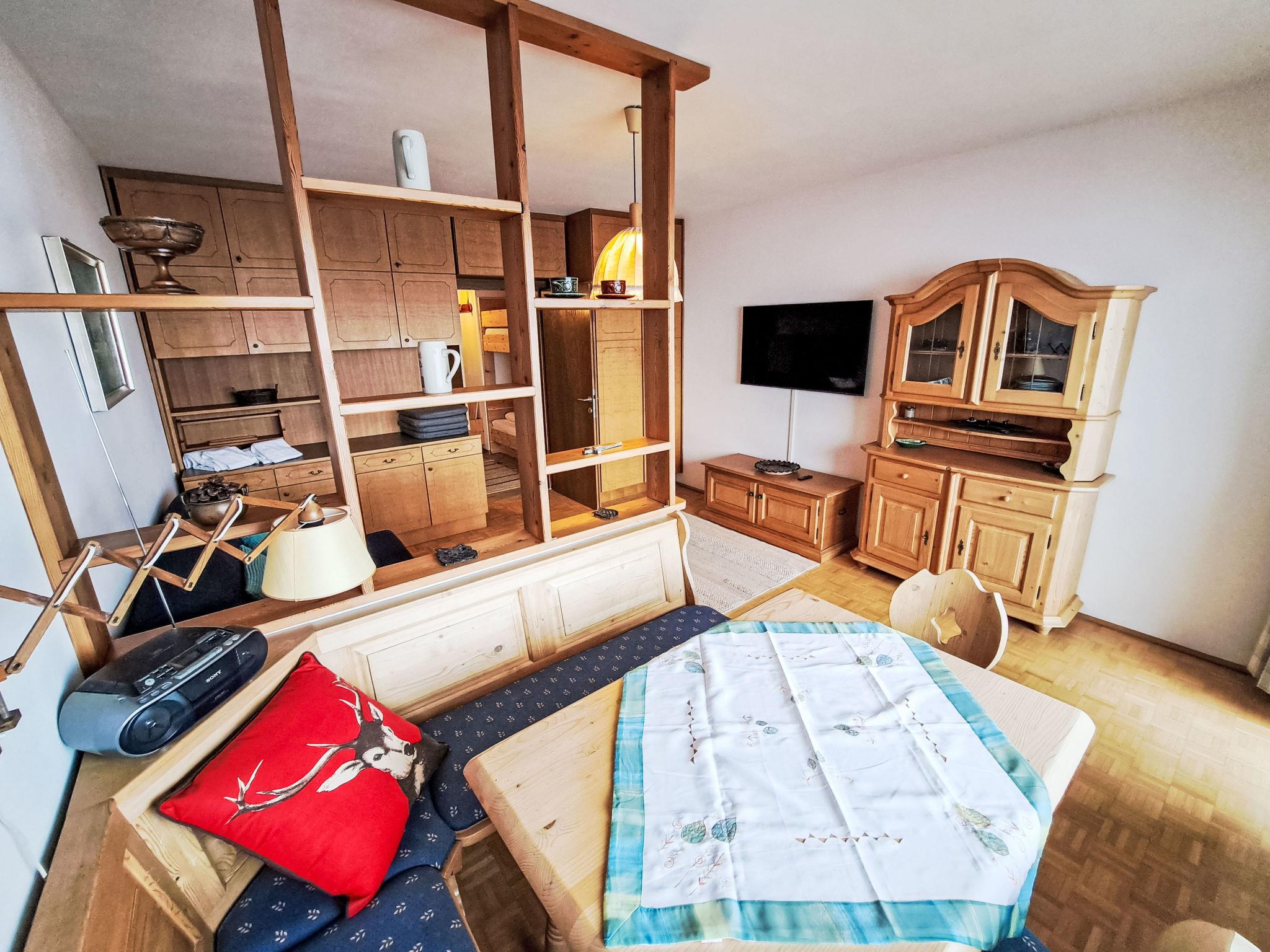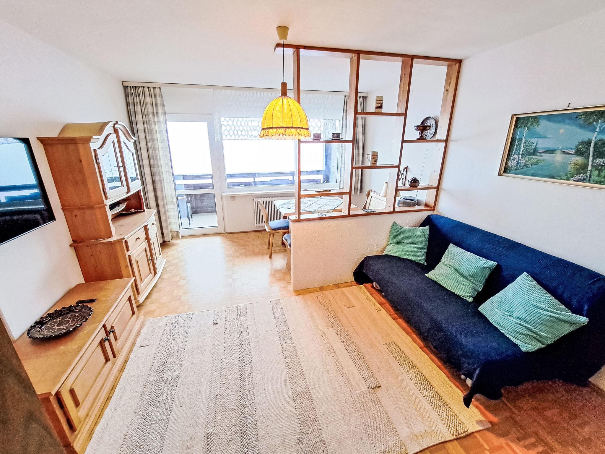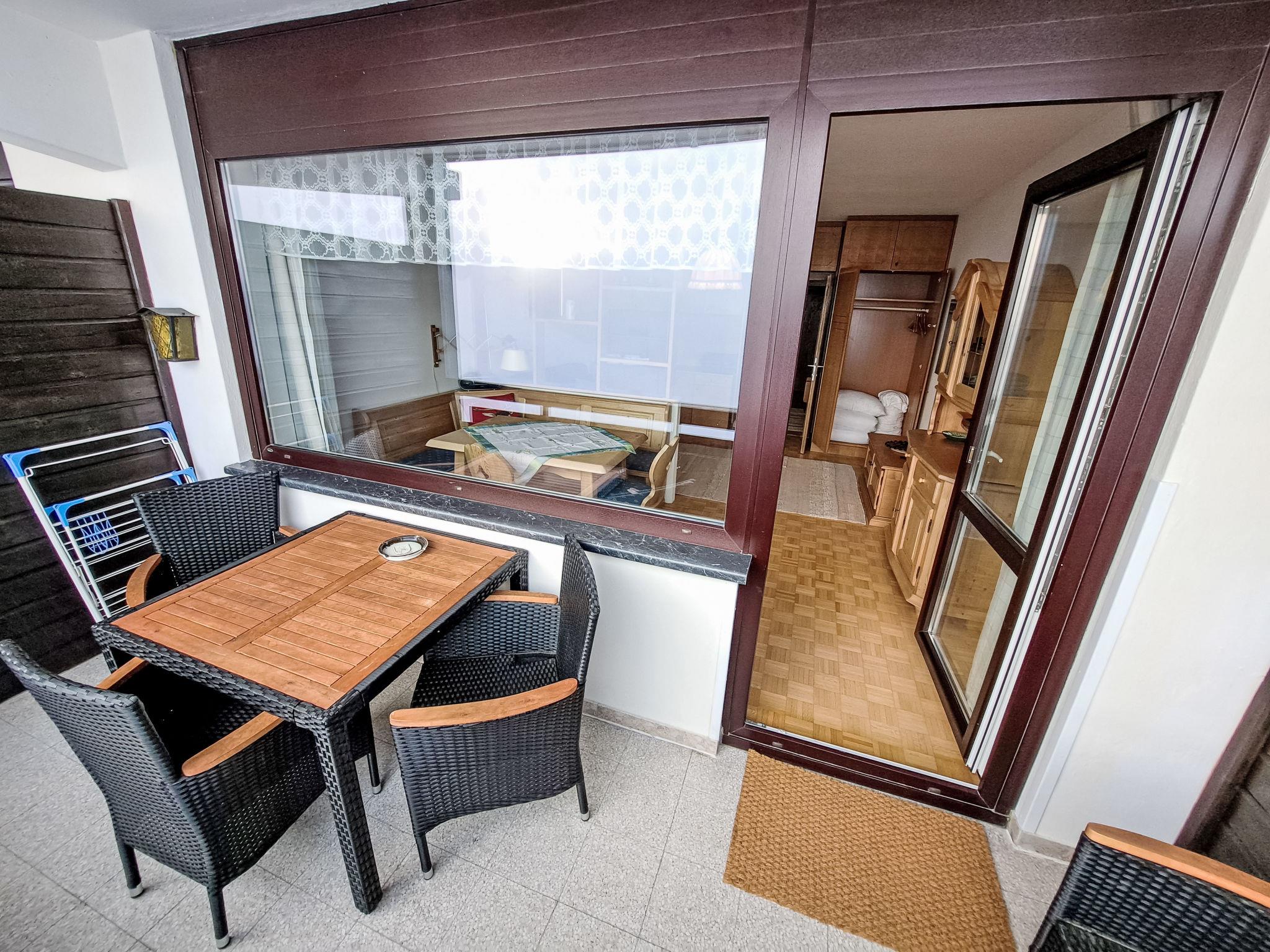 "Urban & Florian Apt. 132", 1-room apartment 35 m2 on 7th floor. Comfortable and cosy furnishings: living/sleeping room with 1 x 1 bunk beds (90 cm, length 200 cm), 1 pull-out bed (2 pers. 2 x 80 cm, length 200 cm), TV and flat screen. Open kitchen (oven, 4 ceramic glass hob hotplates, toaster, kettle, freezer, electric coffee machine) with dining table. Shower, sep. WC. Oil heating. Small balcony. Balcony furniture. Very beautiful panoramic view of the mountains. Facilities: washing machine. Please note: suitable for families. Non-smokers only. Smoke alarm.