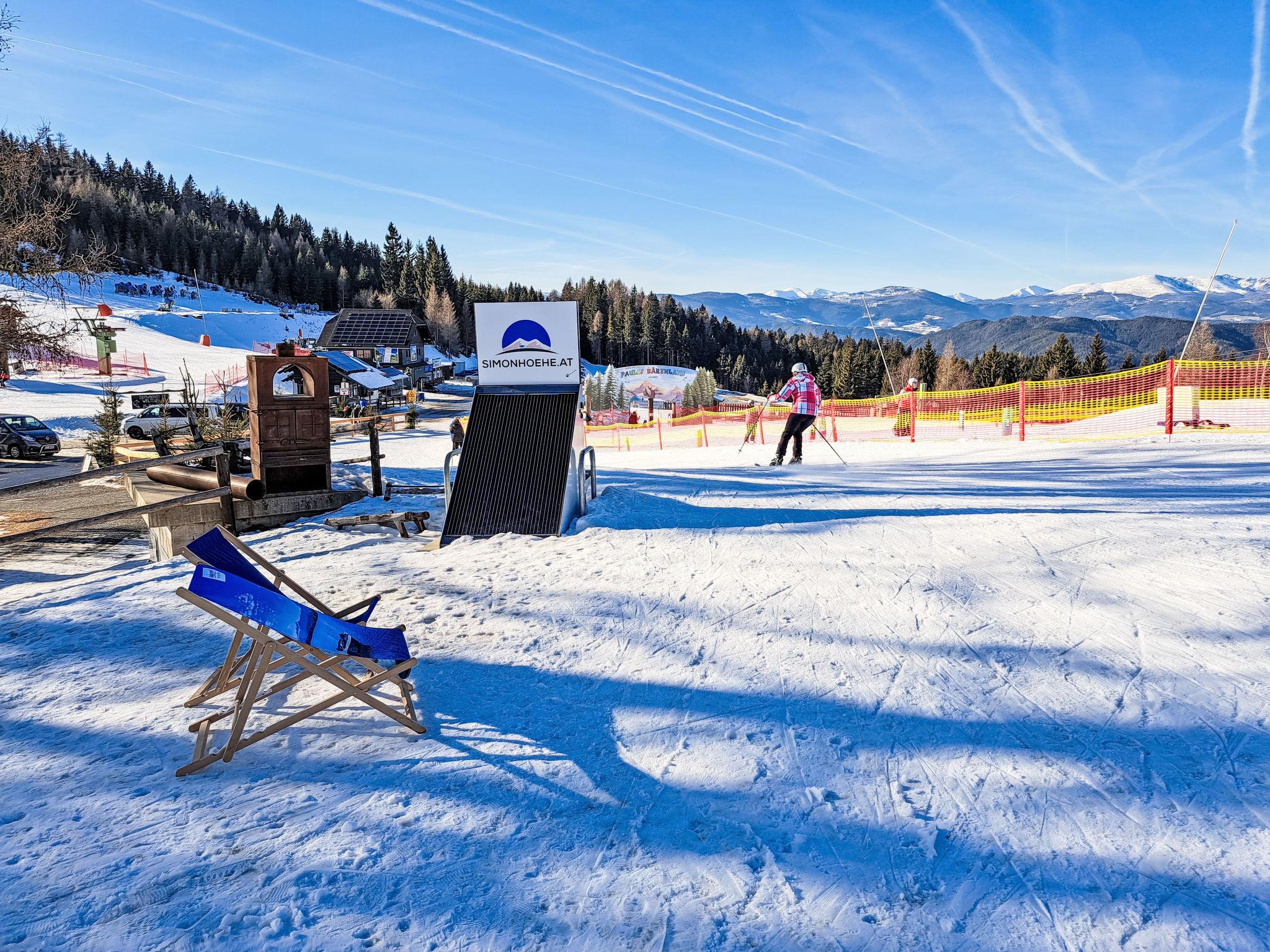 Particularly recommended for families with small children, as the property is completely fenced. Basement drying room via external entrance with washing machine, dryer and fridge-freezer combination for shared use. Modern, cosy, comfortable 2-family house "Simonhöhe Kärntentraum", 1'200 m a.s.l., 2 storeys. 2 apartments in the property. Above St.Urban, in the district of Simonhöhe, in a quiet, sunny position, 50 m from the edge of the forest, 7 km from the lake, 50 m from the skiing area. For shared use: property 2'000 m2 (fenced). Barbecue. In the house: storage room for skis, washing machine, tumble dryer (for shared use), drying room. Motor access to the grounds. In Winter: please take snow chains. Parking (for 4 cars) at the house. Supermarket 5 km, restaurant 100 m, bicycle rental 250 m, bus stop "Simonhöhe Bikepark" 250 m, bathing lake "St. Urban See" 7 km. Riding stable 6 km, walking paths from the house, cycle lane 50 m, ski lift, slopes, ski rental, ski school, children's ski school, cross country ski track 100 m. Nearby attractions: Klagenfurt Minimundus 33 km, Moosburg Sommerrodelbahn 25 km, Burg Landskron Affenberg & Greifvögel 37 km. Well-known ski regions can easily be reached: Simonhöhe 100 m, Gerlitzen 40 km, Bad Kleinkirchheim 40 km. Well-known lakes can easily be reached: Maltschacher See 14 km, Wörthersee 29 km, Ossiacher See 29 km. Hiking paths: ca 100km Wanderwege von 8-28km Länge, 10 Mountainbike-Trails und Kids Area. Please note: suitable for families. In case of good snow conditions, the house is accessible on skis. Loading and unloading of baggage is possible at the holiday house.