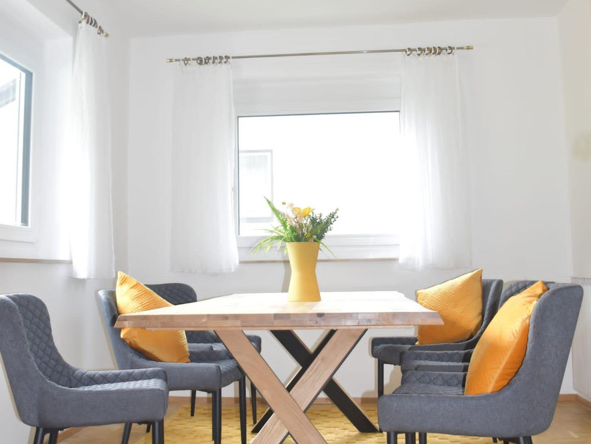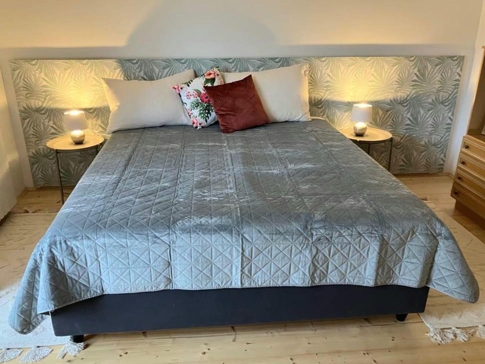 Ferienhaus Julia 140 m ² - komplett neu renoviert: 3 Schlafzimmer mit jeweils 3 Doppelbetten, ein Zimmer mit Balkon, keine Teppichböden,1 Badezimmer mit barrierefreier Dusche im OG, 2 WCs separat, jeweils eines im EG und OG. Neu eingerichtete Küche, separates Esszimmer, separates Wohnzimmer, kleiner Garten, große Terrasse mit Grillmöglichkeit, Parkplatz direkt vor dem Haus. Haustiere sind leider nicht erlaubt.