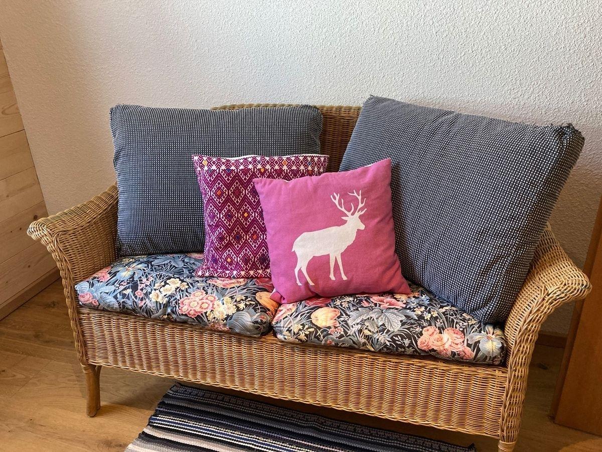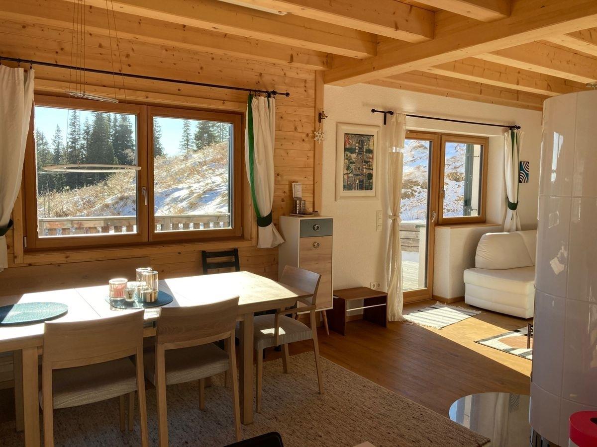 Im Wohnbereich sorgt ein Kachelofen für wohlige Wärme und echtes Hüttenflair.