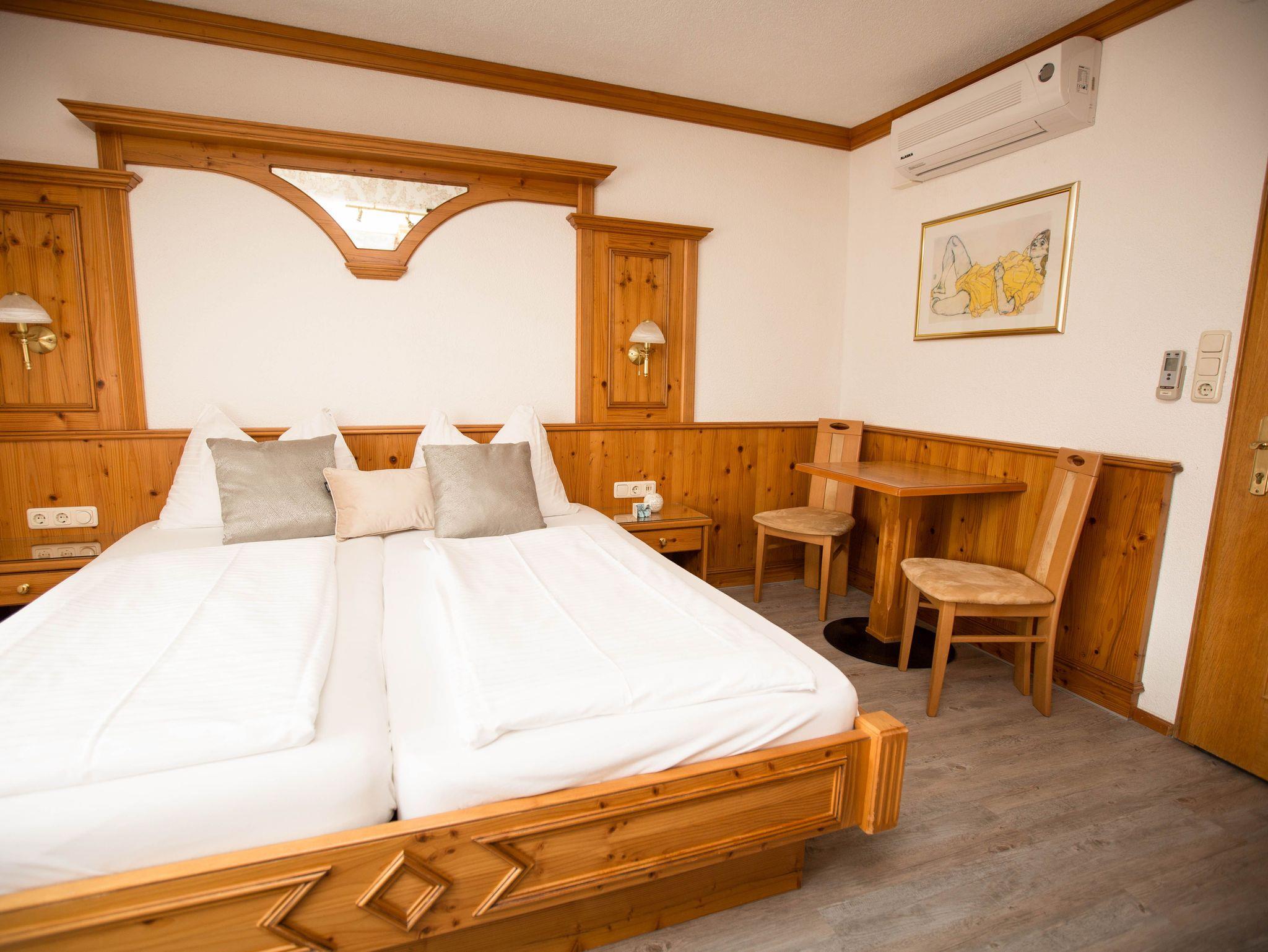 Unsere 4 de luxe Zimmer sind sehr stilvoll ausgestattet. Die Zimmer verfügen teilweise neben dem Doppelbett auch über eine gemütliche Sitzcouch zum Entspannen (als 3. Bett geeignet). Ein Flat-Screen oder Kabel-TV sowie W-Lan Anschluss und Klimaanlage runden das Angebot ab. Badezimmer mit DU, Waschbecken, WC und Fön.