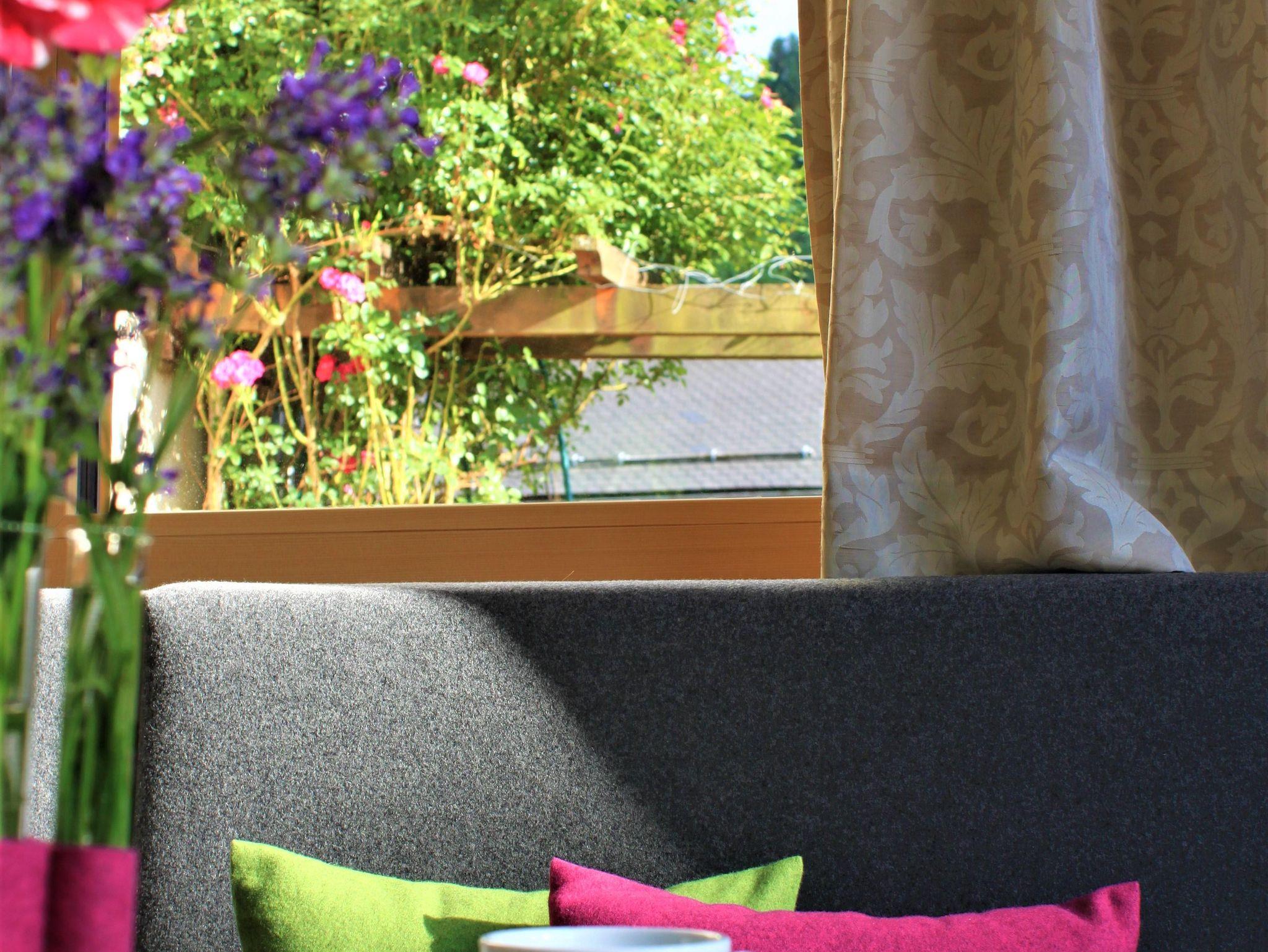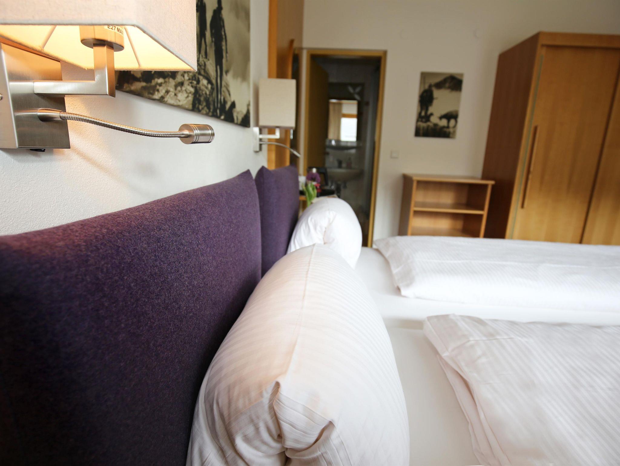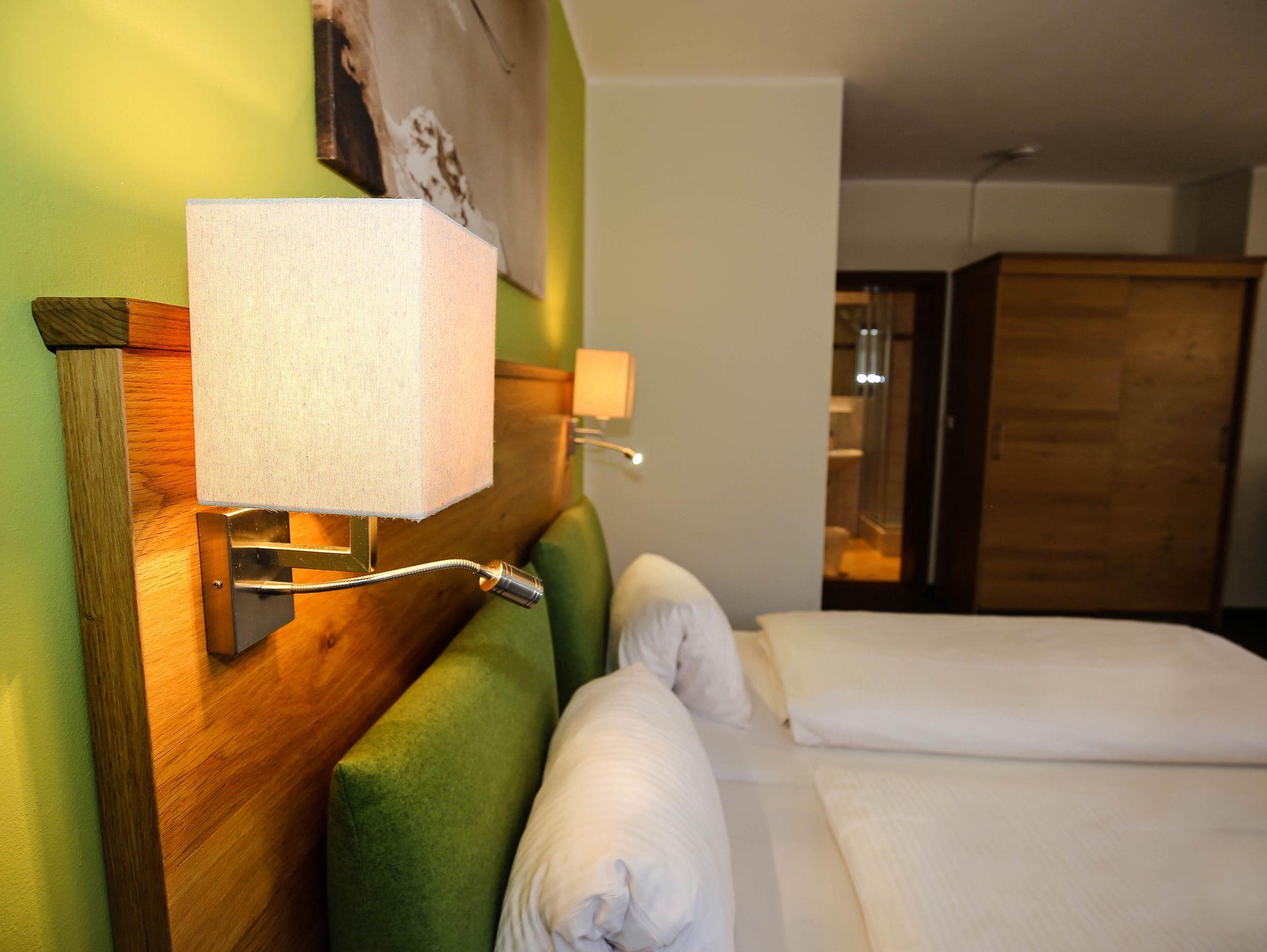 Sie wohnen in schönen, hellen Doppelzimmern mit Sitzgruppe, Dusche/WC, Flatscreen, Safe, Teestation, gratis W-LAN sowie Balkon mit Gartenmöbel und herrlichen Blick auf unsere Umgebung.