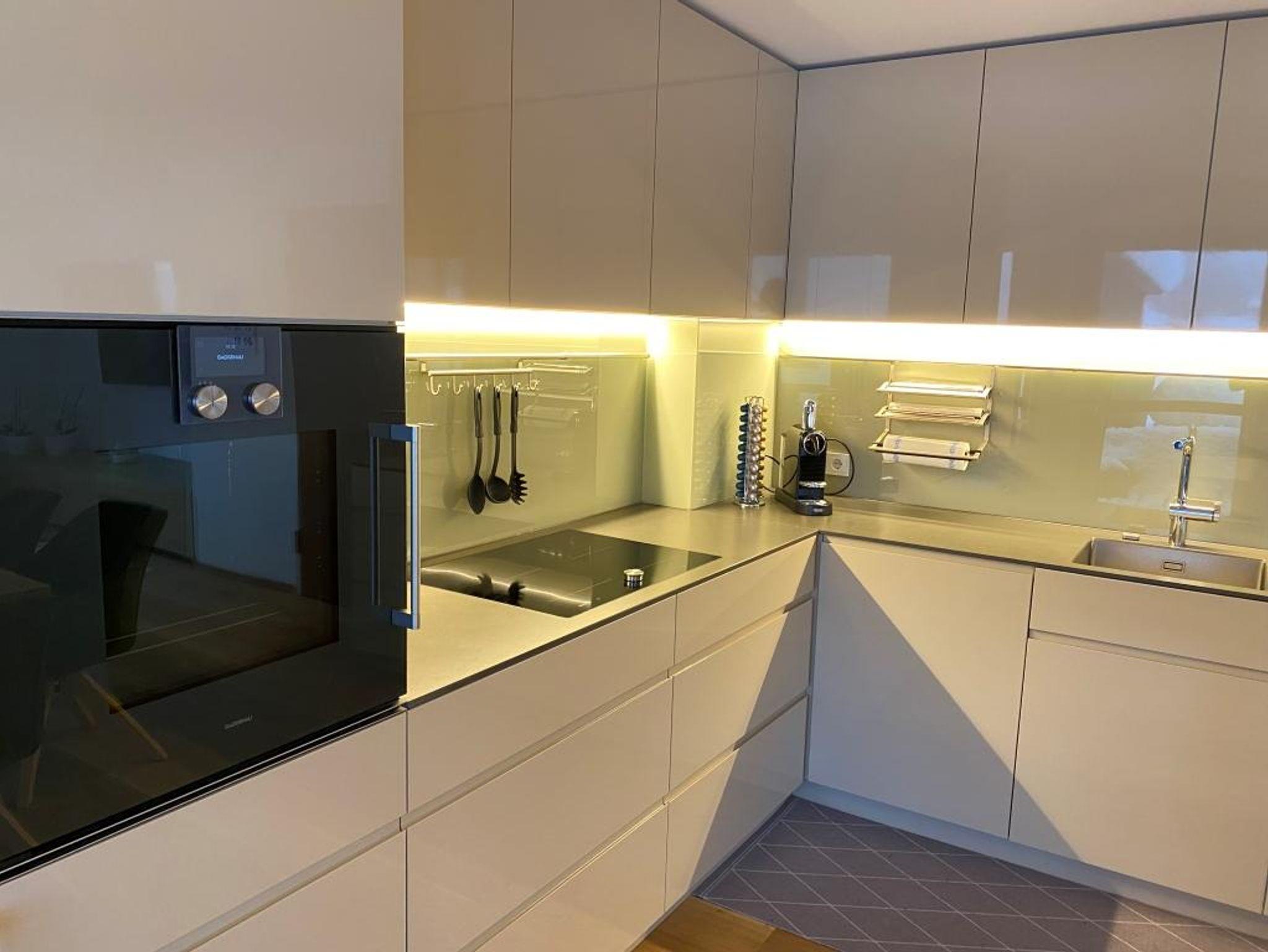 • Voll ausgestattete Küche mit Geschirrspüler, Backofen, Kaffeemaschine, Toaster, Wasserkocher u.v.m.