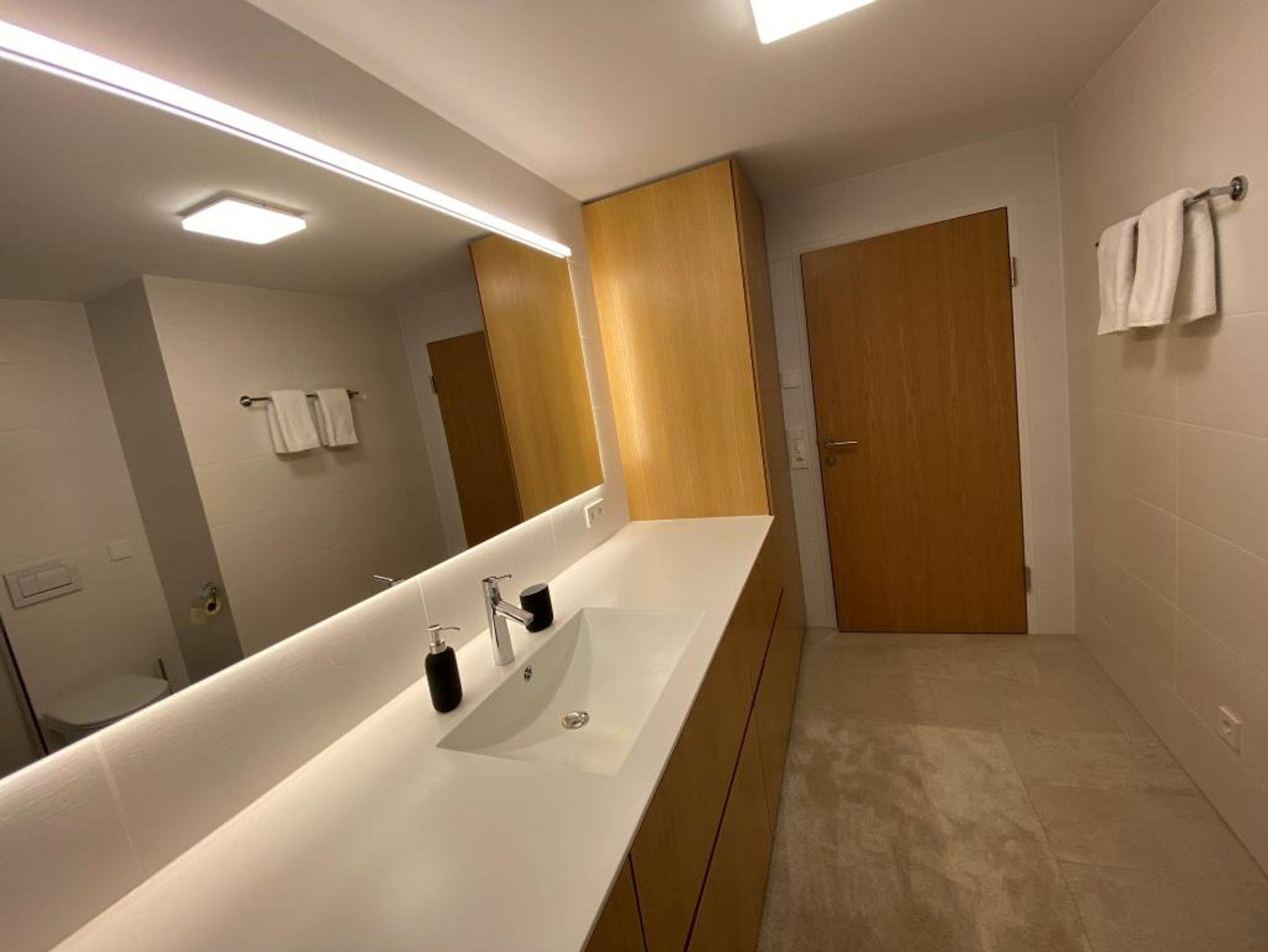 Diese großzügige Ferienwohnung mit einer Gesamtfläche von 110?m² bietet ein helles, einladendes Wohnzimmer, drei separate Schlafzimmer sowie ein modernes Badezimmer mit ebenerdiger Dusche und Haartrockner.