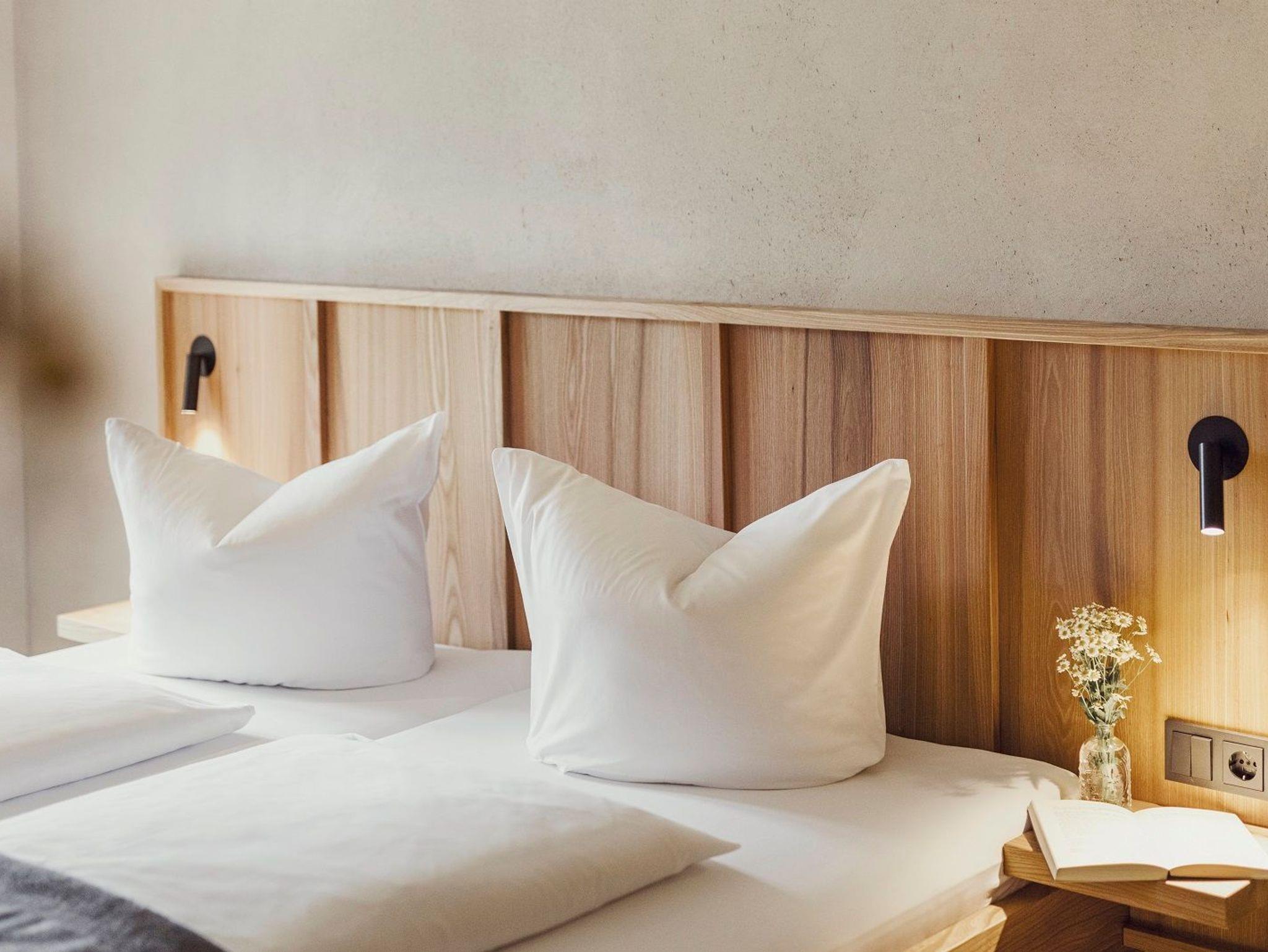 Zwischen 25 m² und 29 m² großes Superior-Doppelzimmer im zeitlosen, eleganten Stil. Das schlichte Design und die hochwertigen Naturmaterialien schaffen eine besonders angenehme Raumatmosphäre. Badezimmer mit Regendusche und WC. Darüber hinaus TV, Safe, Telefon und Wifi. In diesem Zimmer sind Haustiere leider nicht erlaubt.
