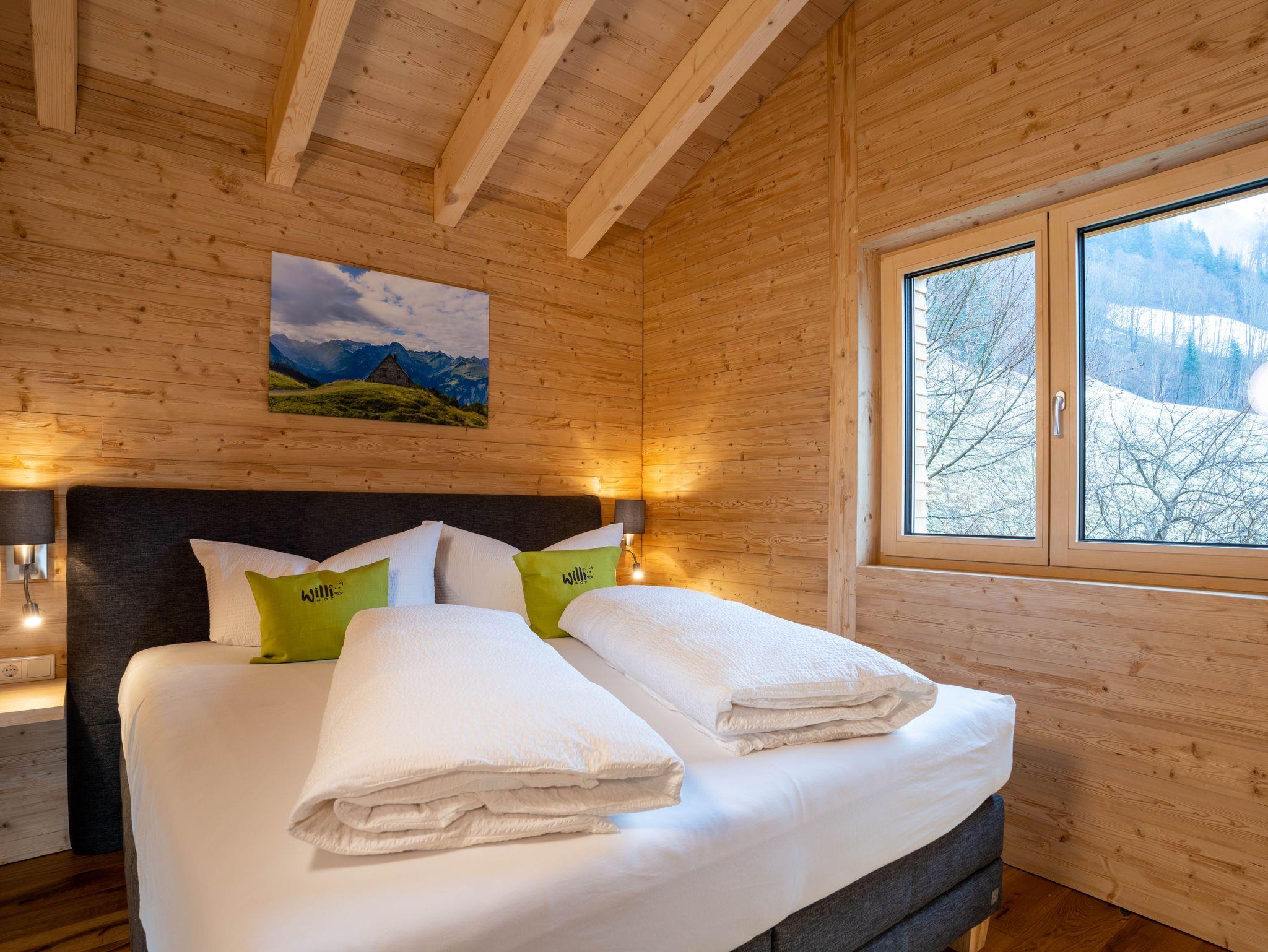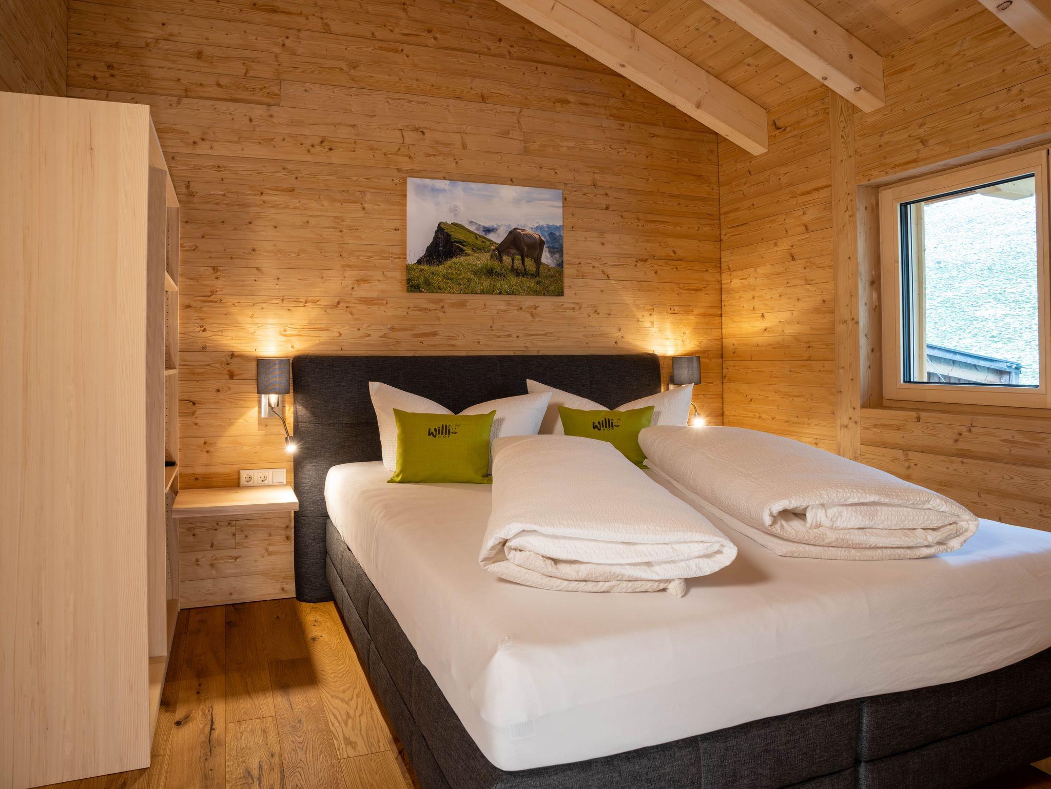 Es ist mit vier Doppelzimmern, einer Wohnküche und zwei separaten Nasszellen mit Dusche und WC ausgestattet. Sein geräumiger und zum Raum hin offener Dachboden eignet sich gerade für Kinder als Spiel- oder einfach als Rückzugsraum.