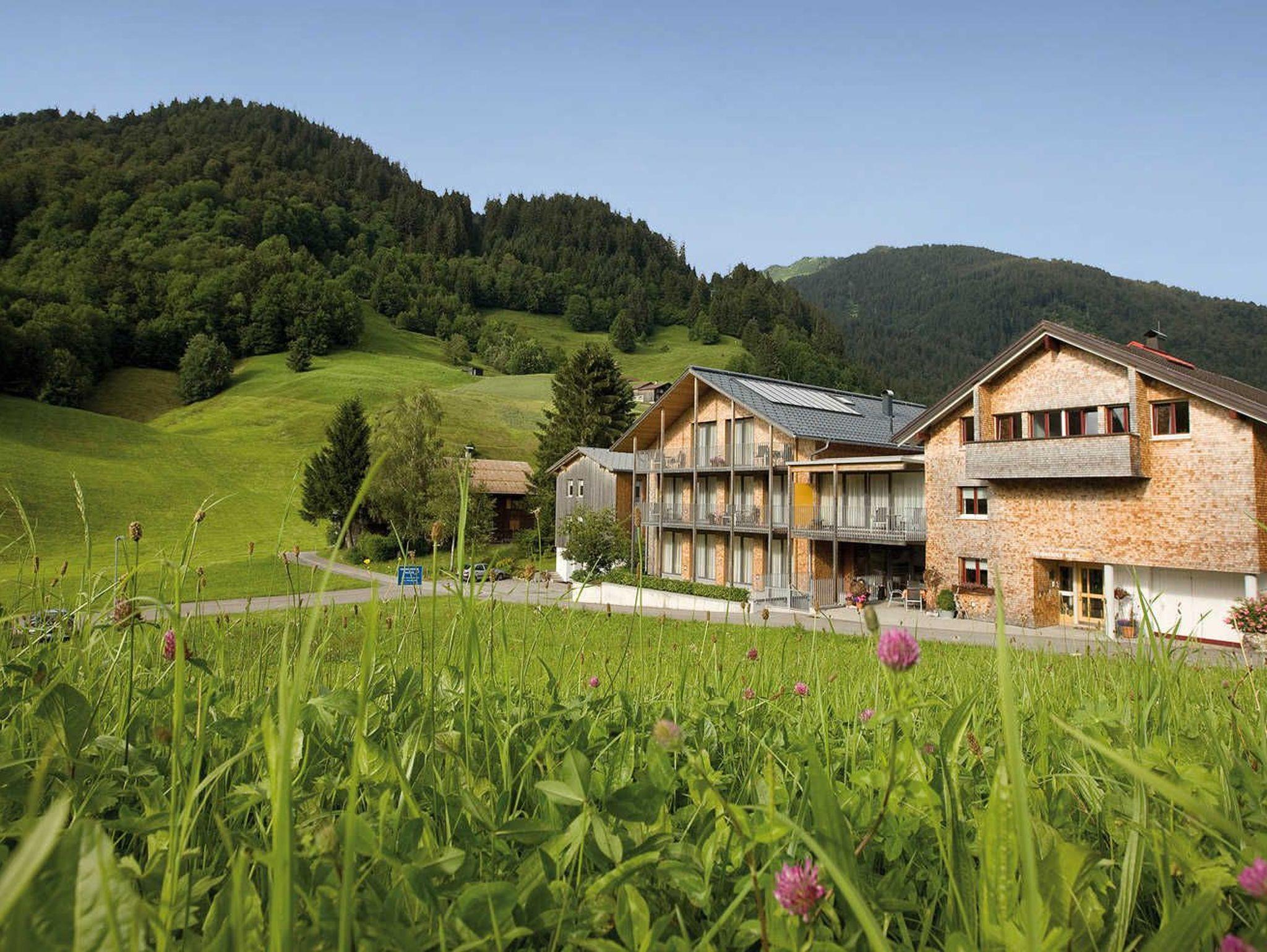 (renoviert 2009) mit 20 m² großem Balkon mit Blickrichtung Schoppernau - bestehend aus 2 getrennten Schlafzimmern (1 Doppel- und 1 Dreibettzimmer) 1 Flat-TV, Küche mit Geschirrspüler und Kühlschrank, Bad mit Dusche/WC; Achtung die Ausstattung ist nicht mit den neuen Apartments vergleichbar