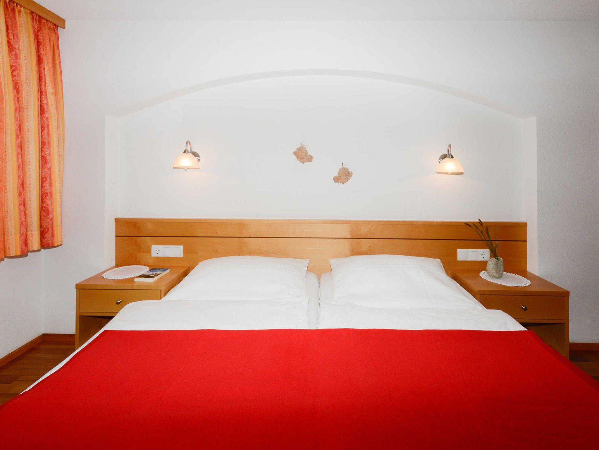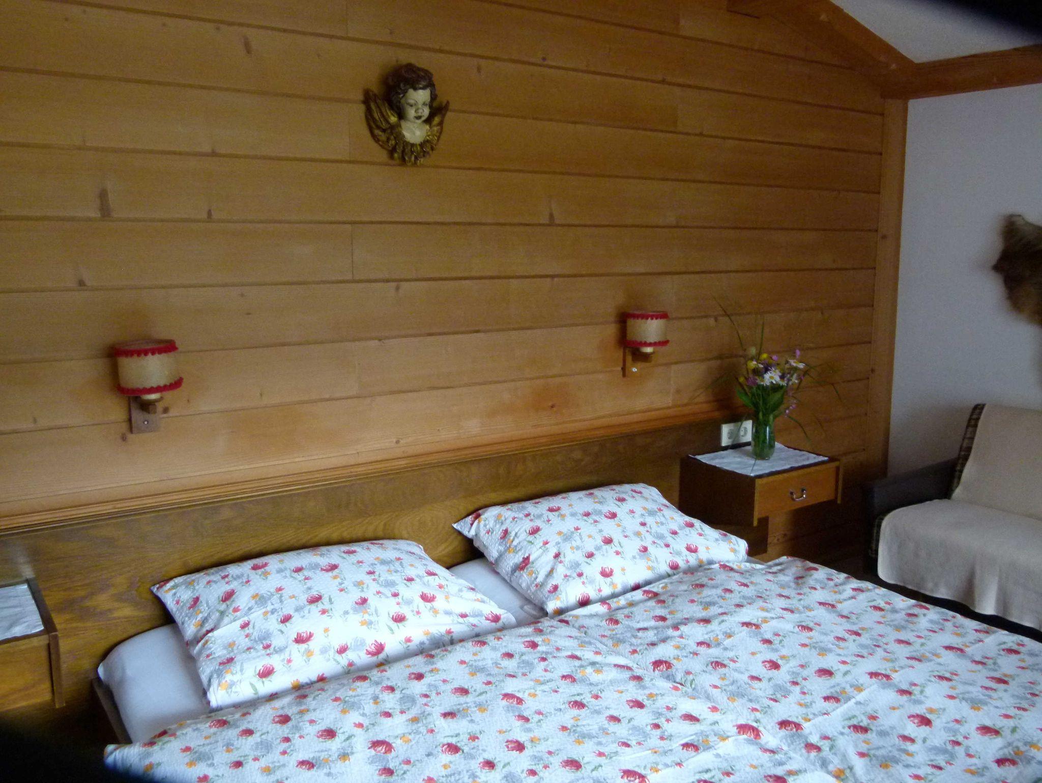 • Im kleinen hellen DZ (gerne auch als EZ) steht ein Doppelbettt mit angebauten Nachtkästchen und in der Mitte wacht ein Engel Ihren Schlaf.