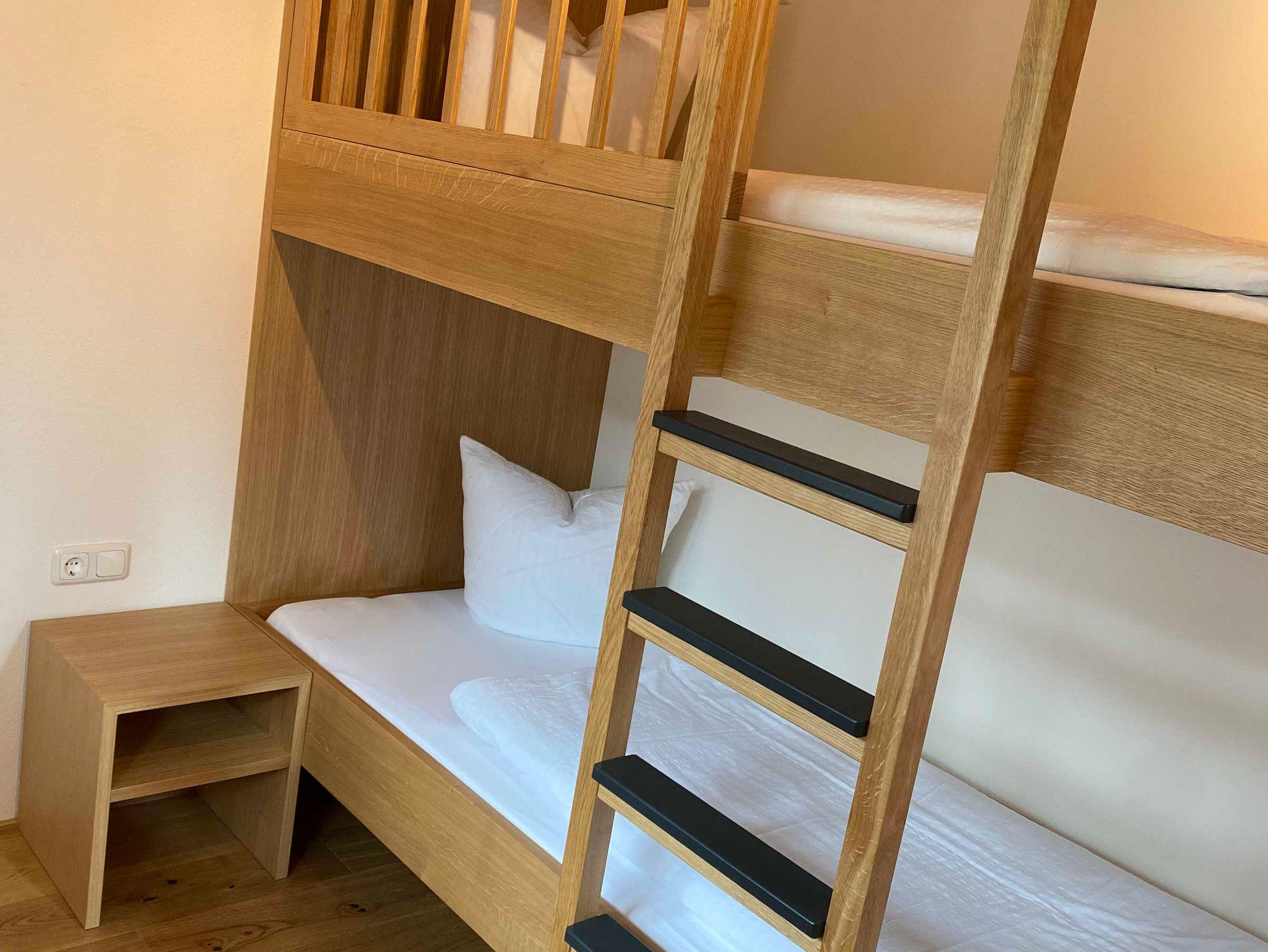 In der komplett neu renovierten (Mai 2022) Ferienwohnung befindet sich eine Garderobe, Doppelzimmer mit Zugang zum Balkon, ein weiteres Schlafzimmer mit Etagenbett, Bad (Dusche/WC) sowie eine gemütliche Wohnküche mit einladender Eckbank.