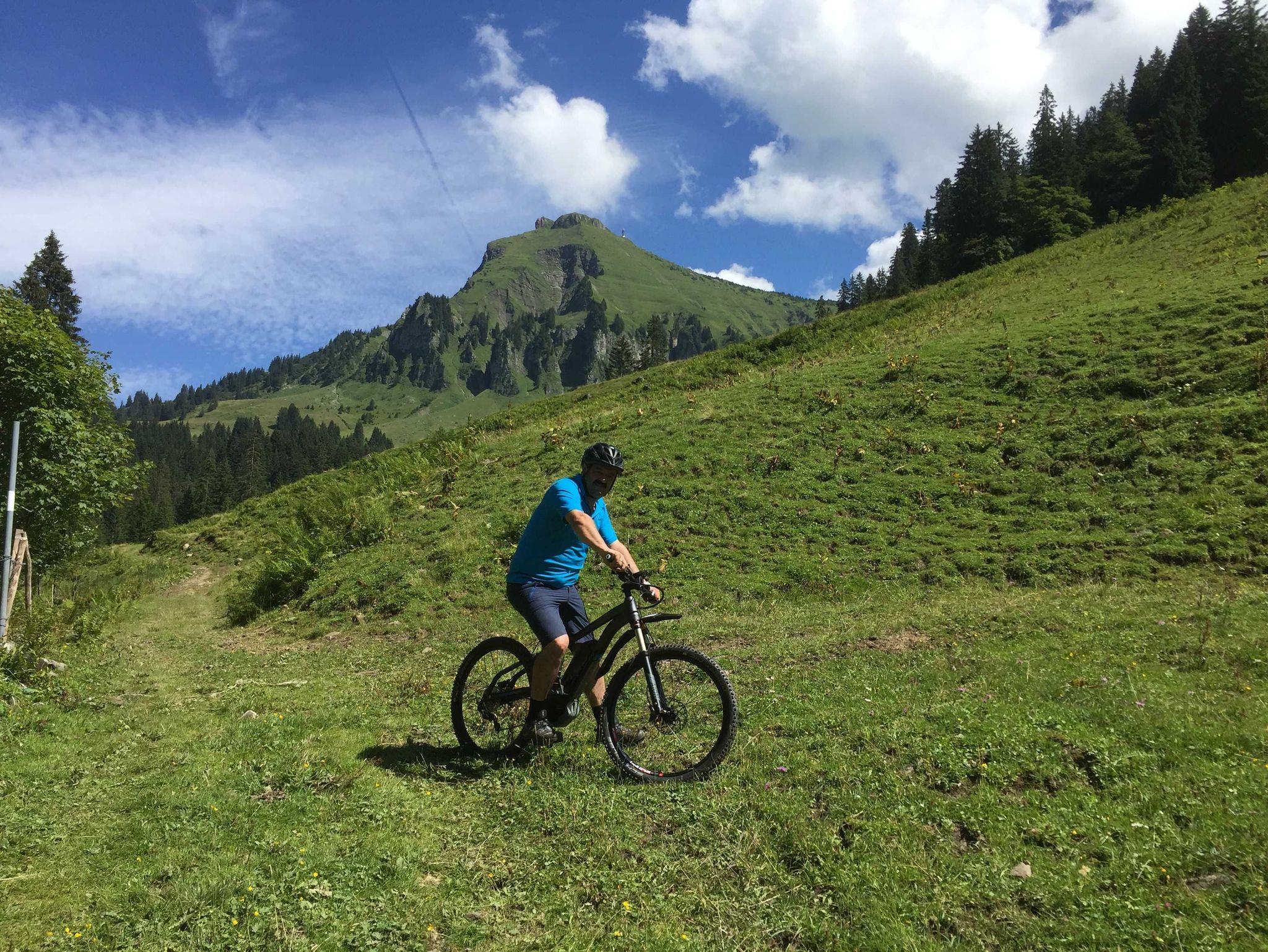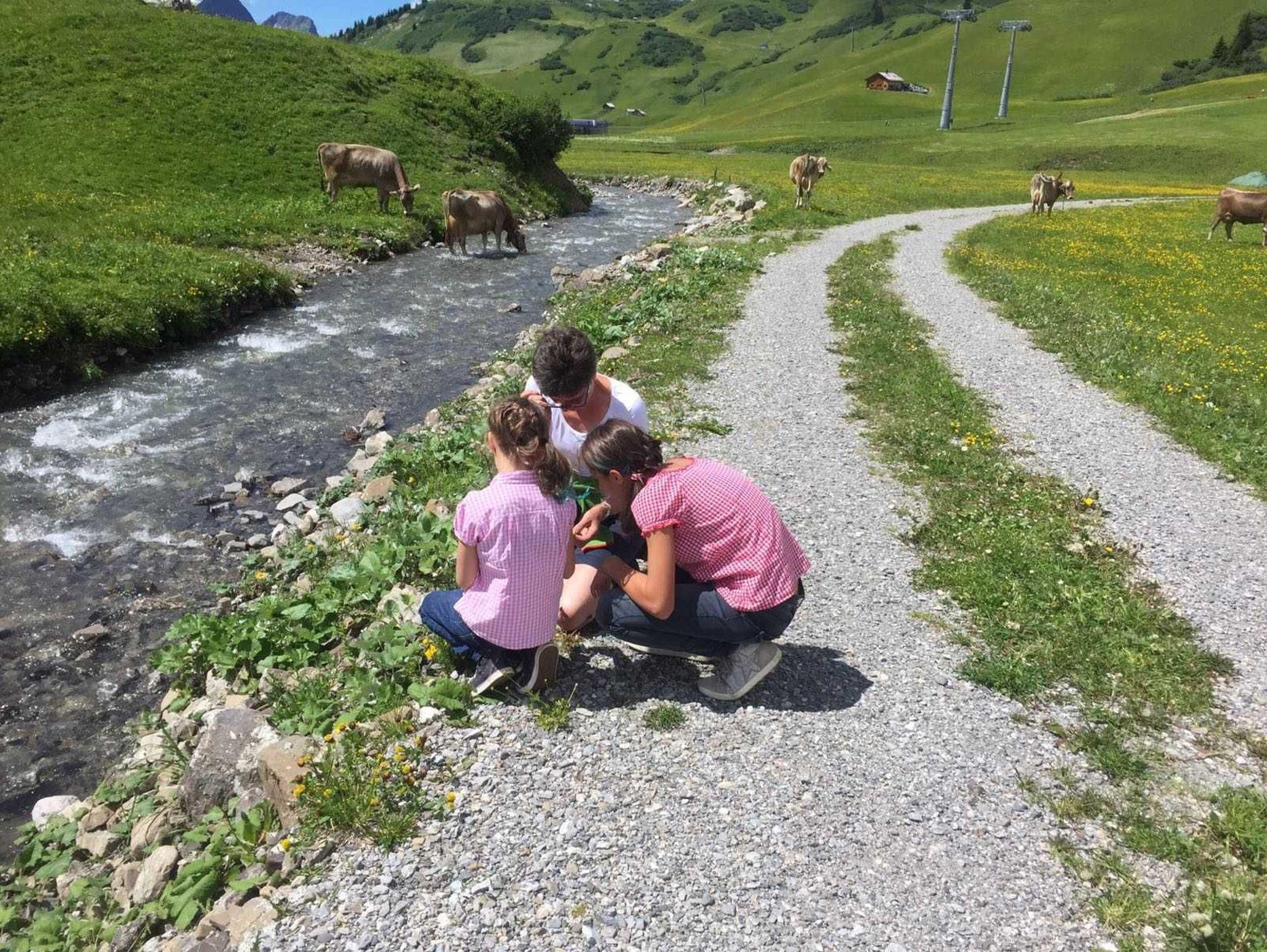 Sie wohnen auf 850m Seehöhe, in ruhiger sonniger Lage, am Südhang von Schoppernau, nur wenige Minuten vom Zentrum entfernt.
