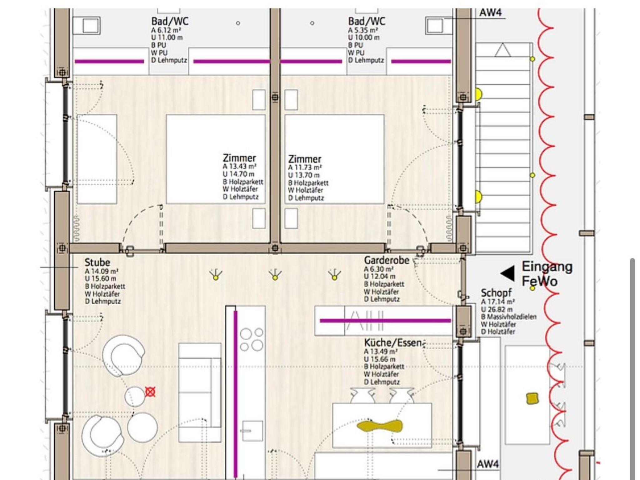 Unsere komfortable und geräumige Ferienwohnung (70m2) eignet sich für 2 - 5 Personen. Sie verfügt über eine voll ausgestattete Küche, Wohnzimmer, 1 Doppelzimmer mit Dusche/WC und 1 Dreibettzimmer mit Dusche/WC, Terrasse, Ski/Fahrradraum + Skischuhheizung, E-Bike Plug IN, kostenloses WLAN. Kinderbett und Kinderhochstuhl stellen wir bei Anfrage kostenlos zur Verfügung.