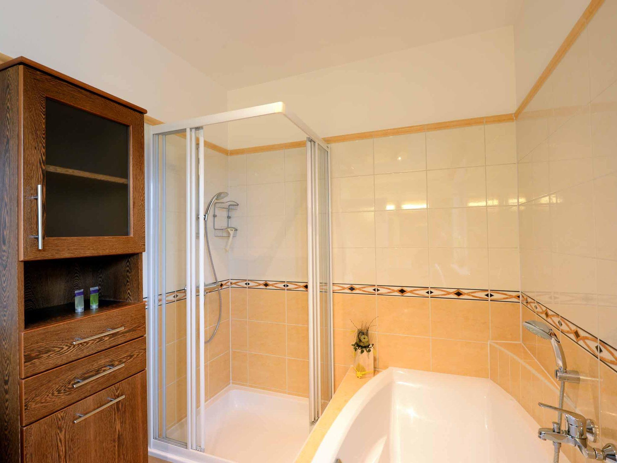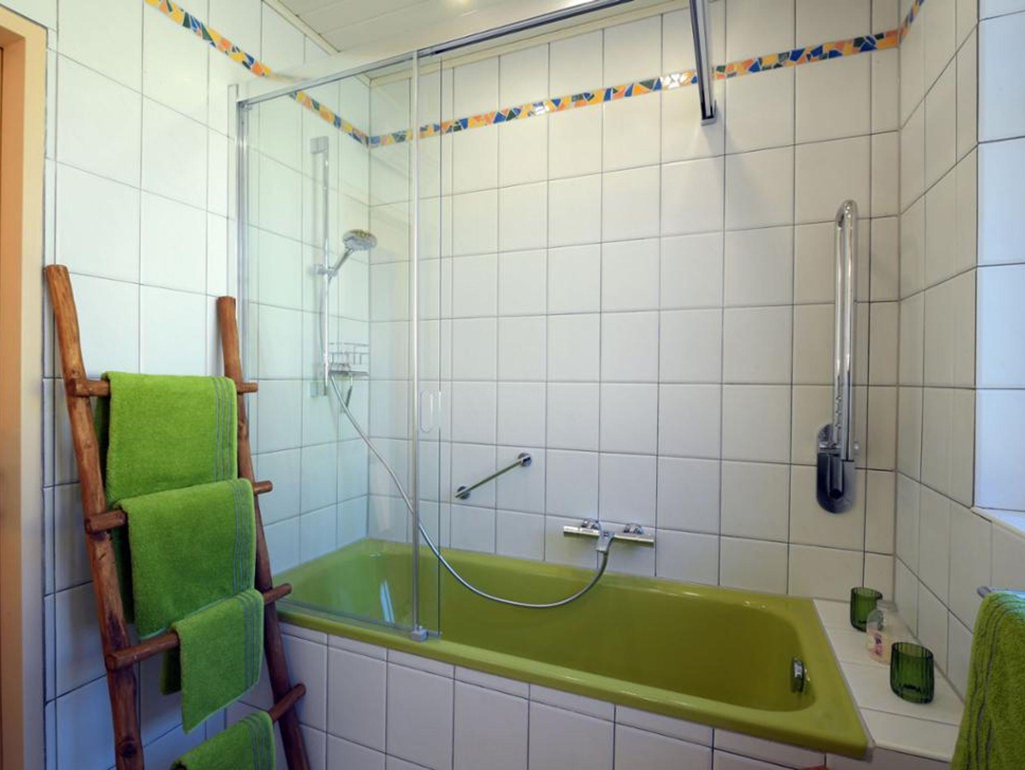 Handtücher, Duschtücher, Duschgel, Haarfön sowie Waschmaschine und Waschmittel stehen im Badezimmer zur Verfügung. Wäscheständer, Bügeleisen, Bügelbrett befinden sich im Schlafzimmer sowie Flachbild – SAT TV im Wohnzimmer.Kostenfreies WLAN, Privater Eingang sowie Parkmöglichkeit im Carport!