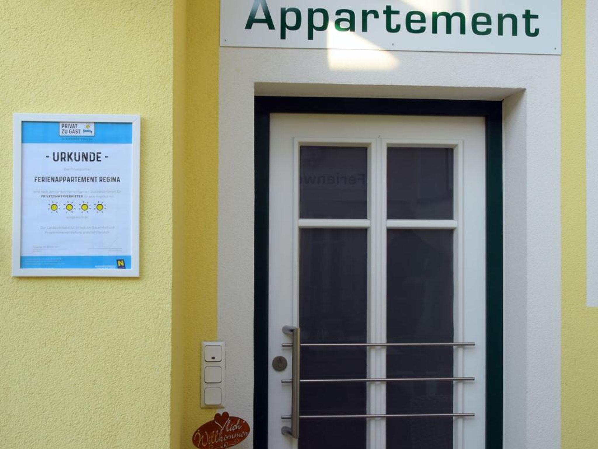 Das Ferienappartement Regina befindet sich im Waldviertel in der Braustadt Schrems, Heimat der GEA Waldviertler Schuhe und des IDEA Designcenters. Das Stadtzentrum ist ca. 700 m entfernt, das Unterwasserreich Schrems sowie das Moorbad und die Himmelsleiter sind in ca. 2 km Nähe. Es ist ein wunderschönes großzügig ausgestattetes Ferienappartement 98 m2 für 2 – 4 Personen mit großer Sonnenterrasse und Wintergarten sowie großer topausgestatteter Wohnessküche mit 4 Platten Ceranfeld, Backrohr, Mikrowelle, Geschirrspüler, Kühl-Gefrierschrank, Toaster, Kaffeemaschine, Nespressoautomat, Wasserkocher, Mixer, Stabmixer, Nespressokapseln, Kaffee- und Teezubehör, GS Tabs und Spülmittel, Geschirrtücher, Wäscheständer, Bügelbrett, Bügeleisen, stilvolles Porzellan und Gläser, kulinarisches Willkommenspaket, Flachbild-TV, kostenfreies WLAN, Privater Eingang, Parkmöglichkeit in Carport vorhanden, 1 Schlafzimmer mit Doppelbett, 1 Zimmer mit Schlafsofa, 1 geräumiges Bad mit großer Badewanne, Dusche, Bidet, Waschmaschine, 2 Waschbecken , Handtücher, Duschtücher, Kosmetikspiegel, Kosmetiktücher, separates WC.