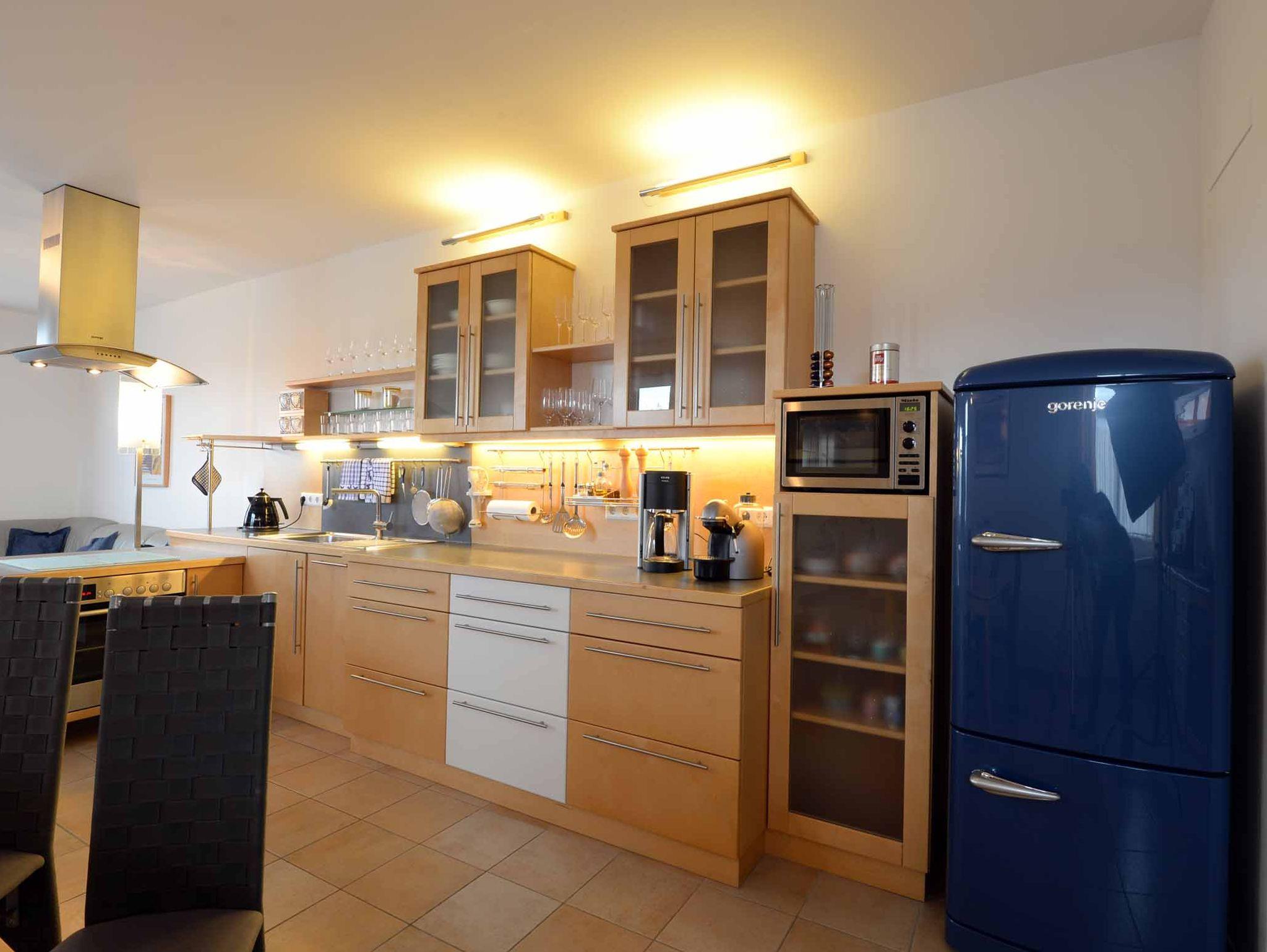 Die Ferienwohnung Regina ist eine nette und großzügig ausgestattete 84 m2 große Ferienwohnung für 2 – 4 Personen. Kinder und Haustiere sind herzlich willkommen! Bei Bedarf steht ein 2. Schlafzimmer zur Verfügung (Gesamtwohnfläche damit 101 m2).In der topausgestatteten und gemütlichen Küche befindet sich ein Miele 4-Platten Ceranfeld mit Backrohr und ein Miele Geschirrspüler, Mikrowellenherd, Kühl- Gefrierschrank mit Kellerzone, Toaster, Eierkocher, Kaffeemaschine, Nespressoautomat, Wasserkocher, Mixer, Stabmixer, Nespressokapseln, Kaffee- und Teezubehör, Geschirrspül Tabs und Spülmittel, Geschirrtücher sowie Geschirr mit Gmundner Keramik und Gläser.