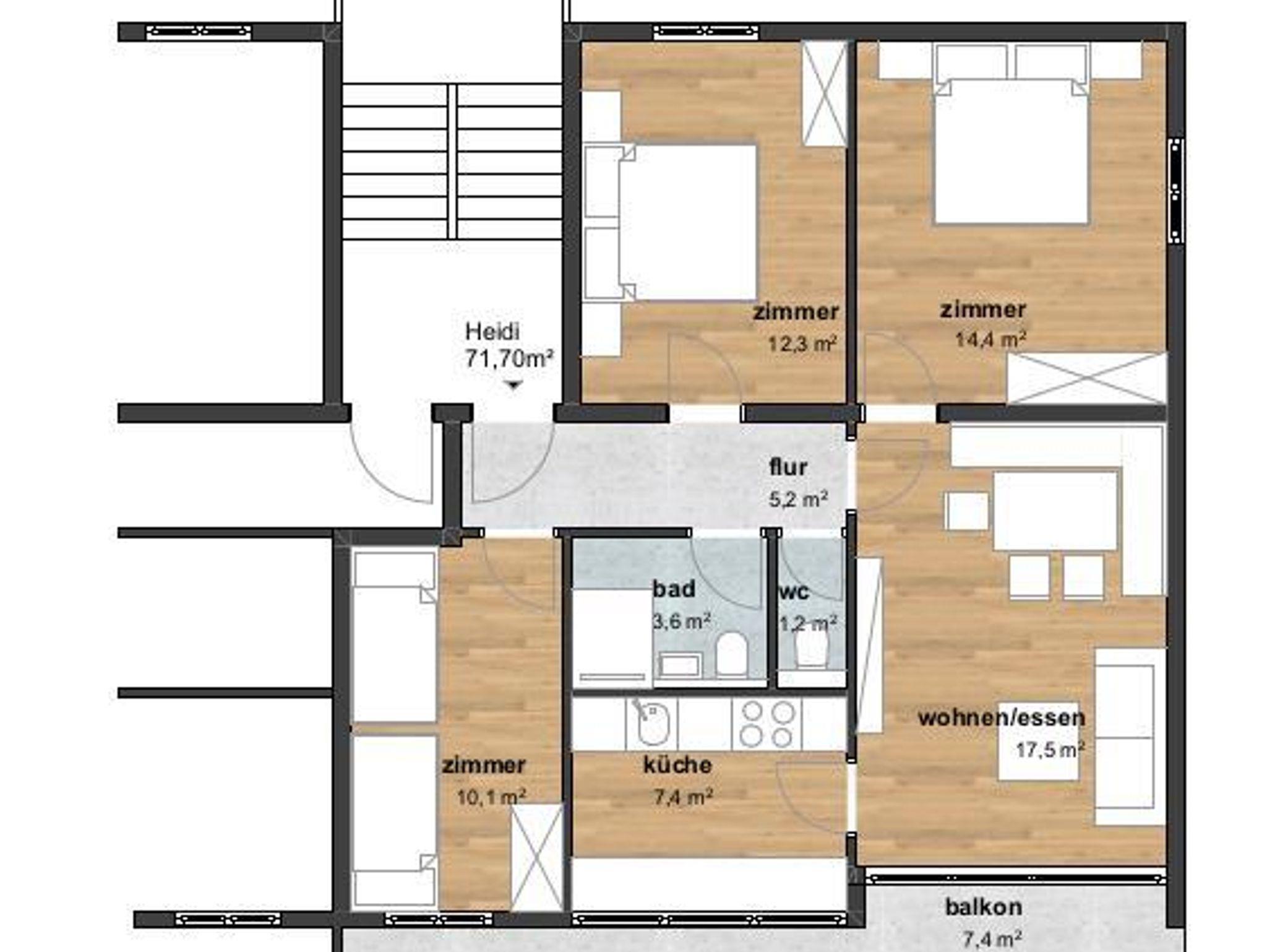 Ferienwohnung Heidi, Appartement/Fewo, Dusche, WC, 3 Schlafräume