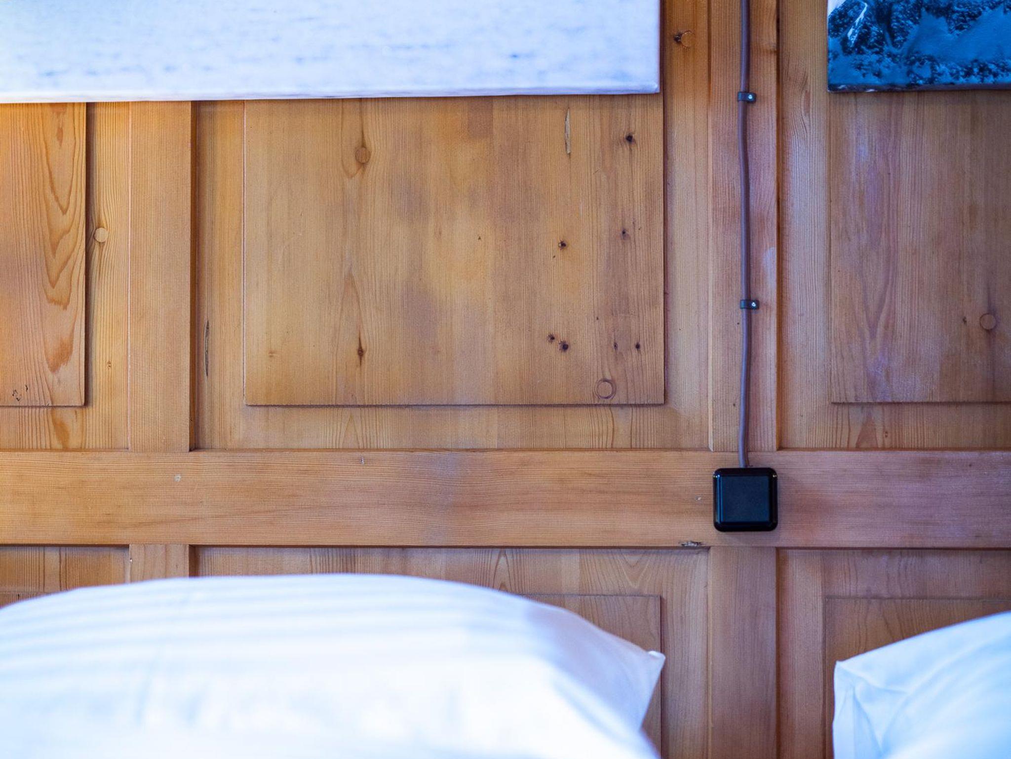 Der zentrale Holzofen im Erdgeschoss wird durch den Gast selbst befeuert. Des Weiteren verfügt das Haus über Elektrobodenheizungen im WC und den Bädern, sowie Infrarot-Holzpaneele, welche automatisch gesteuert werden.