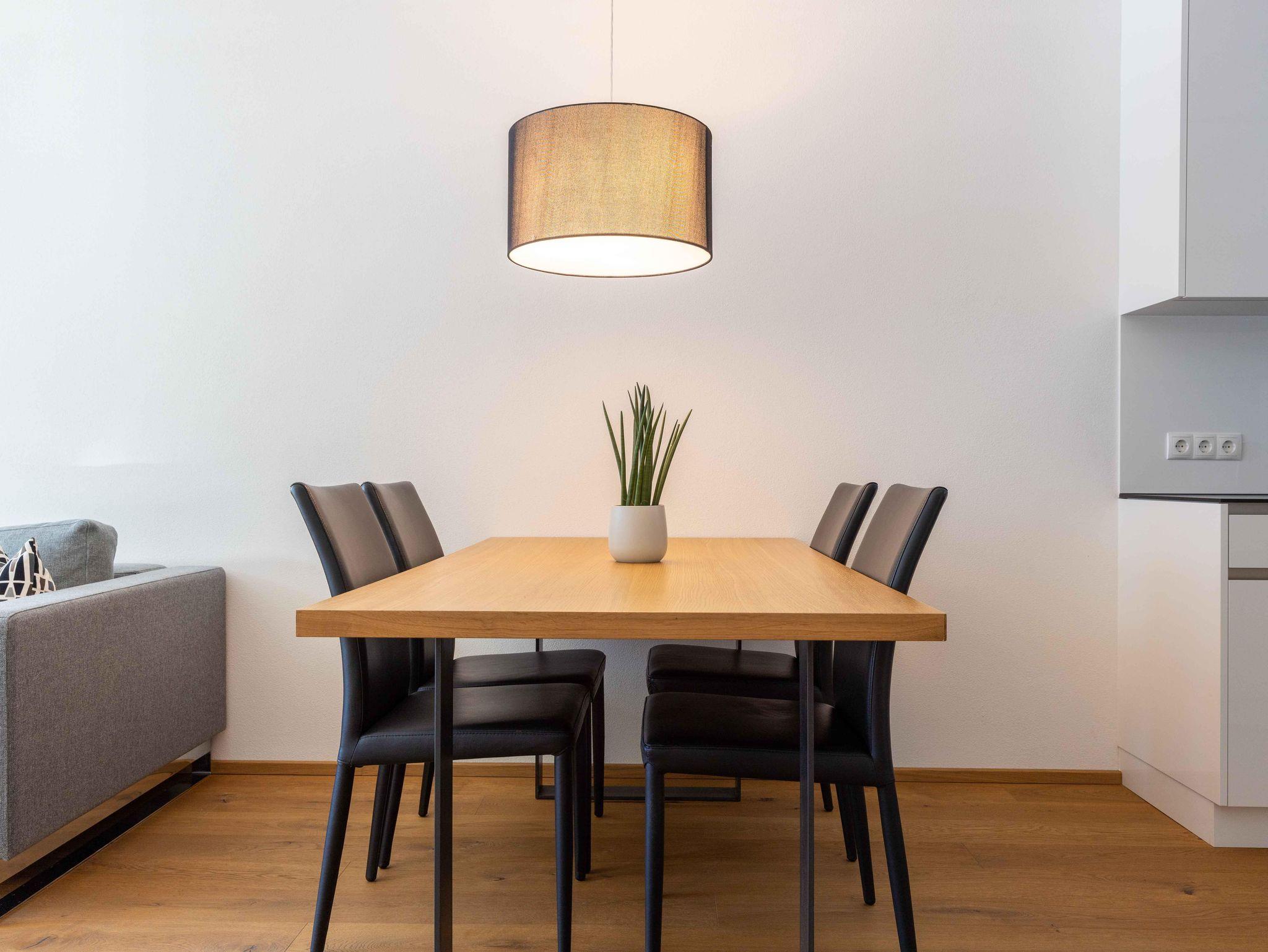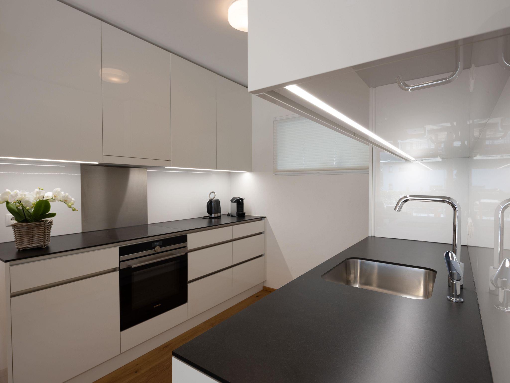 Helle Wohnküche mit bequemer Schlafcouch, 1 Schlafzimmer für 2-4Personen, Bad mit Badewanne und Dusche, WC, großzügiger Balkon.
