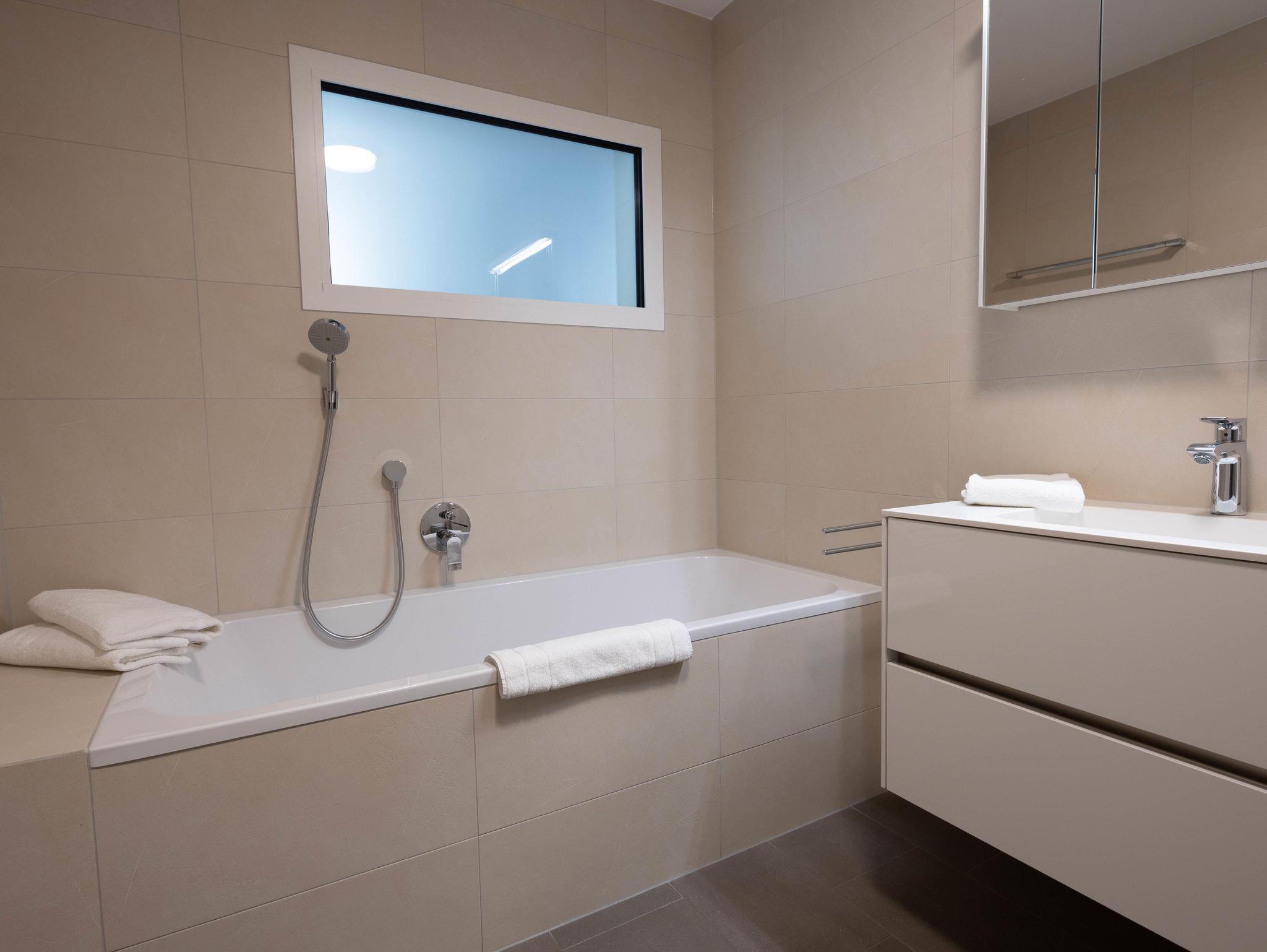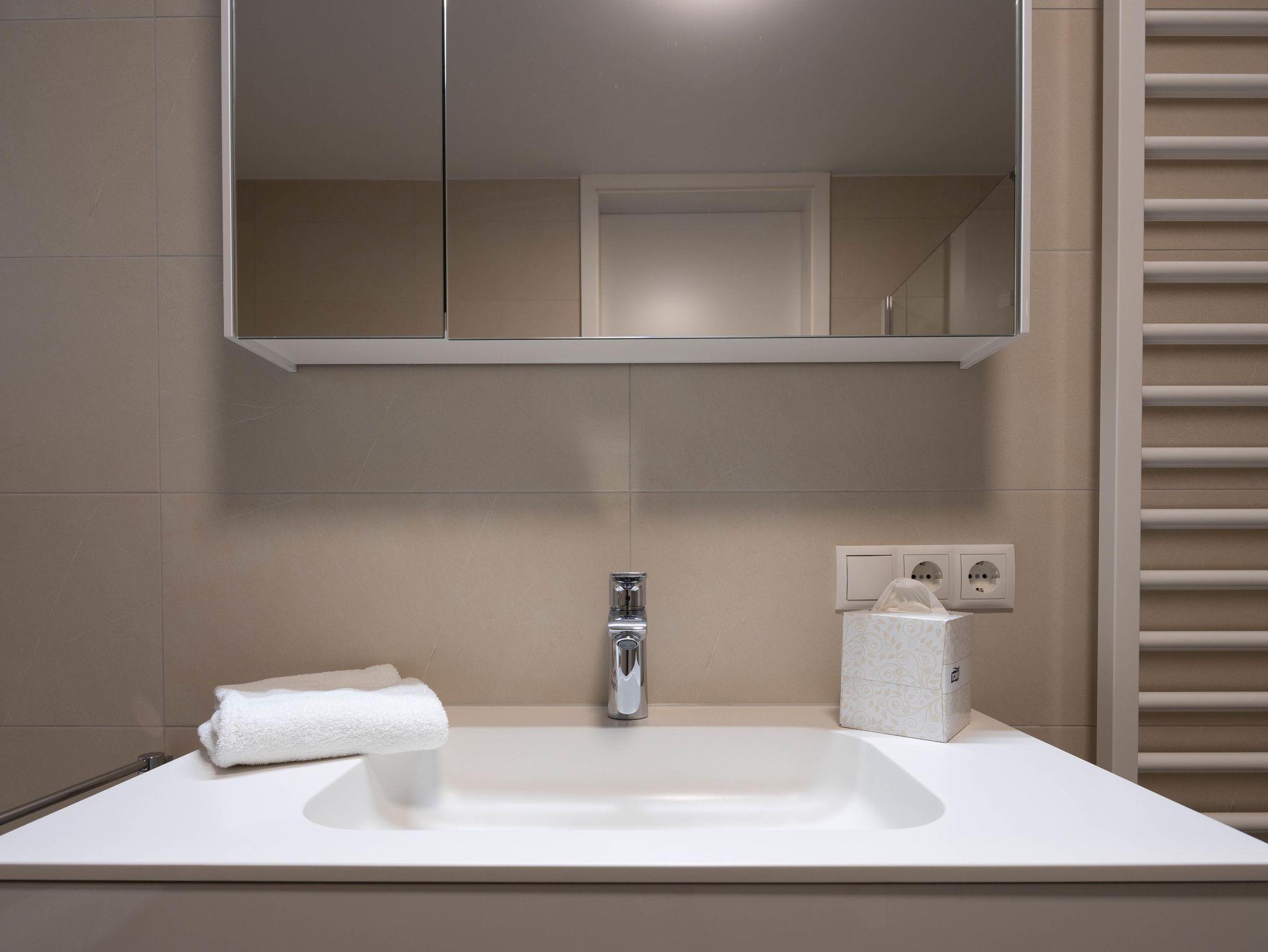Krone Apartments Schruns, Top 6/7/8, TOP 7+8, Dusche und Bad, WC, 1 Schlafraum, 54m²
