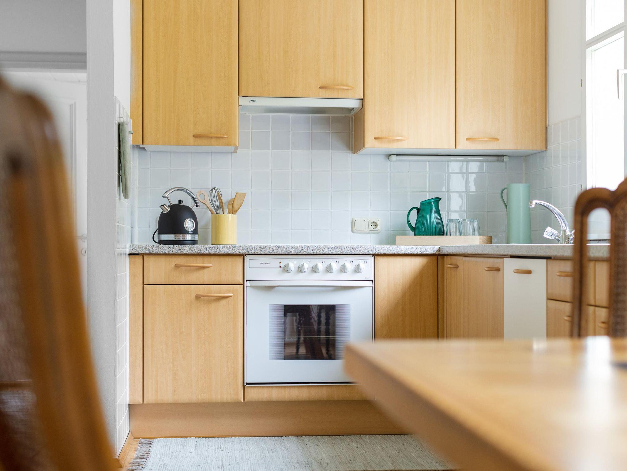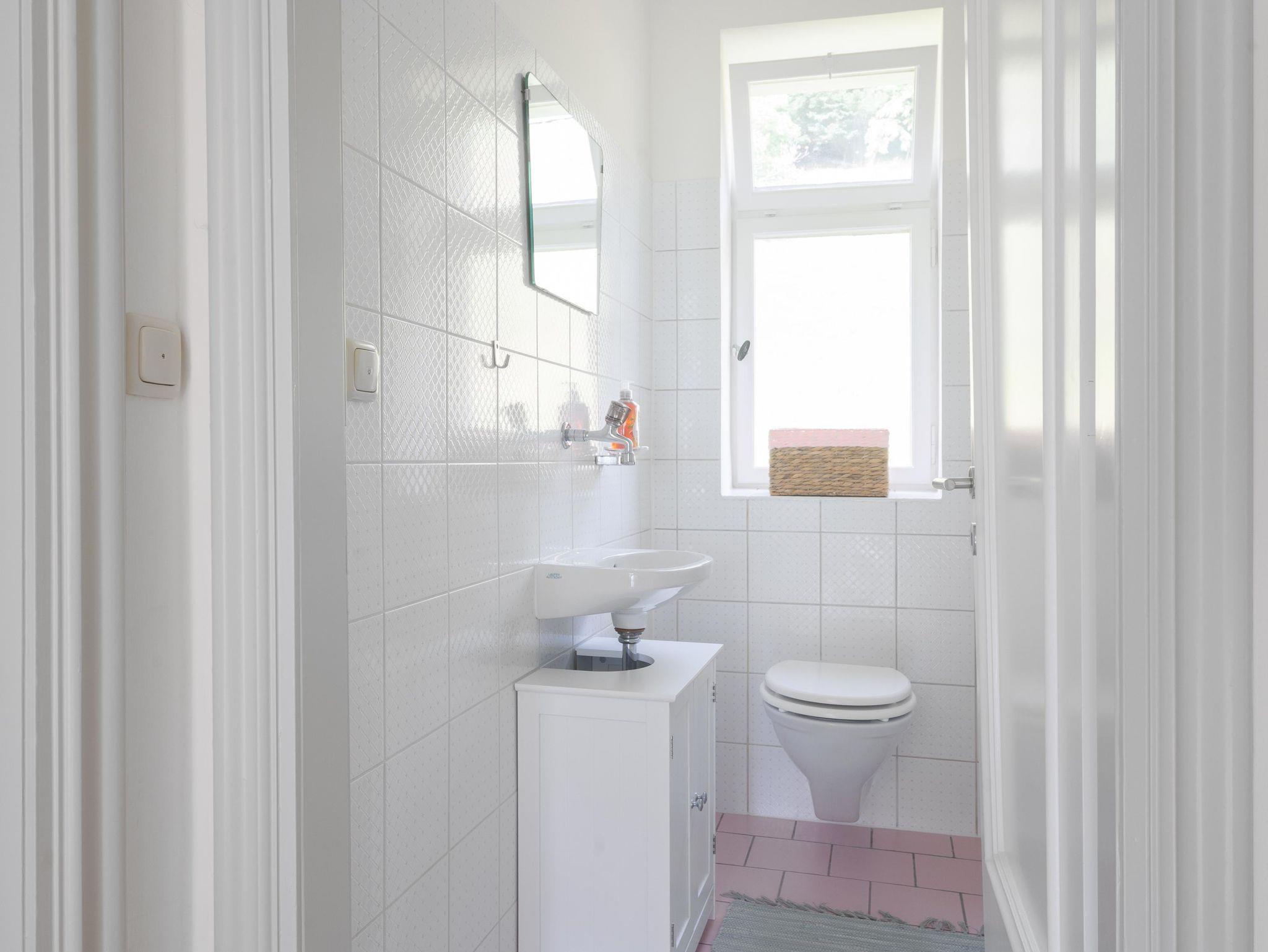 Ferienwohnung in 1. OG mit 117 m² Wohnfläche plus 30 m² Terrasse. 2 Doppelbetten plus 1 Schlafsofa. Küche mit Ceranherd, Backrohr, Kühlschrank, Kapsel-Kaffeemaschine, Kaffeekocher für gem. Kaffee, Wasserkocher, Toaster, Geschirr, Gläser usw. komplett ausgestattet. Geräumiges Bad mit Dusch-Badewanne, Waschtisch, Föhn, Waschtrockner und WC. Zusätzlich separates WC.