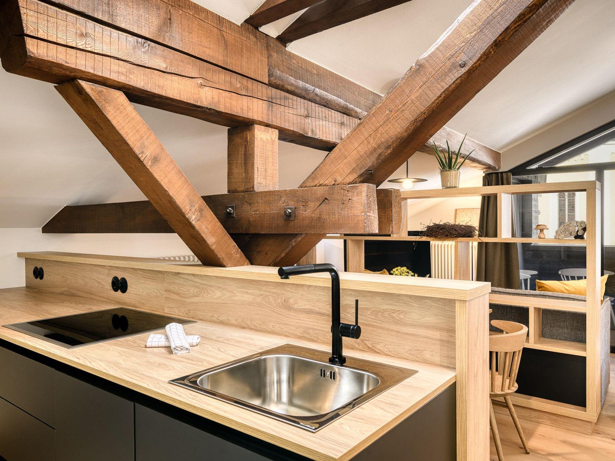 Im Dachgeschoss befindet sich die Suite für 2 Personen mit einer kleinen Küche und einem en Suite Badezimmer.