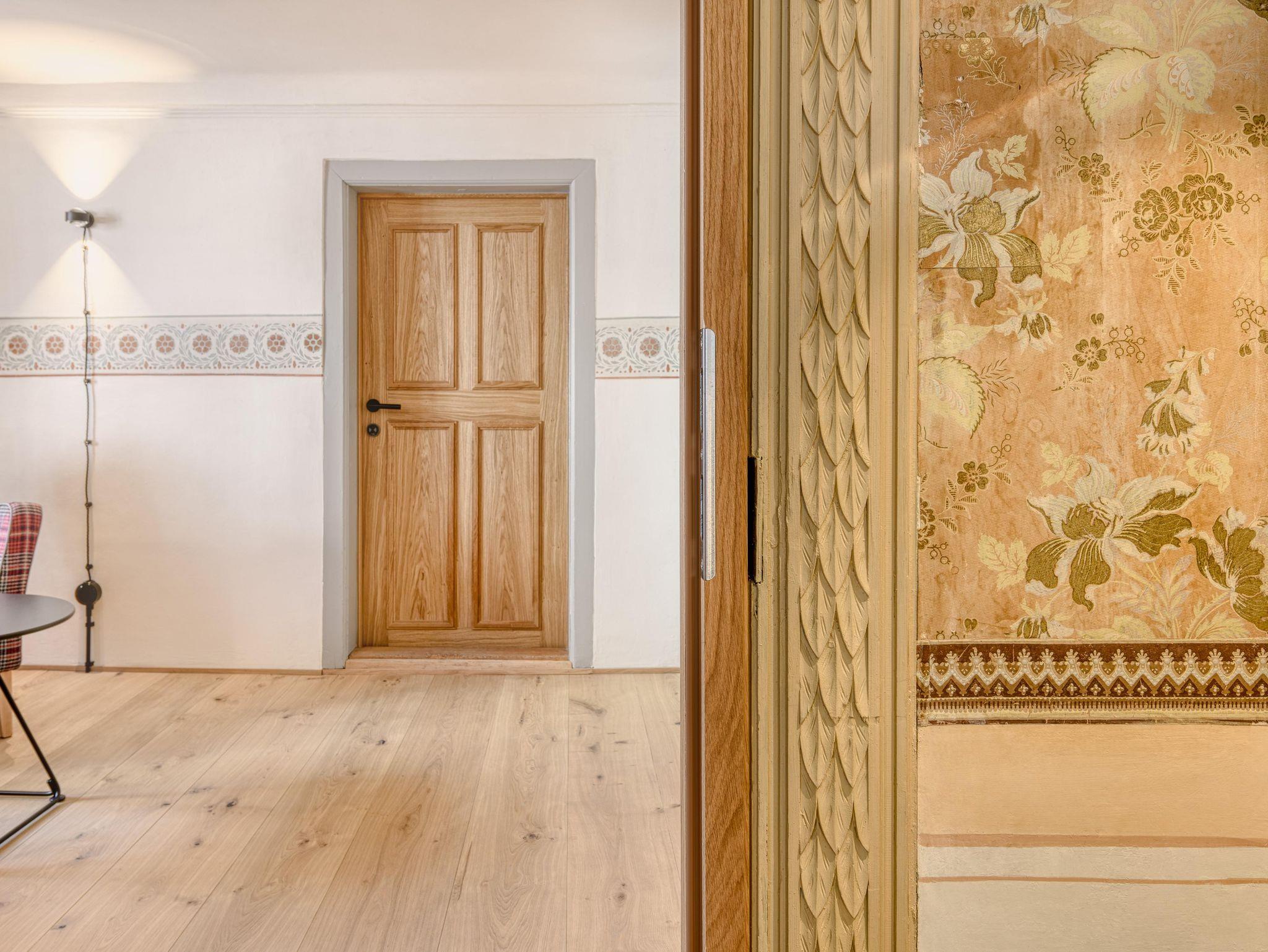 Das Haus wurde bewusst denkmalgeschützt renoviert und es wurde auf nachhaltige Materialien sehr viel Wert gelegt. Einige historische Highlights gibt es zu entdecken, so wurden beispielsweise handgemalten Tapeten erhalten und modern in Szene gesetzt. Trotzdem ist die Aufteilung wohl durchdacht und bietet im Erdgeschoss Gemeinschaftsräume mit einer Bar, voll ausgestatteten Küche und einem Essbereich.