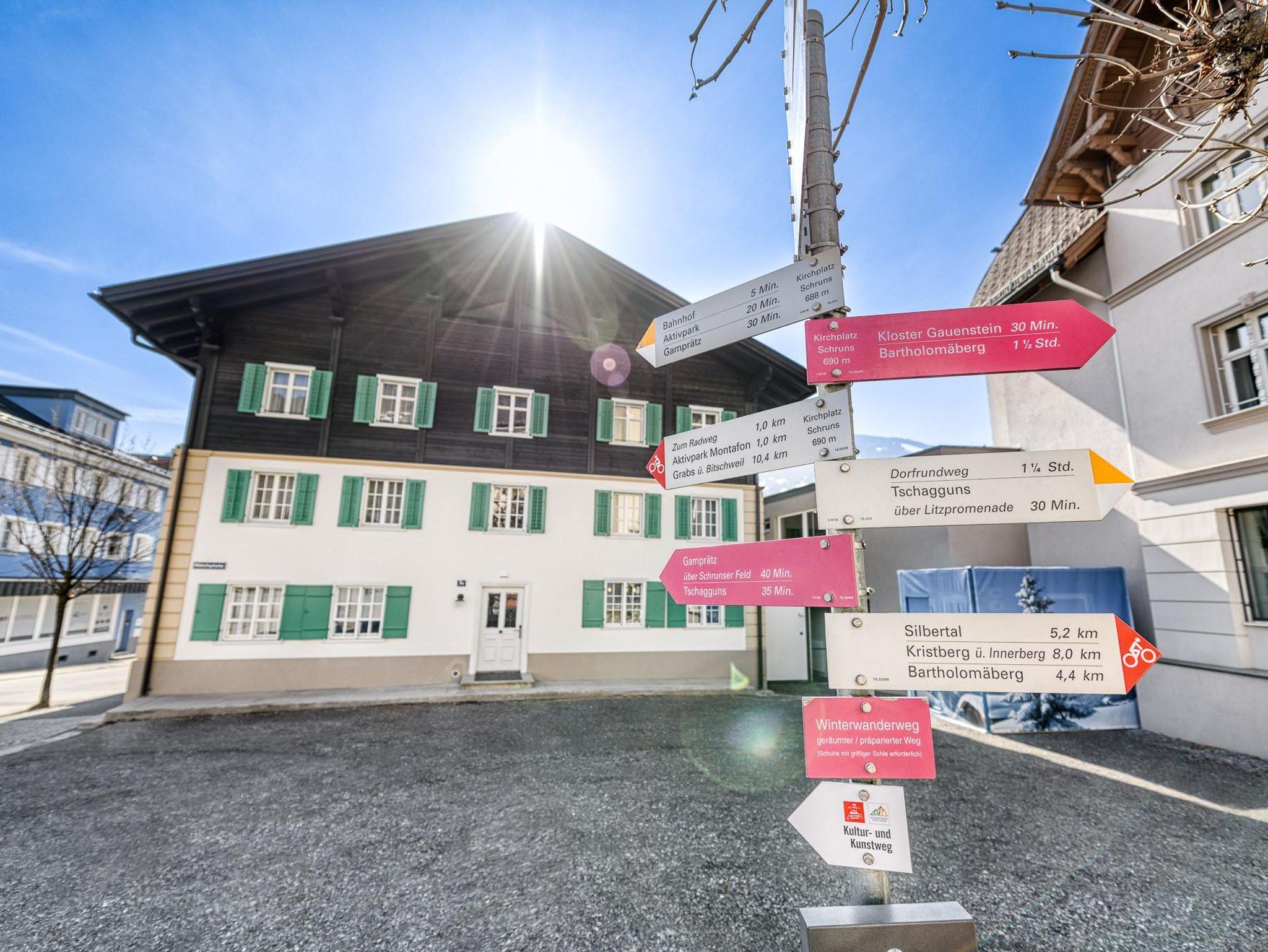 Die Lage direkt am Eingang der Fußgängerzone in Schruns ist perfekt für Wanderausflüge, Restaurantbesuche und kleine Einkaufstouren. Der Hochjochlift welcher Sommer und Winter geöffnet hat ist in wenigen Gehminuten erreichbar.