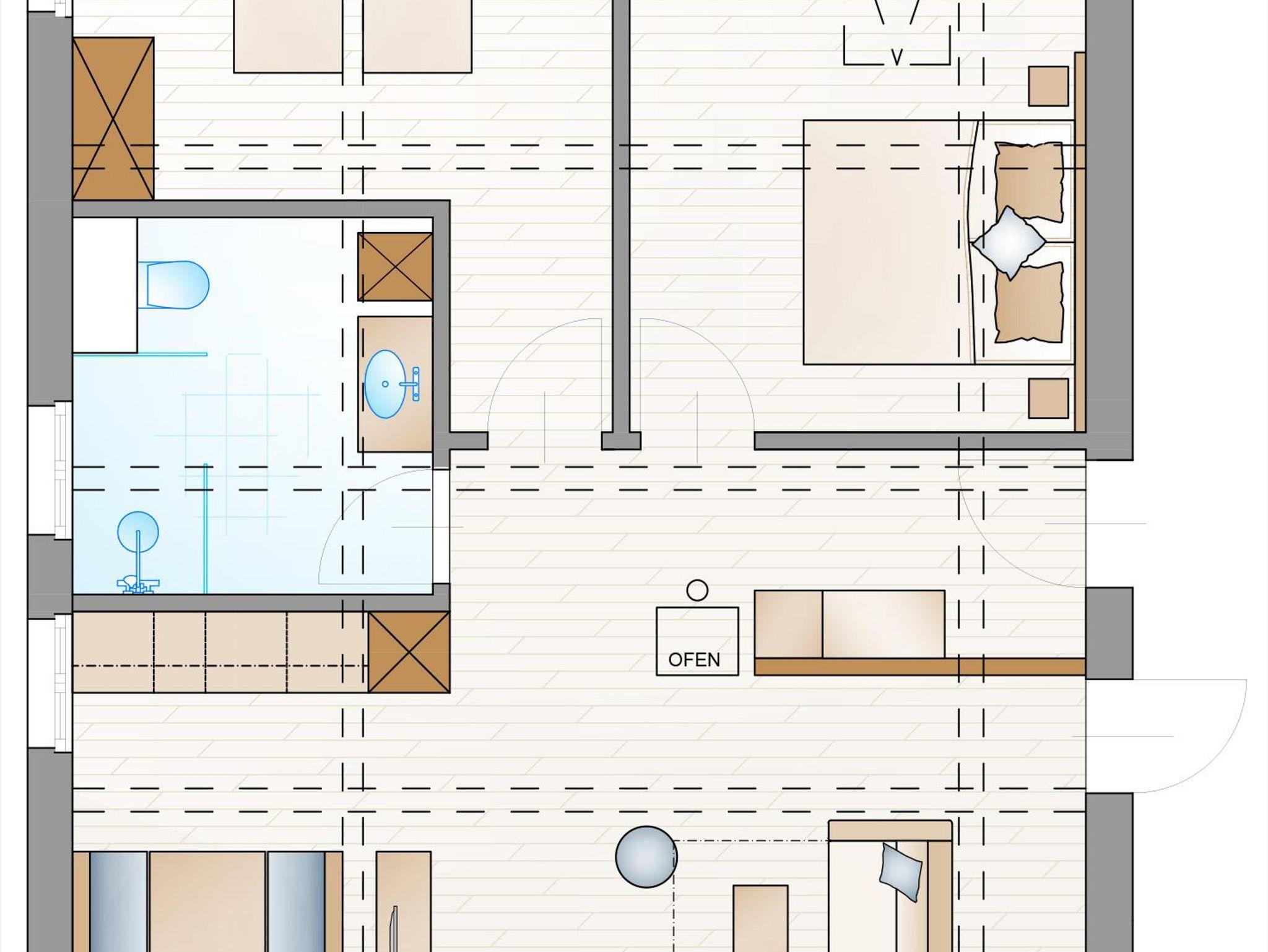 - 1 Wohnzimmer mit Doppelcouch (ausziehbar)