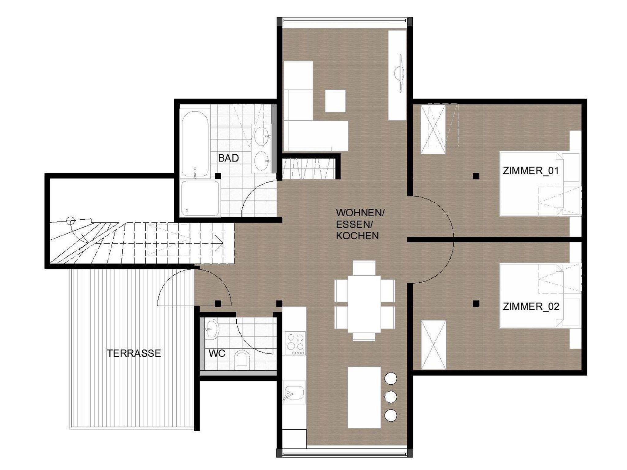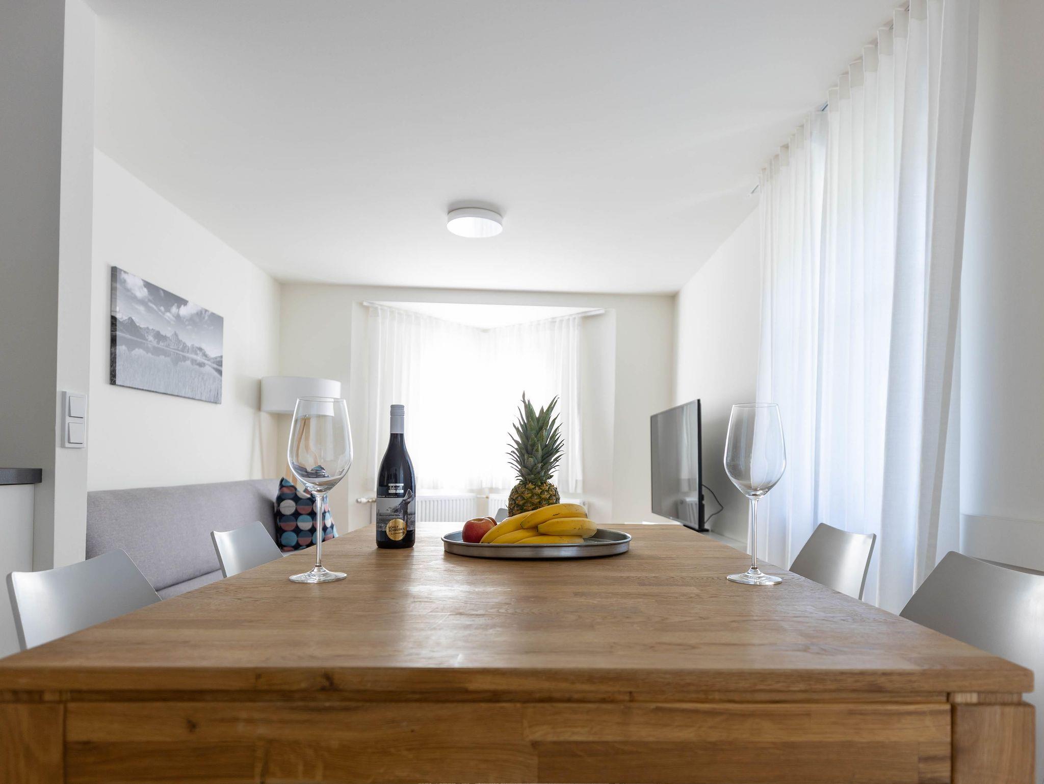 Fünf neue, moderne Appartments mit jeweils zwei getrennten Schlafzimmern, Wohnküche, Bad mit Dusche/WC und WC extra.