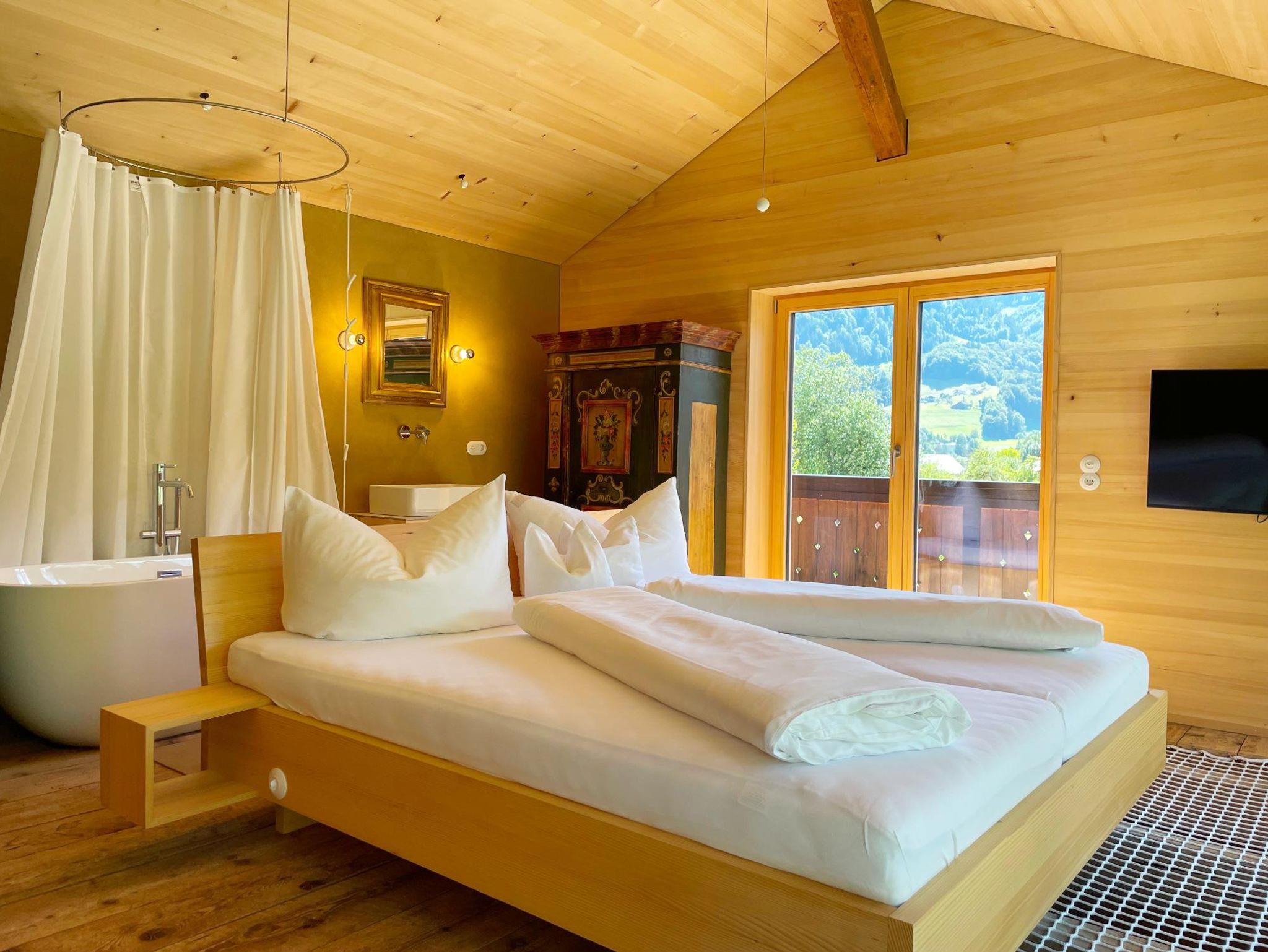 Eine heimeliges Chalet mit lichtdurchfluteten Räumen und freistehender Badewanne, Lehmboden und -wand & Original-Holzboden. Genießen Sie aus dem schwebenden Bett den Blick durch die Panoramascheiben in den Blumengarten. Terrasse mit großem Grill. Tischler-Holzküche mit Edelstahlarbeitsplatte & Weinkühler. Private Ladestation für E-Autos. Zentrale & ruhige Lage. Parkplatz & WLan kostenlos.