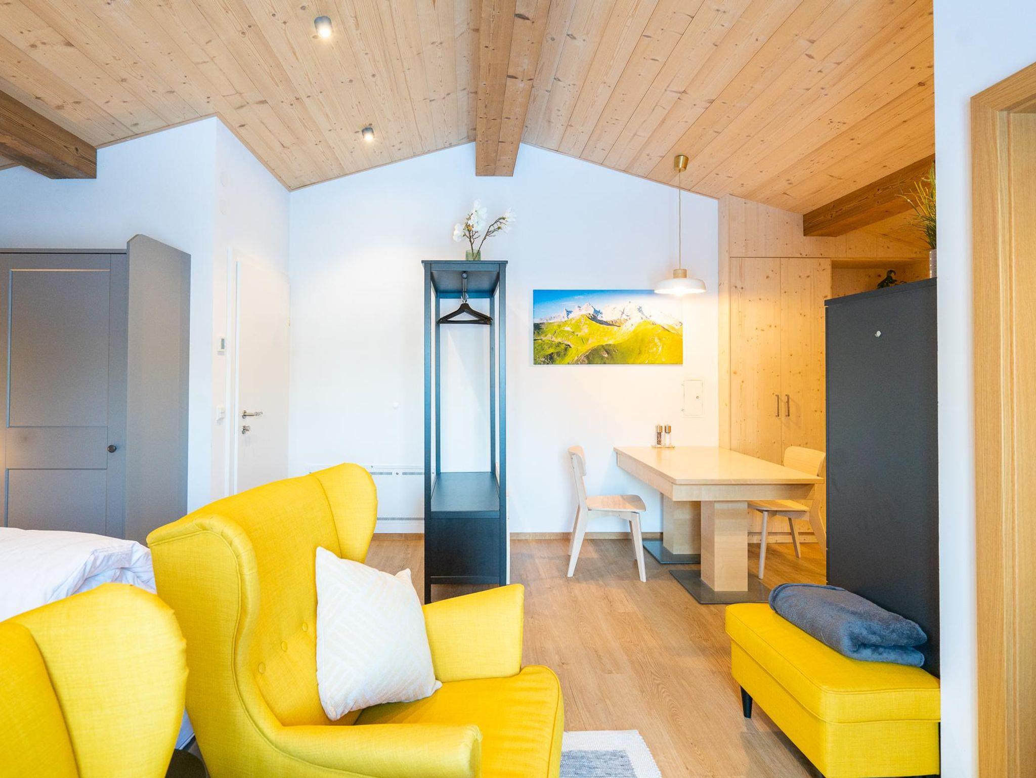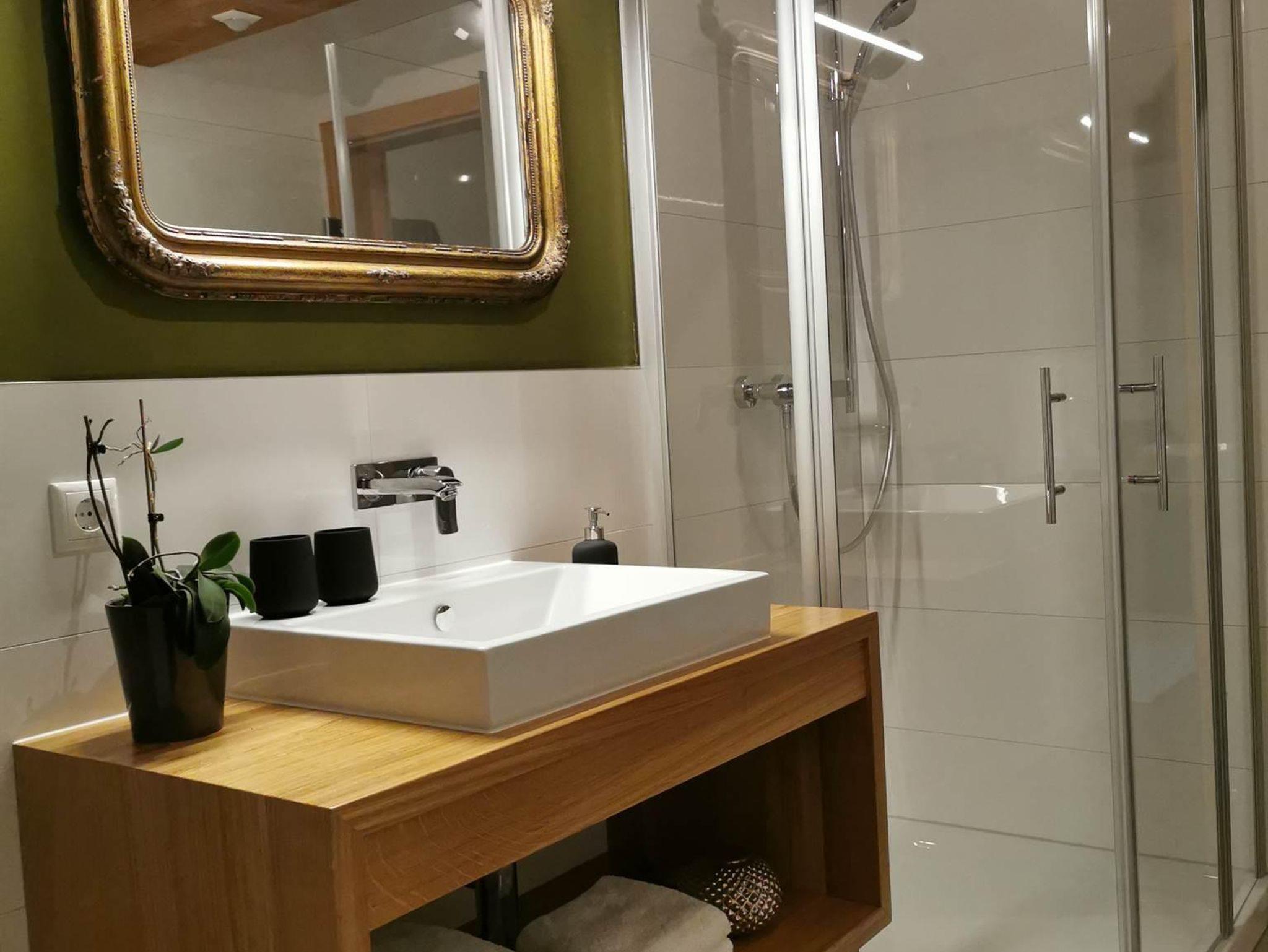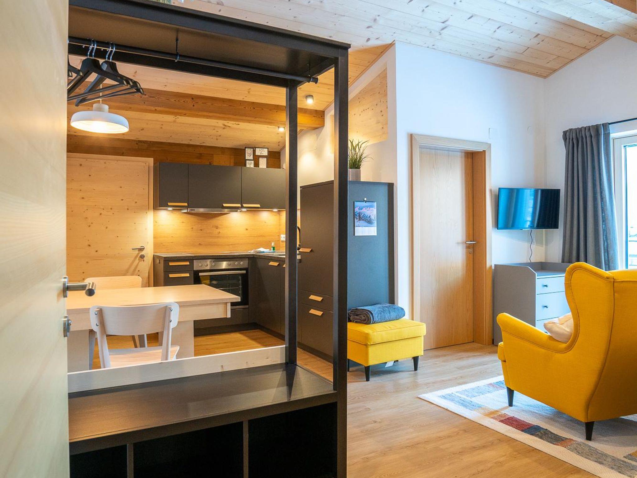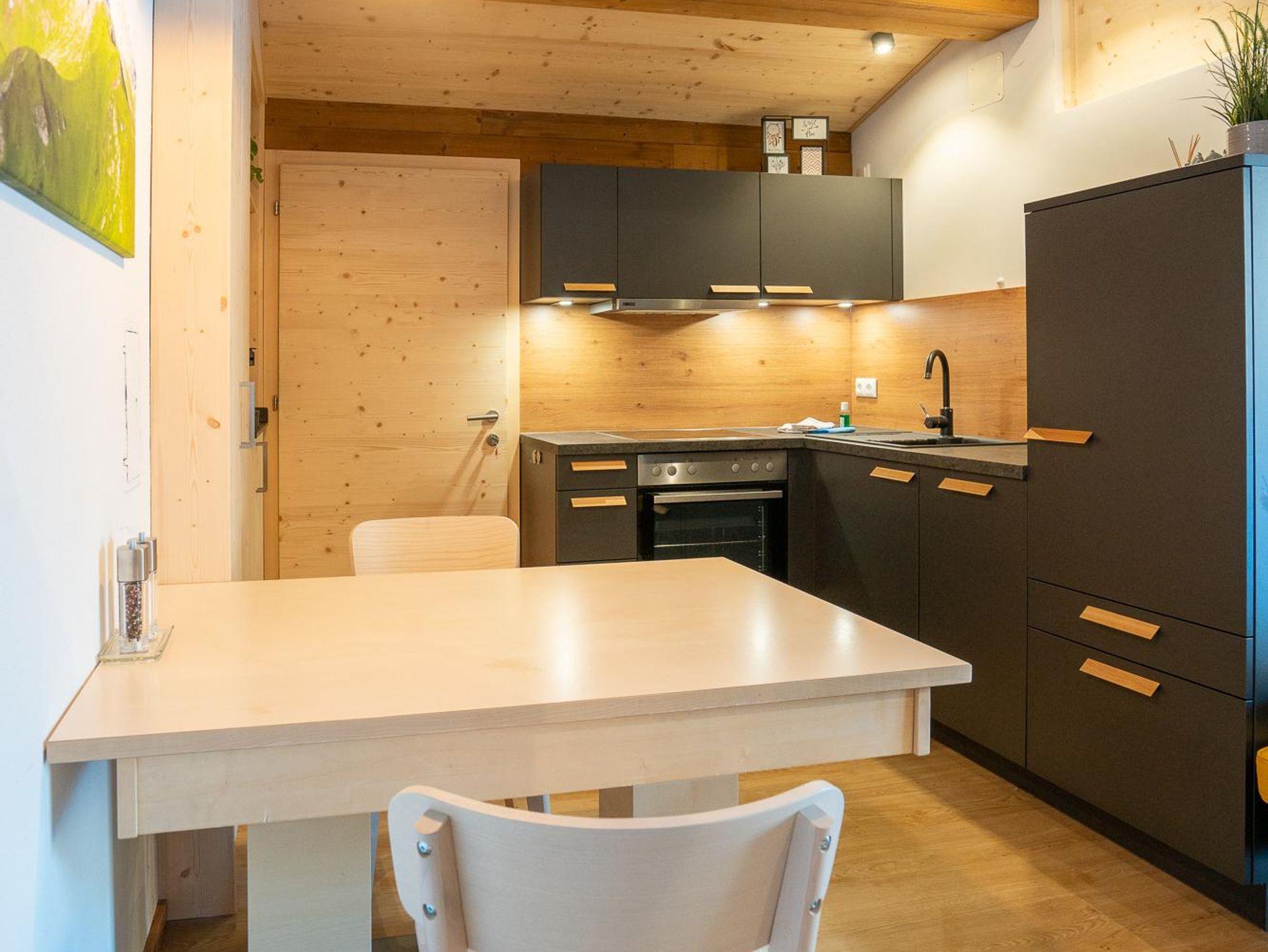 Die ca. 30qm neue Wohnung im DG des Hauses verfügt über einen Wohn-/Essbereich mit Küche und integriertem Schlafbereich. Separates Bad mit DU und WC. Kinderstuhl, TV, WLAN & Skikeller, Bettwäsche & Handtücher sind vorhanden. Die Küche ist mit einem E-Herd/Backofen, Geschirrspüler, Kühlschrank mit Tiefkühlfach, Toaster, Wasserkocher, Mixer, Pads-Kaffeemaschine & Filter-Kaffeemaschine ausgestattet.