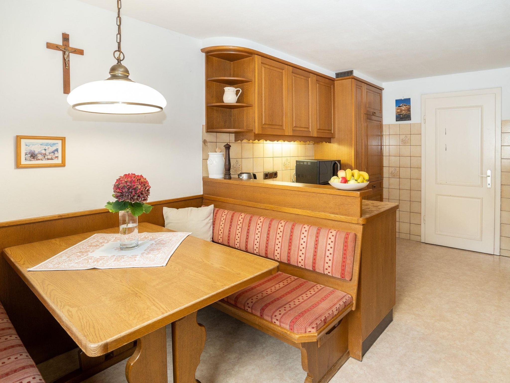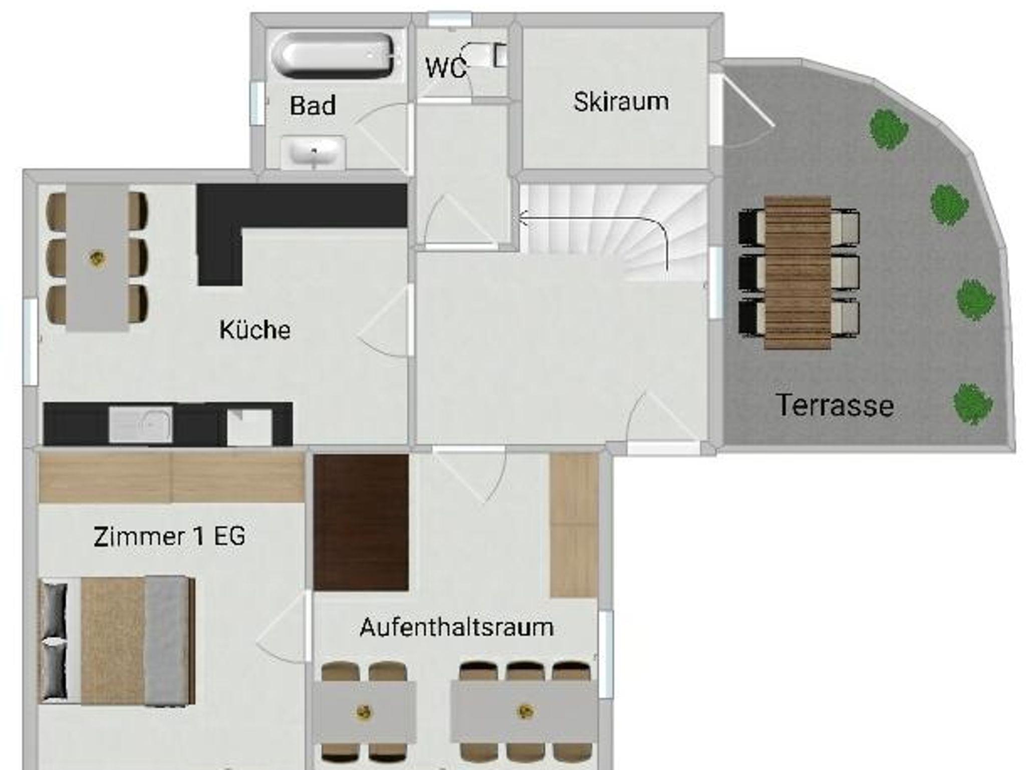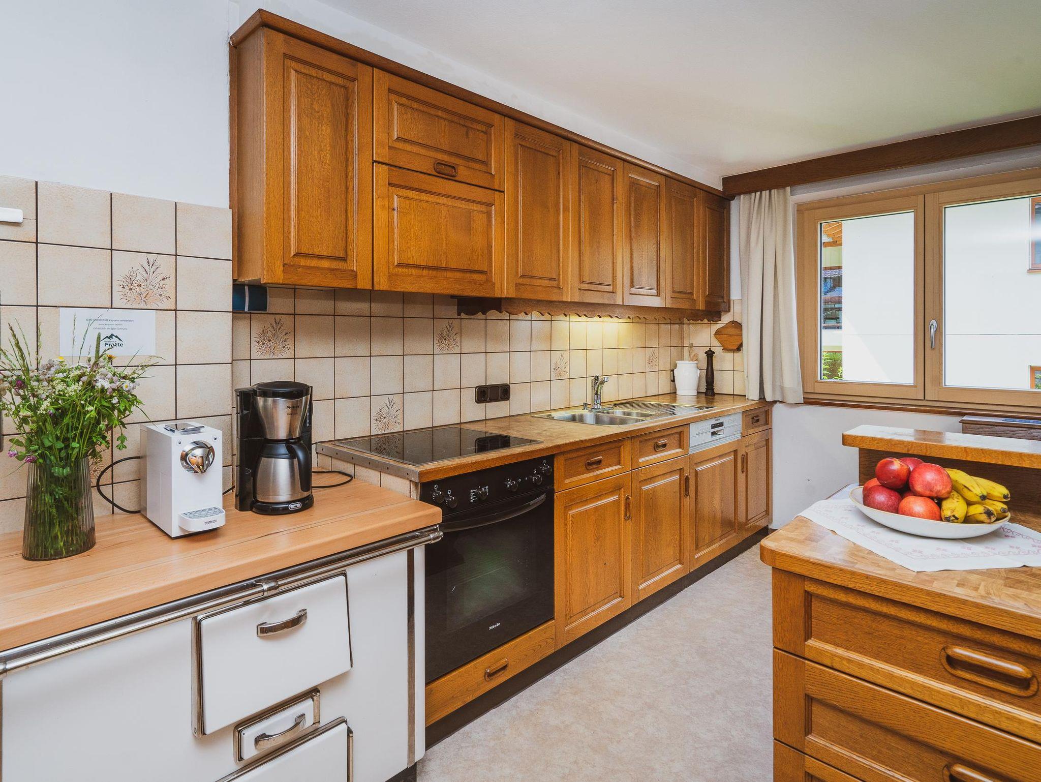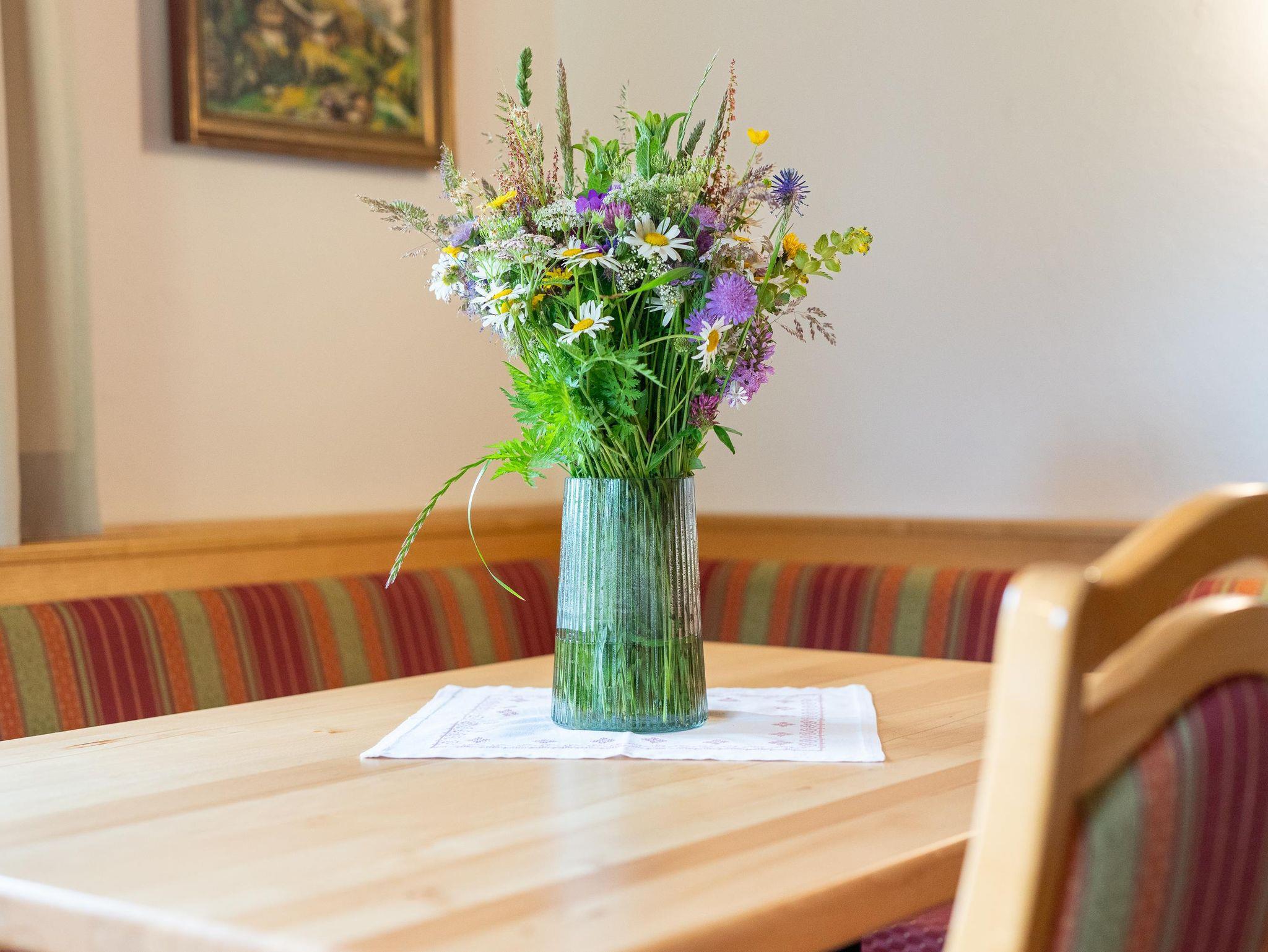 4 DZ, 2 EZ, 2 Badezimmer mit Dusche und WC, 1 Badezimmer mit Badewanne, 1 separates WC, Aufenthaltsraum, voll ausgestattete Küche (Kühlschrank, Herd m. Backrohr, Spülmaschine, Kaffeemaschine, Toaster, Wasserkocher, Mikrowelle), Haarföhn vorhanden