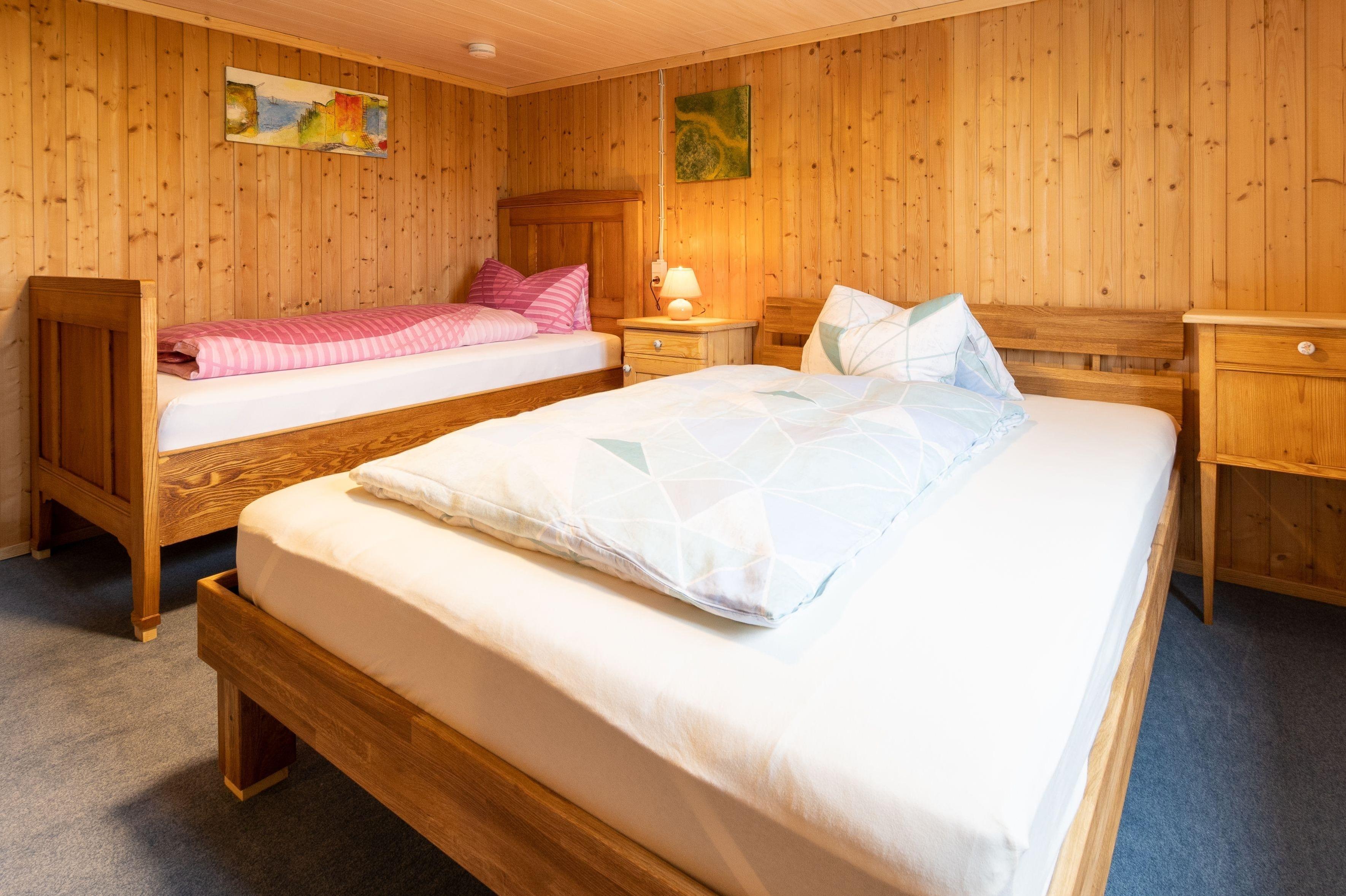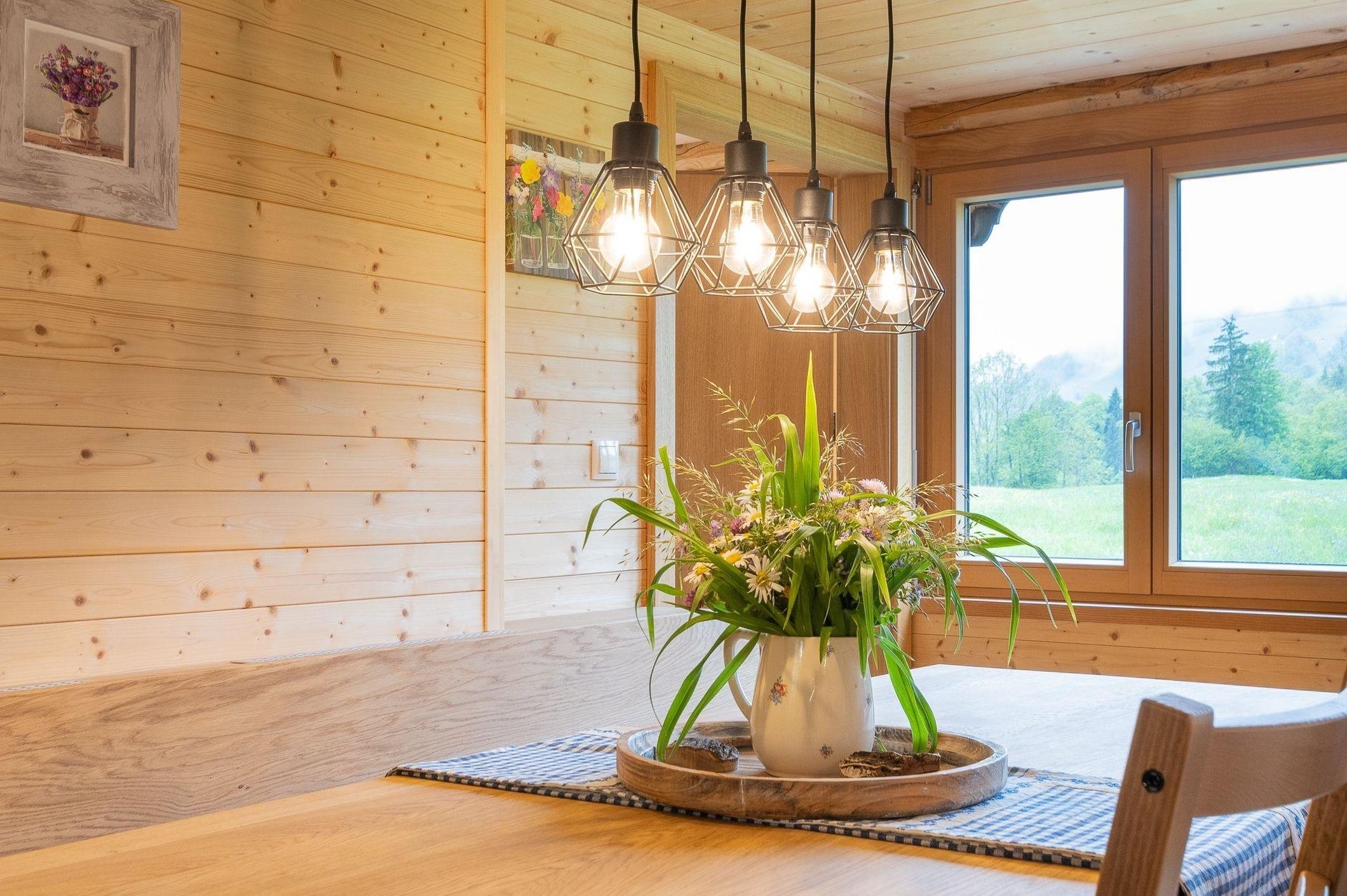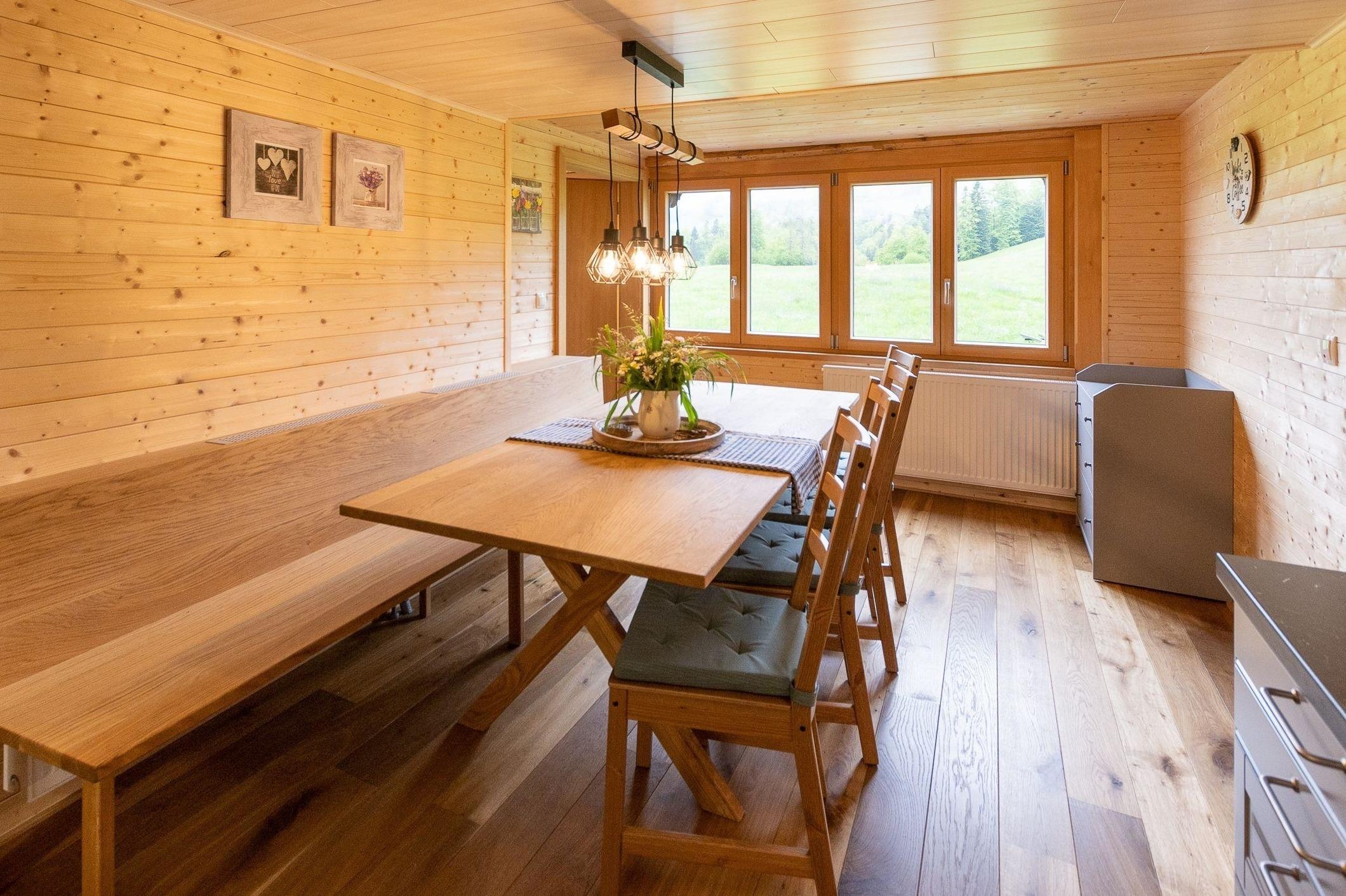 Neue, helle, freundliche Wohnung mit Küche, Wohnzimmer (alte Wälderstube mit Kachelofen), 4 Schlafzimmer, 1 Badezimmer sowie einem traumhaften Schopf (Wintergarten).