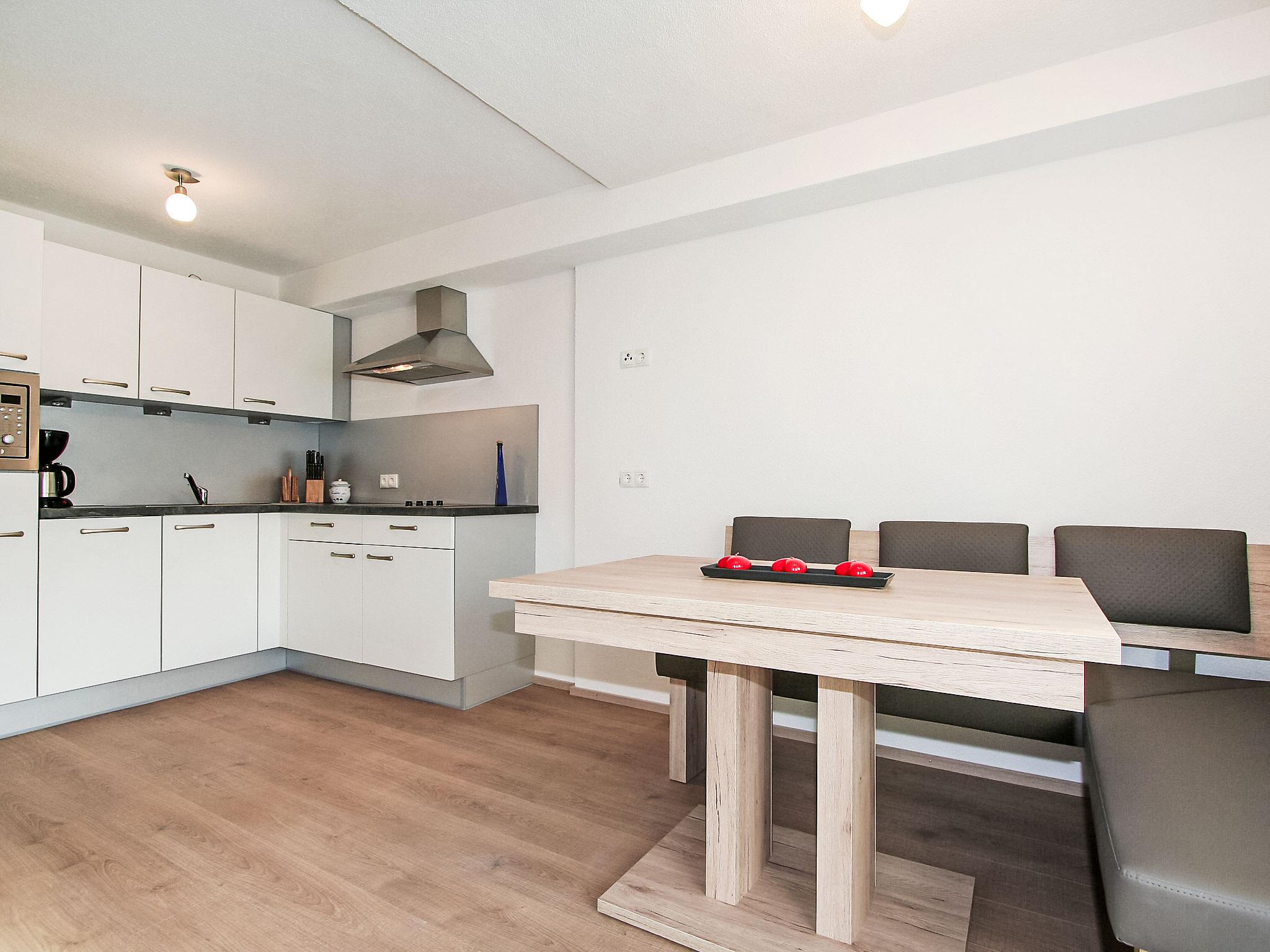 4-room apartment 80 m2 on 2nd floor. Modern and cosy furnishings: entrance hall. 3 double bedrooms. Exit to the balcony. Kitchen-/living room (dishwasher, 4 ceramic glass hob hotplates, microwave) with satellite TV (flat screen). 2 showers/WC. Large balcony. View of the mountains and the resort. Facilities: Internet (WiFi, extra). Please note: non-smokers only. Maximum 1 pet/ dog allowed. Smoke alarm.