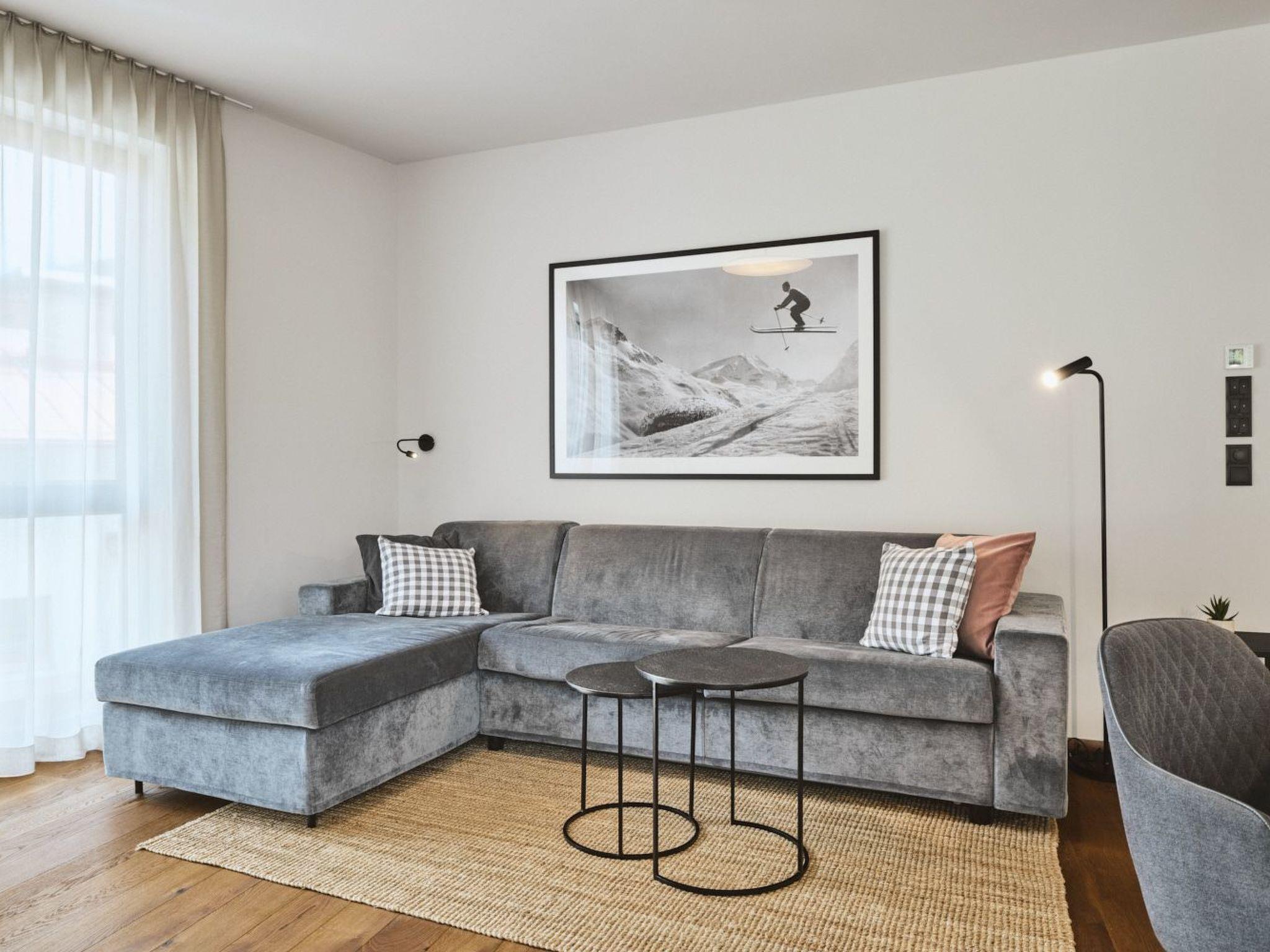 The modern, light-flooded 64m2 flat with a large balcony invites you to linger and relax in both the cold and warm seasons. High-quality materials were used in the furnishings and emphasis was placed on a timeless, stylish Scandinavian design with Alpine chic elements.