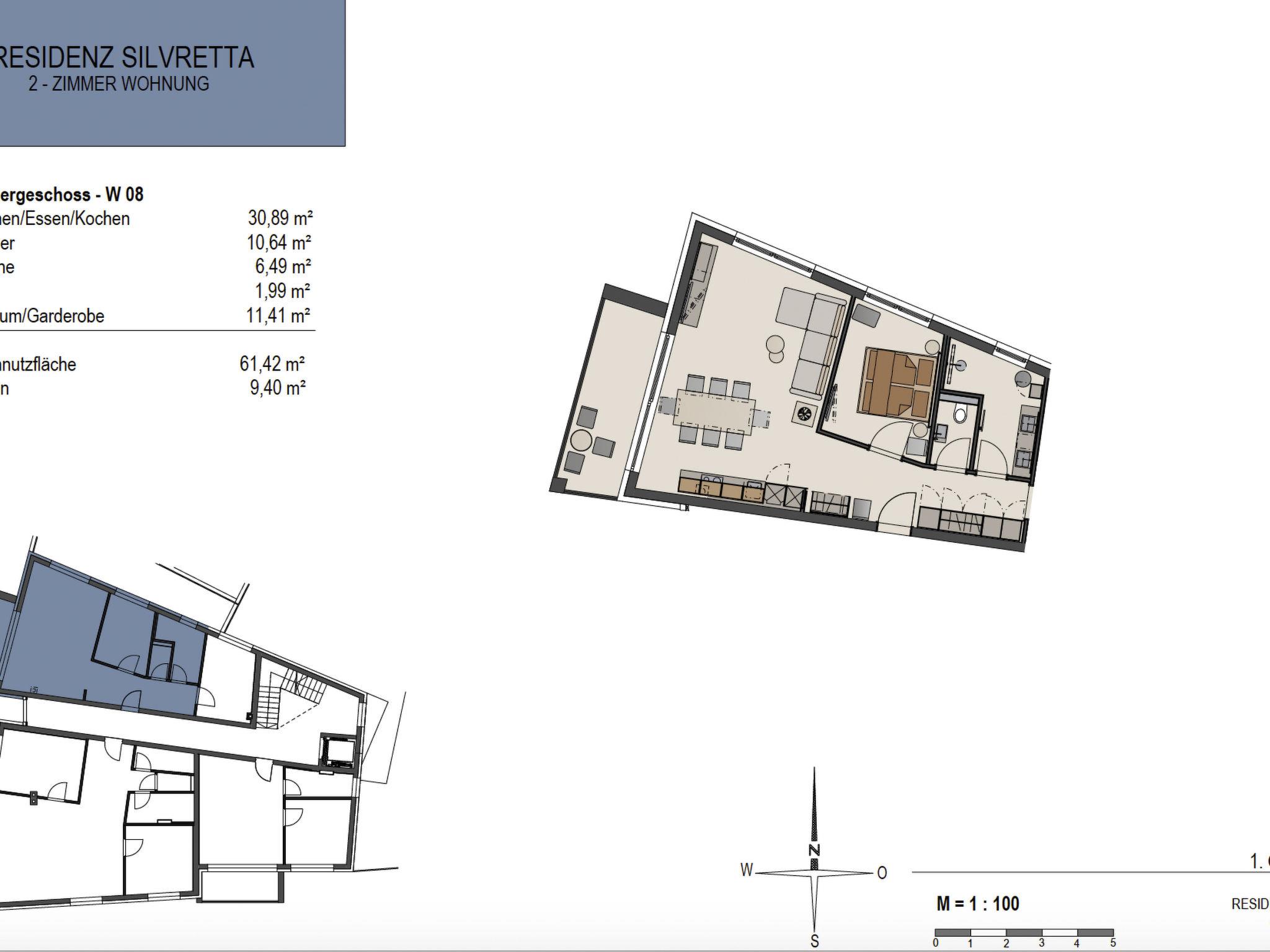 The spacious living and dining area with open-plan kitchen forms the centre of the flat. A double bedroom with box-spring bed with Swiss stone pine back panel (ensures a lower heart rate and longer recovery phase during sleep), a large bathroom with rain shower and double washbasin, a separate WC and a fully-fledged sofa bed (slatted frame and spring mattress) offer comfortable space for 2 - 4 people (couples, families, friends). The flat has a large wardrobe area and ample storage space in the built-in cupboards.