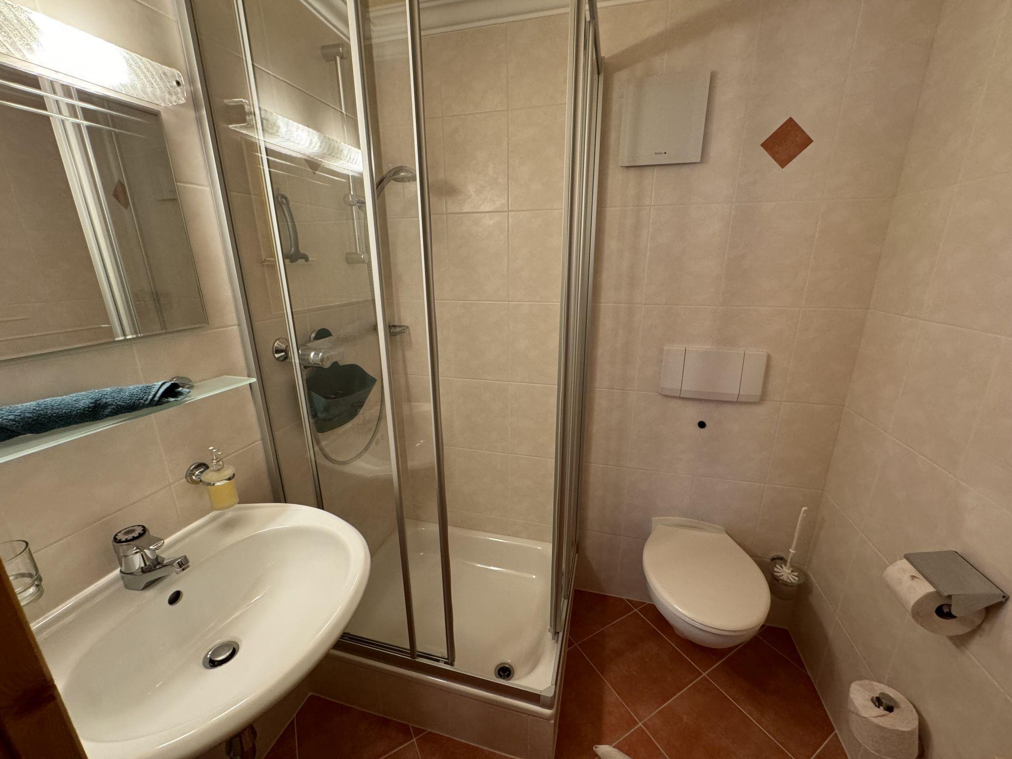 3-room apartment 75 m2 on 2nd floor. Beautiful and cosy furnishings: small living room with satellite TV. 1 double bedroom with shower/WC. 1 room with 1 bed, 1 double bed and shower/WC. Open kitchen (oven, dishwasher, 4 ceramic glass hob hotplates, toaster, kettle, microwave, freezer) with dining nook. Panoramic view of the mountains. Facilities: hair dryer. Internet (WiFi, free). Please note: smoke alarm.