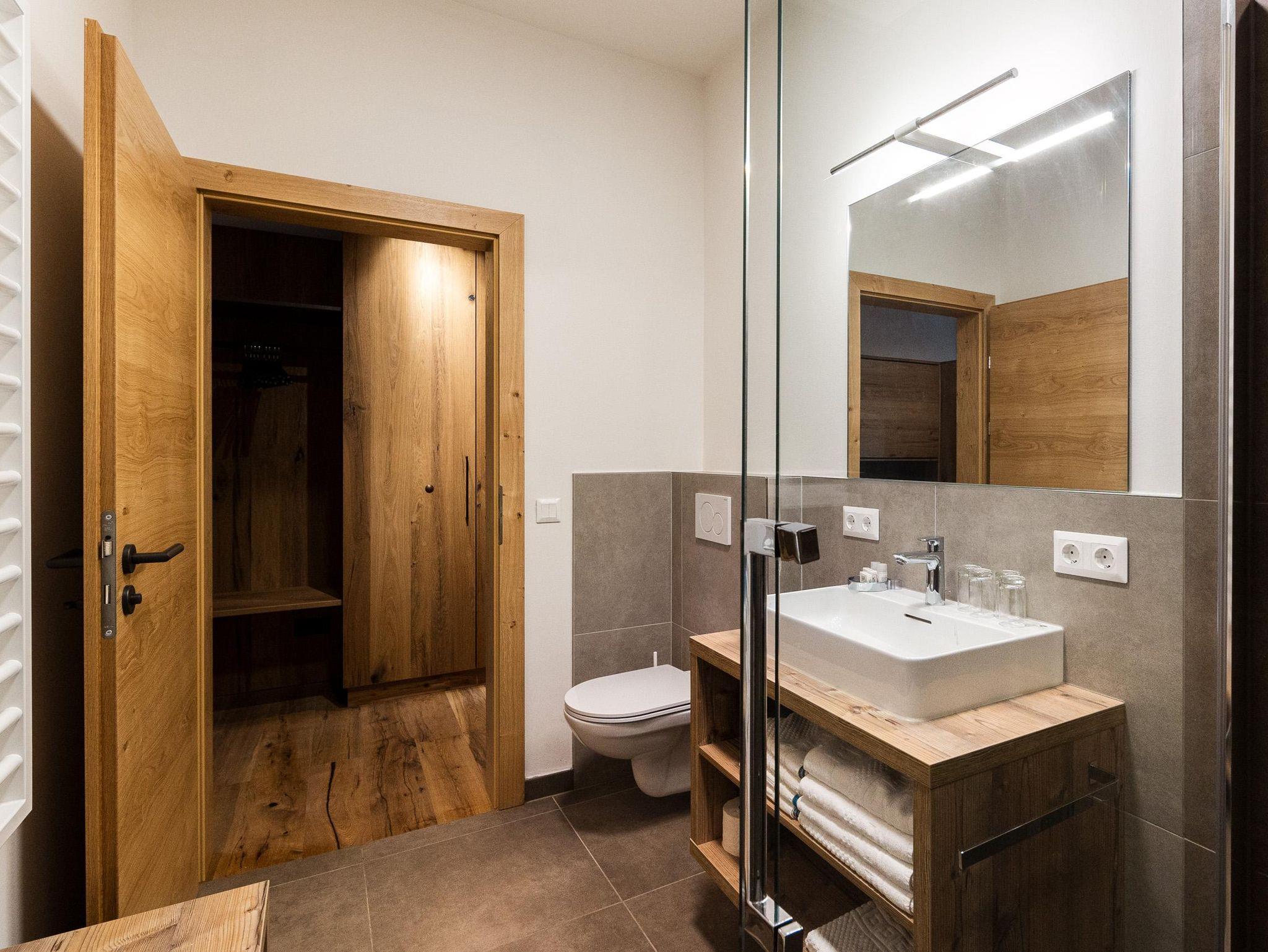 Zur Ausstattung gehören neben Doppelbett, Stockbett, Schreibtisch, Couch, Sat-TV, W-Lan auch ein modernes und großzügiges Badezimmer mit Dusche, Waschtisch, Haartrockner und WC.