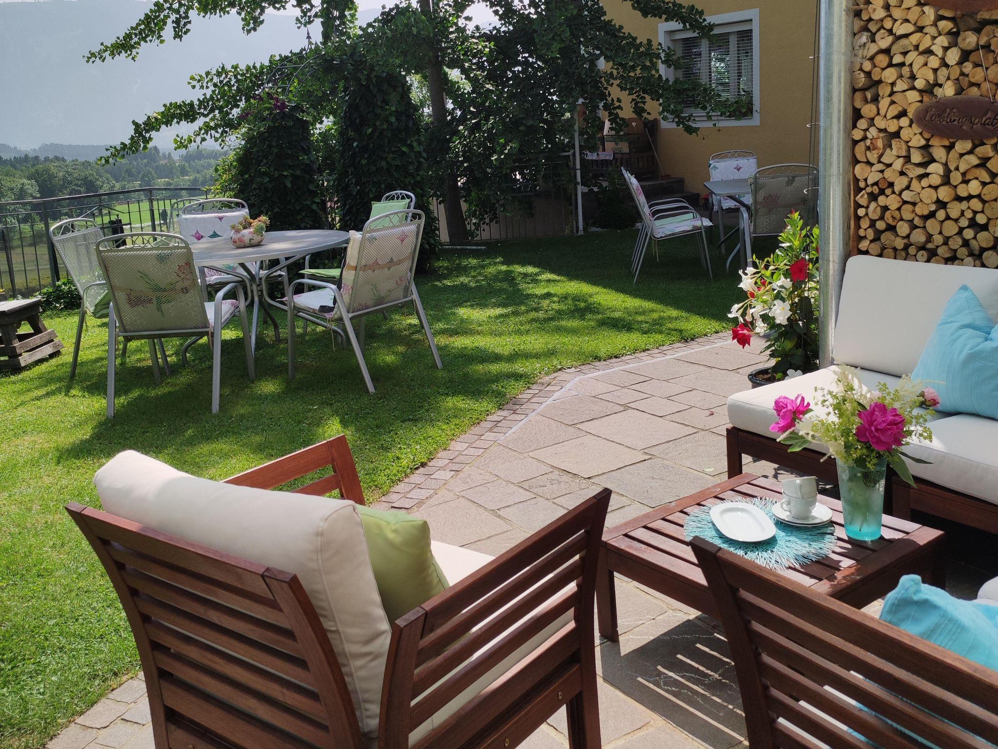 Auf der großen Terrasse befinden sich unser Lieblingsplatzl, das mobile Kräuterwagerl, die Millstätter See Liege und unser Grillkamin. Wenns schnell gehen soll können wir auf unseren großen Gasgriller ausweichen. Im Garten können Sie im Pavillon unter dem großen Kastanienbaum oder auf den Liegen entspannen und die Ruhe genießen.