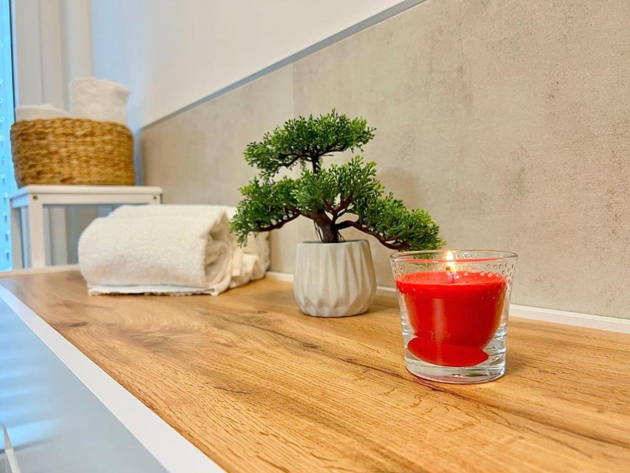 Ein Highlight unseres Apartments ist die voll ausgestattete Küche mit Nespresso Maschine, Kühlschrank, Backofen, Mikrowelle etc. , in der Sie Ihre eigenen Mahlzeiten zubereiten können. WLAN ist inklusive, Smart-TV, Staubsauger und Waschmaschine ergänzen die Ausstattung damit Sie für längere Aufenthalte für alles gerüstet sind .