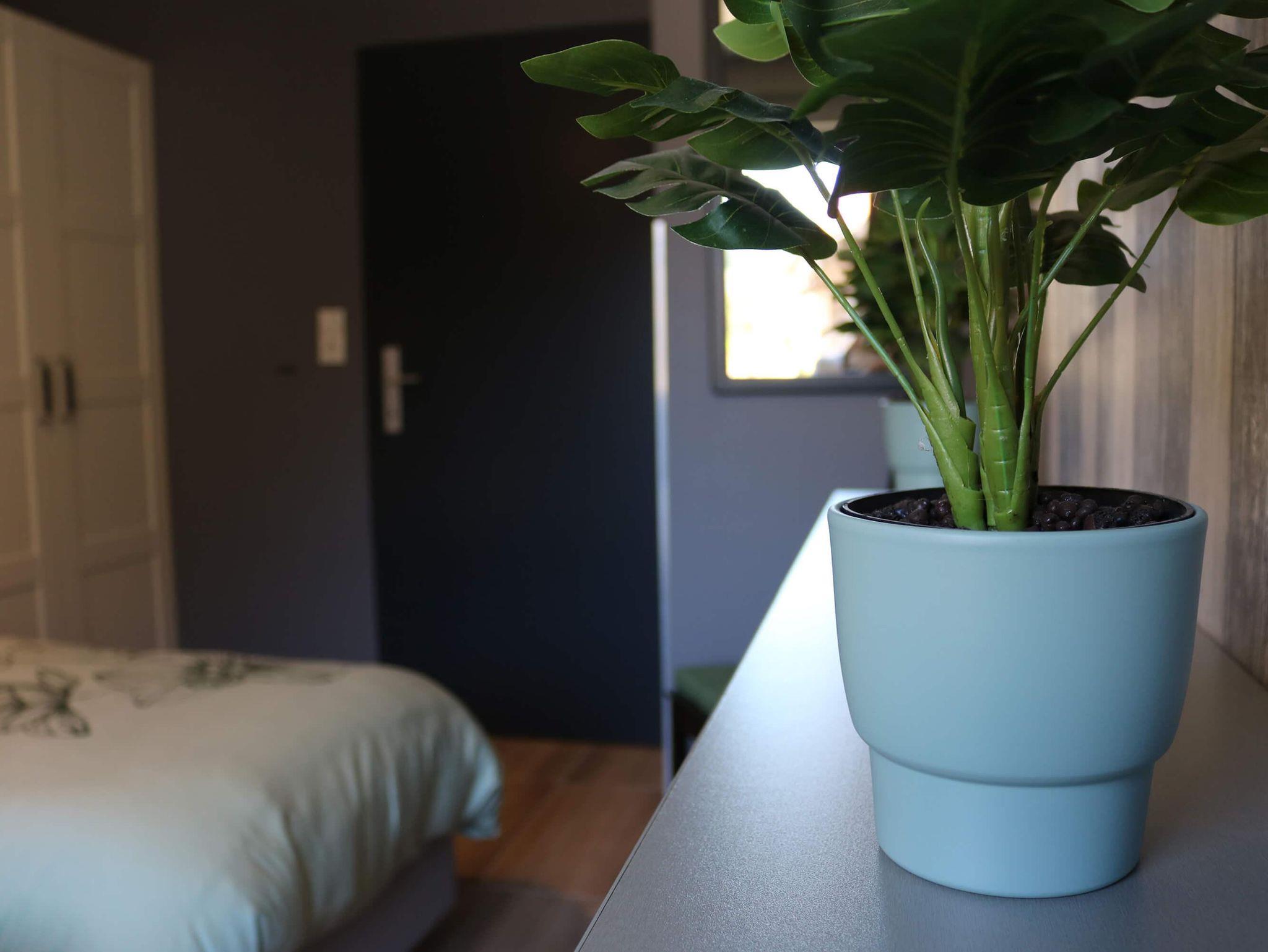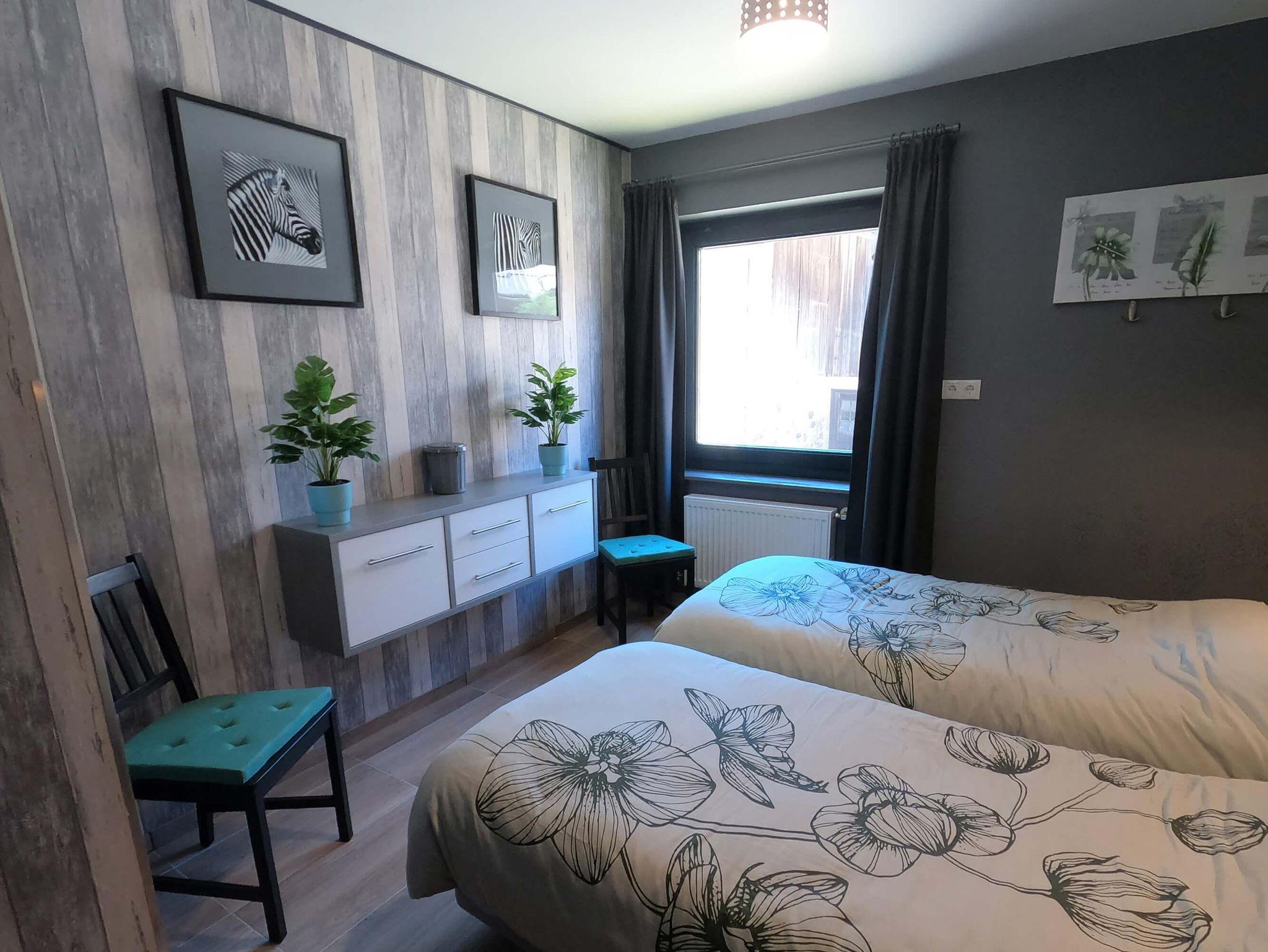 Wohnung bestehend aus: großer, geräumiger Halle mit Garderobe, großem Wohnzimmer mit offener (Wohn-)Küche. Die Küche ist ausgestattet mit: Glaskeramikkochfeld, Backofen, Mikrowelle, Geschirrspüler, Wasserkocher, Kaffeemaschine, Spüle mit fließendem kaltem und warmem Wasser, Besteck, Pfannen und allen anderen Küchengegenständen. 3 Schlafzimmer für maximal 5 Personen. 1 Schlafzimmer mit einem großen Doppelbett (180x200), 1 Schlafzimmer mit 2 Einzelbetten (90x200) und 1 Schlafzimmer mit 1 Einzelbett (90x200) für 1 Person/Kind. Badezimmer mit Walk-in Dusche, Waschbecken mit fließendem kaltem und warmem Wasser. Getrennte Toilette. Die freistehende Wohnung befindet sich im Erdgeschoss und ist über eine kleine Treppe mit 3 Stufen vom Straßenniveau aus zugänglich. Parkplätze stehen kostenlos zur Verfügung. Außerdem können Sie den großen Innenhofgarten mit Terrasse und Spielplatz in unserem angrenzenden Pensiongebäude nutzen.