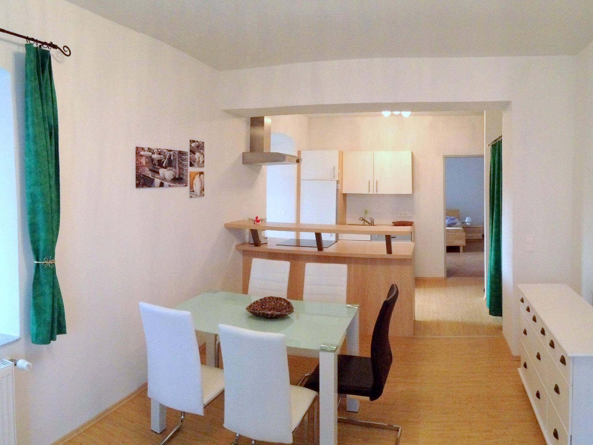 Die Ferienwohnung hat 58m2, 1 Schlafzimmer mit Doppelbett und einem Einzelbett. Gut ausgestattete Wohnküche mit Geschierspühler, Sofa, Flat-TV, gratis Internet.
