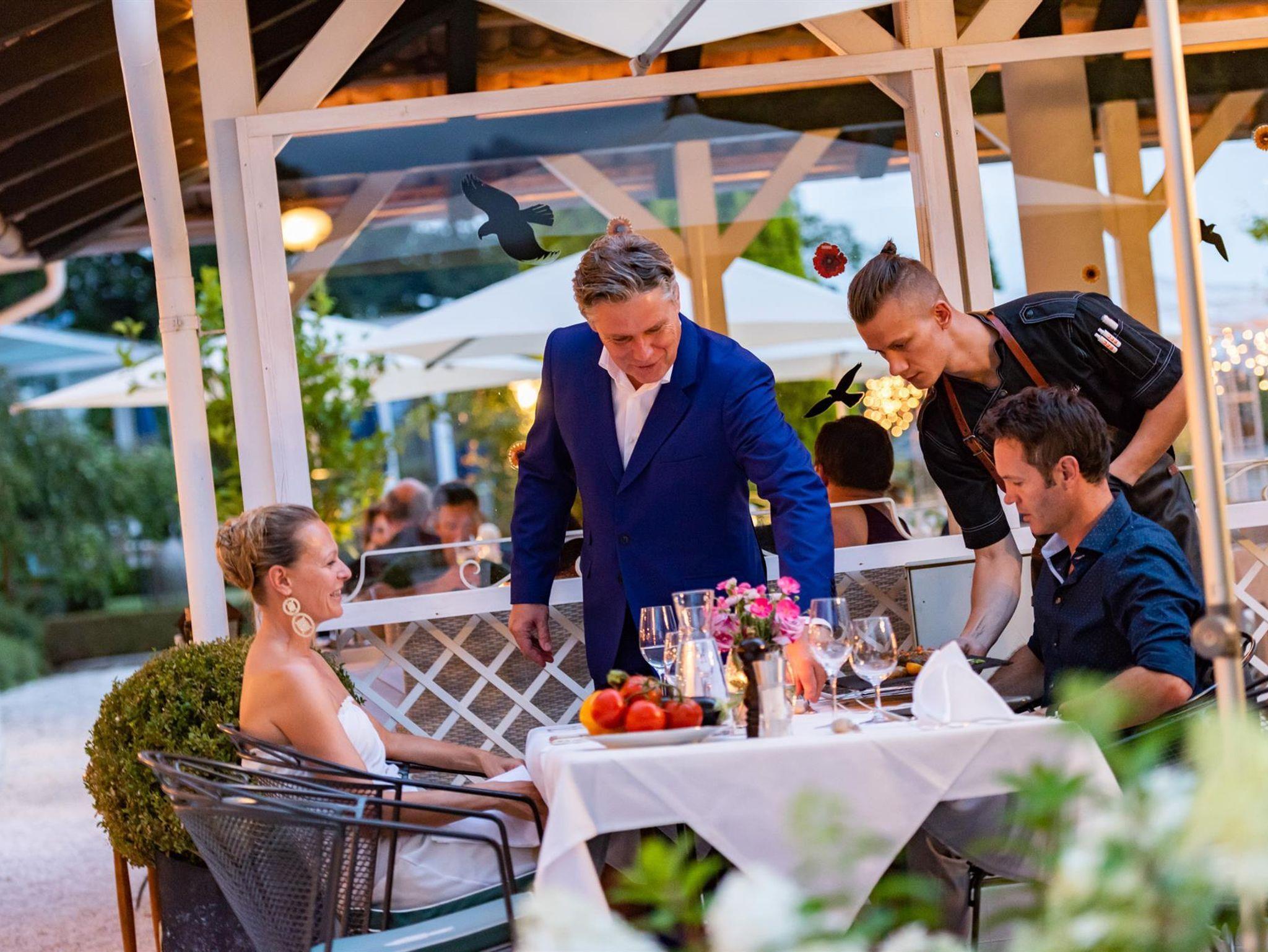 Der Tag beginnt mit einem herrlichen Frühstück - nachmittags verwöhnen wir Sie mit Köstlichkeiten vom Buffet Sweet & Sour - und am Abend endet Ihr Urlaubstag mit einem 6-gängigen Wahlmenü - serviert auf der romantischen Veranda, der Sonnenterrasse und im Teichpavillon.