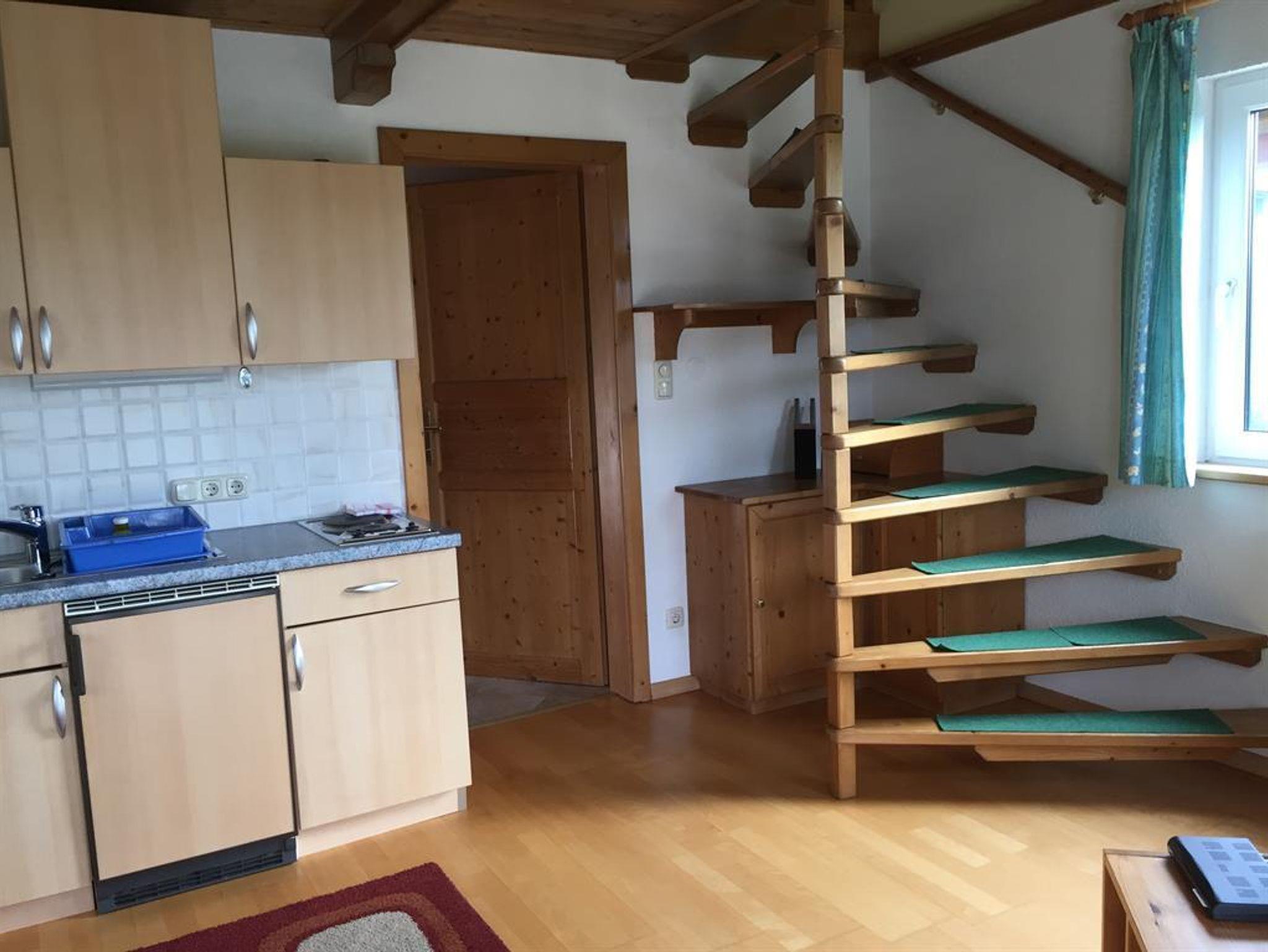 Eine Wendeltreppe führt Sie in die Mansarde mit 1 Doppelbett und 1 Einzelbett. Geeignet für 2-4 (evt.5 ) Personen.