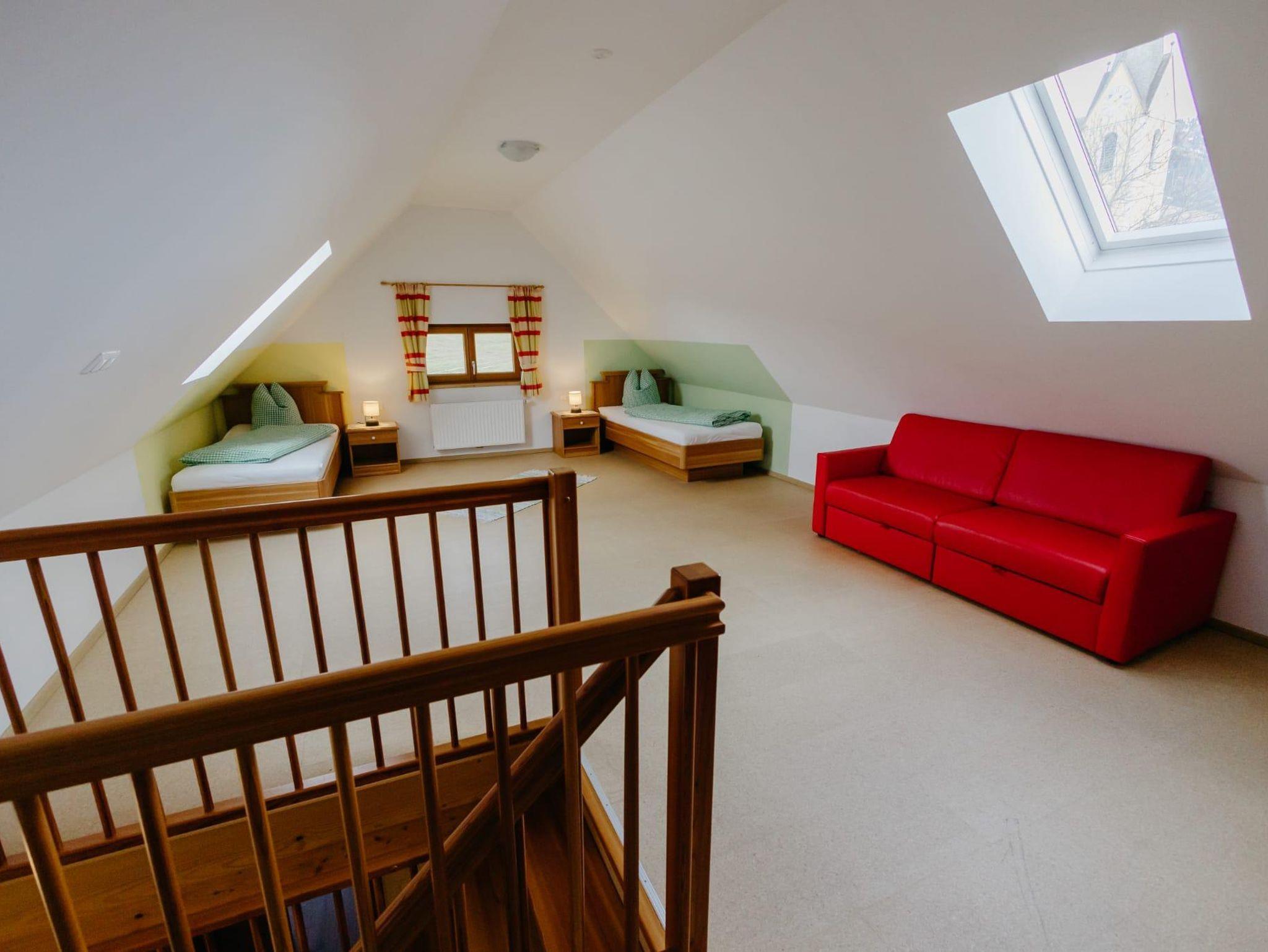 Im 40m² großen Kinderzimmer im Dachgeschoss haben die Kleinen genügend Platz zum toben.