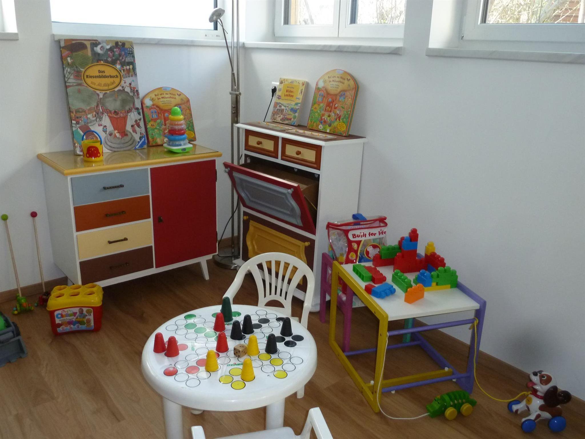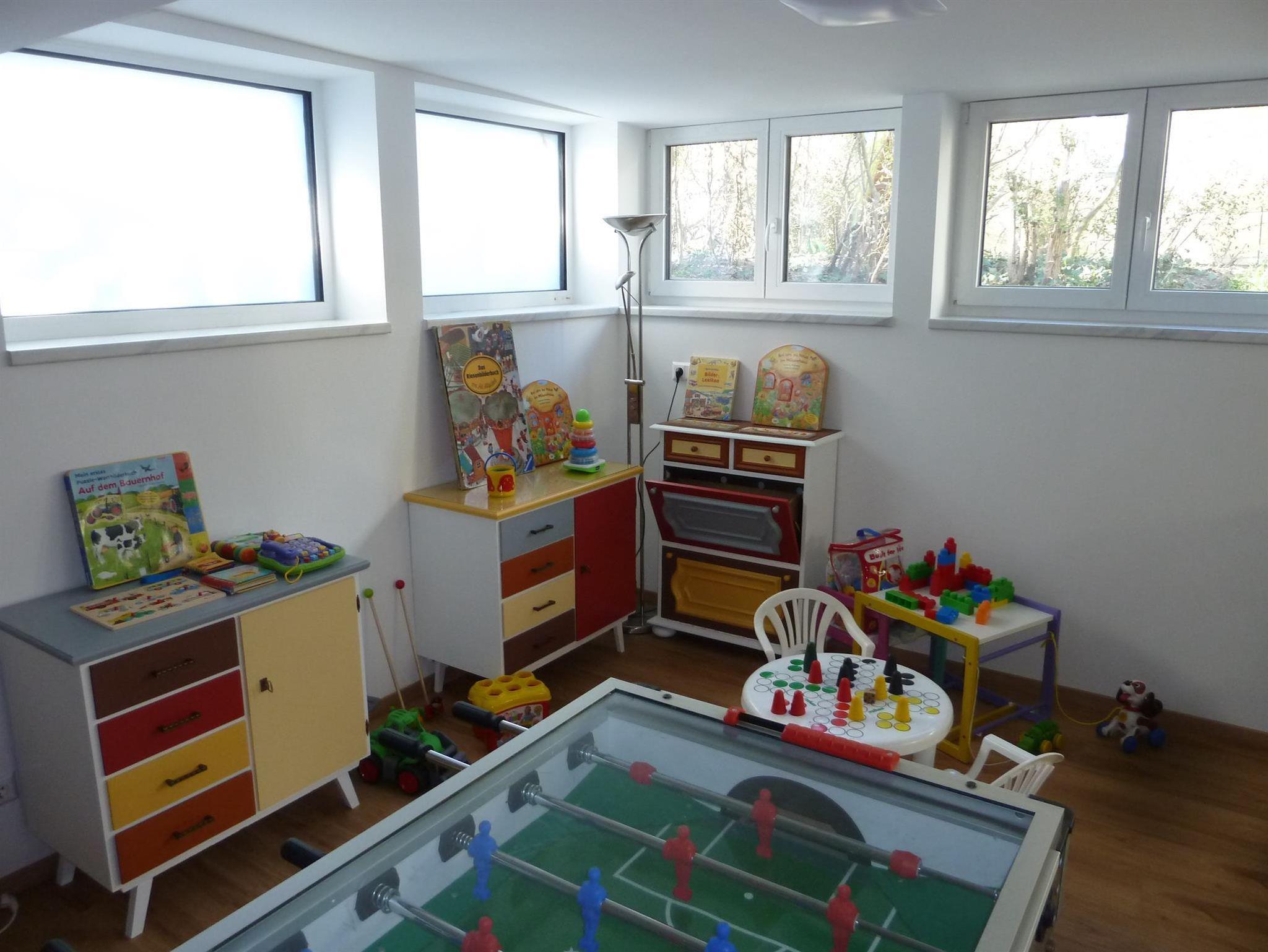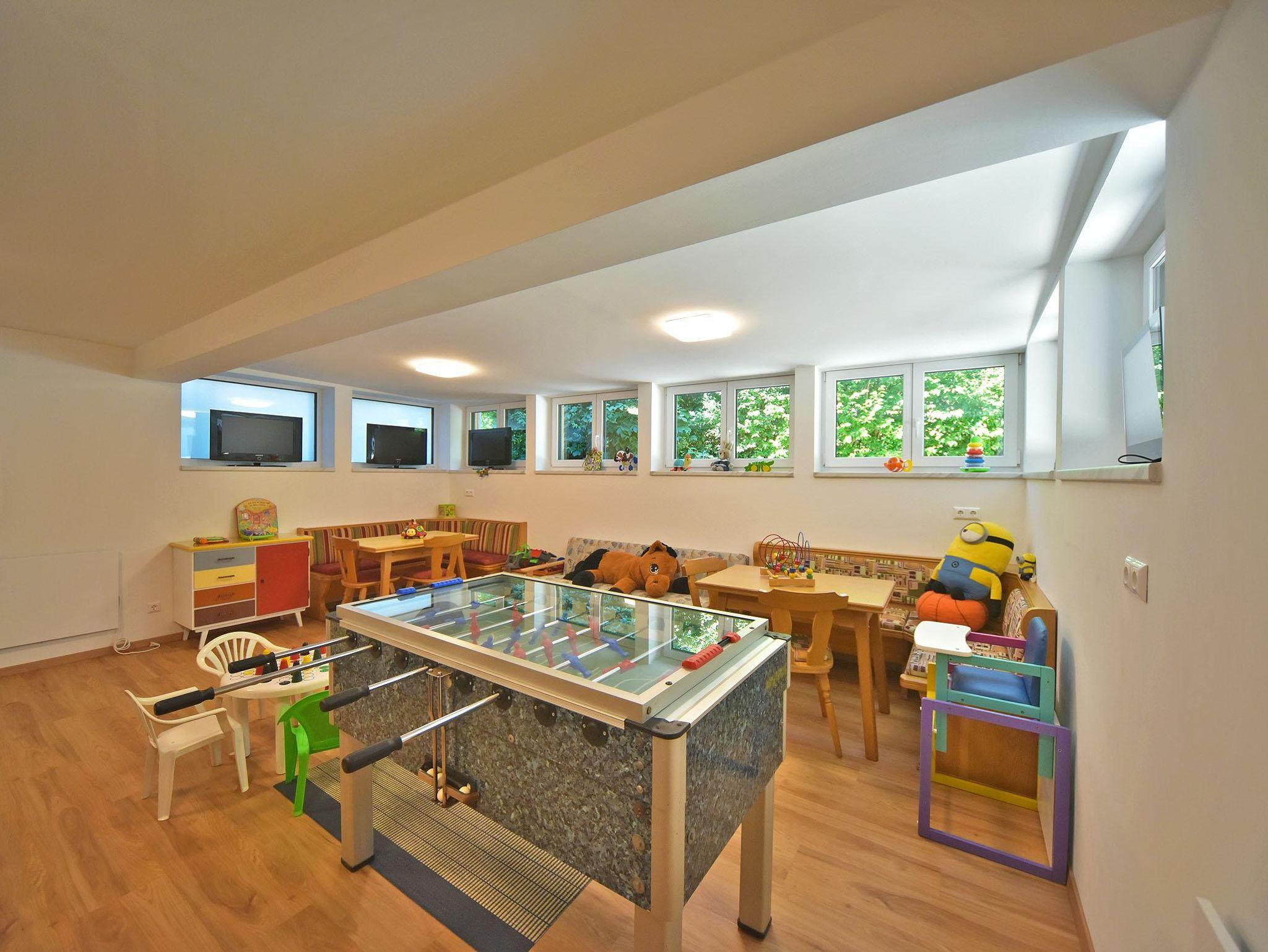 Großer Aufenthalts- und Fernsehraum mit SAT-TV und Kaminofen, Kinderspielraum