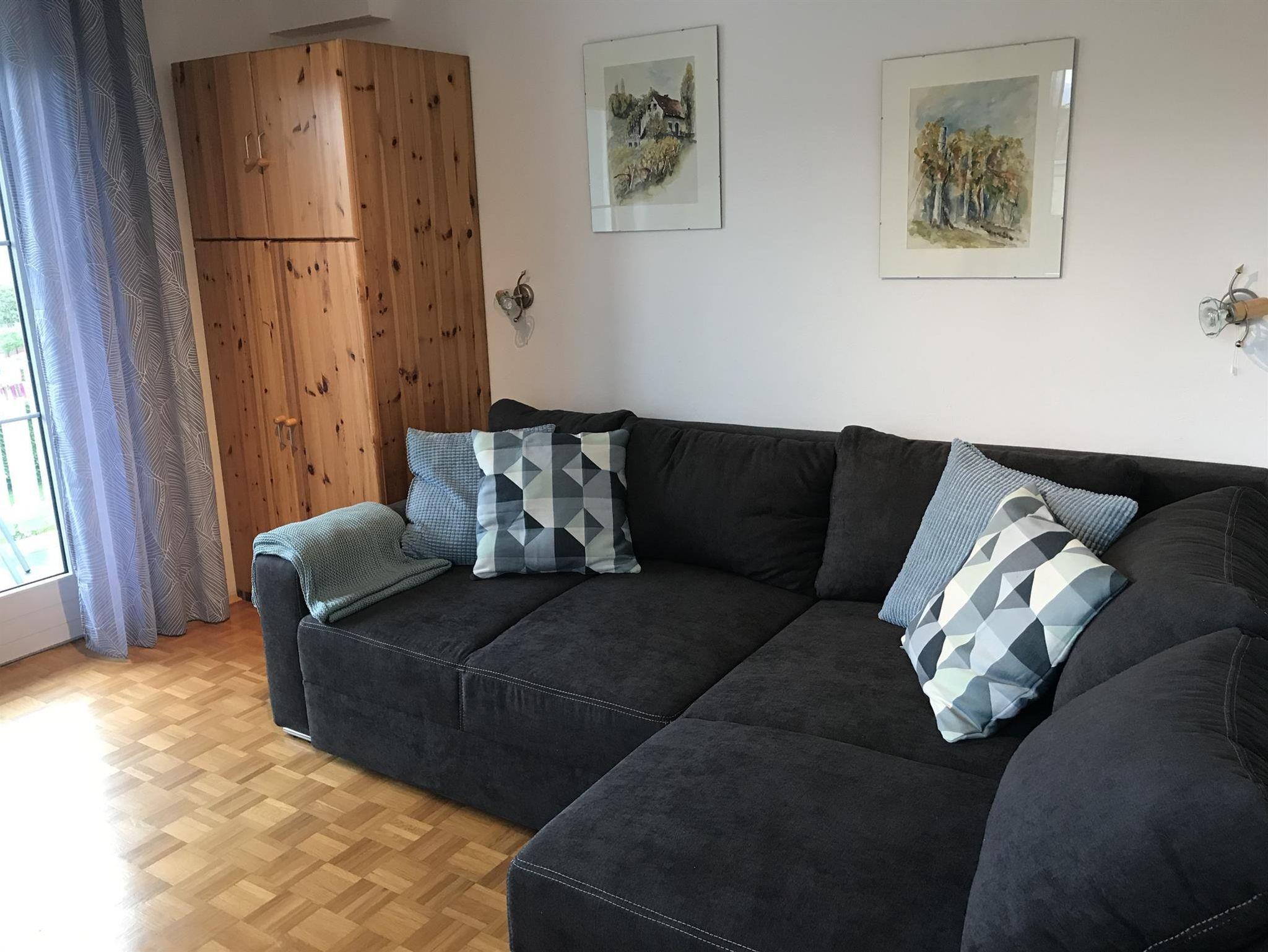 Unsere Appartements im ersten Stock verfügt über ein Schlafzimmer (Doppelbett), einen Wohn-/Schlafraum mit ausziehbarer Doppelcouch, DU/WC, Kochnische, Sat-TV, WLAN und 2 Balkone mit herrlichem Blick über den See.